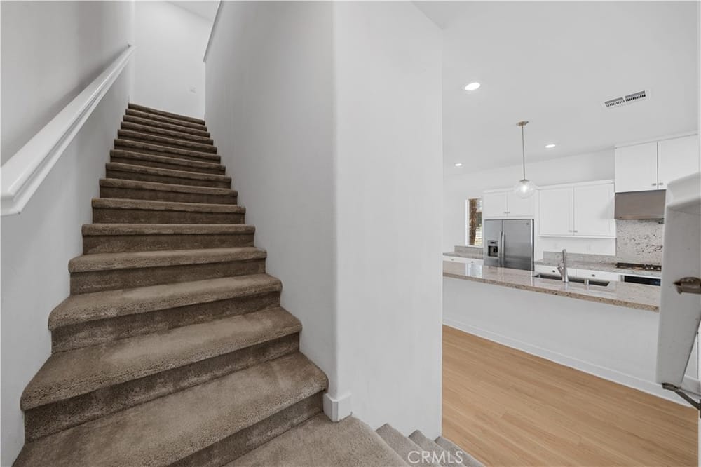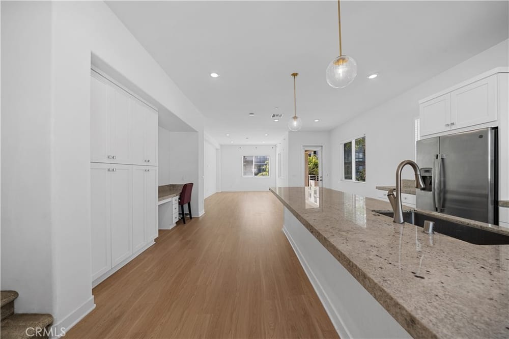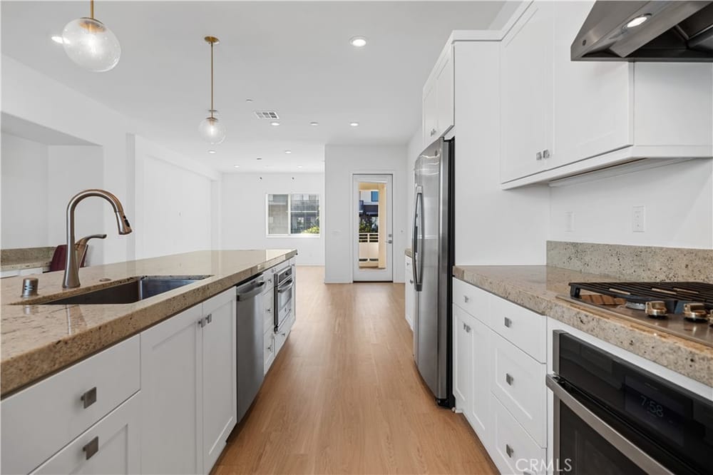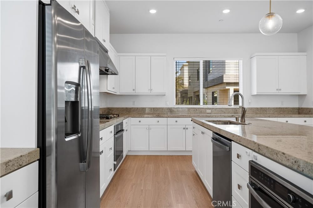 This Charming Contemporary End Unit Townhouse with the Pool View is located in the Prestigious Platinum Triangle Community in Anaheim! This house has the Most Popular Floor Plan and offers the Biggest Living Space in the whole community! It has unobstructed view in almost every side of the house! The house features 4 bedrooms, 3.5 bathrooms and 2-Car Garage directly accessing to the unit. There is... a Suite on the Main Floor! A Formal Living Room, Family Room and a Spacious Gourmet Kitchen with a Powder Room on the Second Floor. A Huge Balcony next to the Kitchen is a PLUS!!! The Third Floor features a Master Suite, 2 Spacious Bedrooms sharing a Full Bathroom and an Individual Laundry Room. Other features include Upgraded Garage Floor, Laminated Wood Floor, Brand New Carpet, and Granite Countertops from the Builder. The Community offers Swimming Pool, BBQ and Playground for family/friends gathering and entertainment. Great location!!! This Community close to Disneyland, Anaheim Convention Center, Angel Stadium, Kaiser Permanente, Honda Center, and other Professional Buildings. 10 minutes to Cal State Fullerton and walking distance to Chapman University Anaheim Campus. Minutes to Anaheim Packing District and Santa Ana Mall, making it a centrally situated, and luxurious living option! Easy access to Freeway 5, 57 and 91. Must see to appreciate it!!!