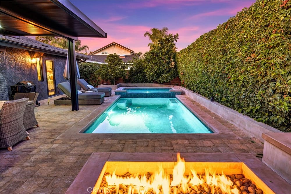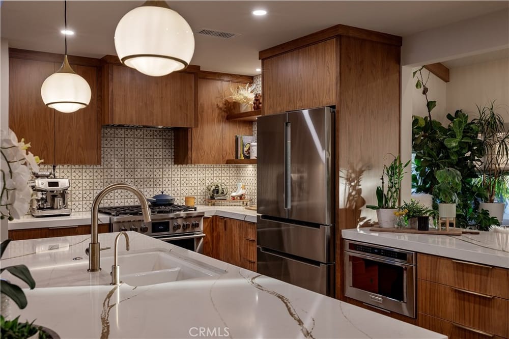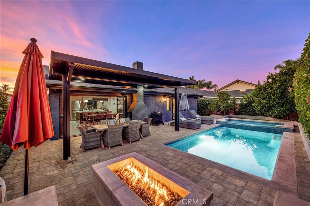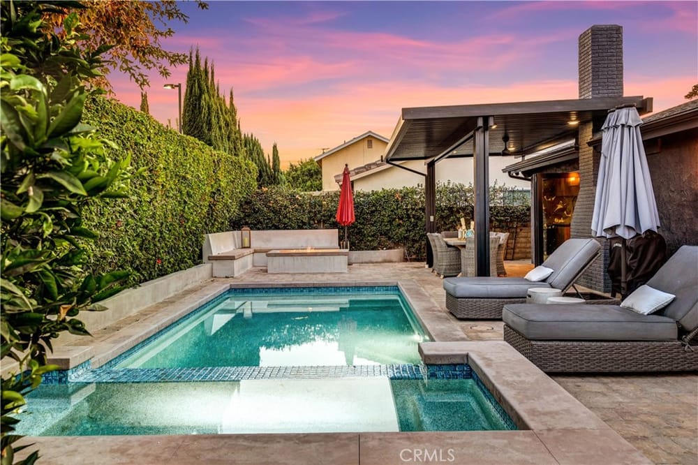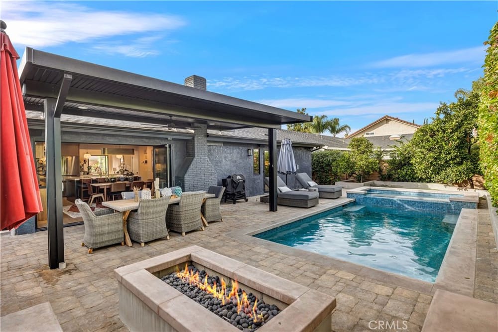 One of a Kind – Mid Century Modern GEM! Completely renovated with no detail spared. This stunning home has been meticulously upgraded in the last two years, featuring a fully remodeled kitchen with custom cabinets, premium Fisher & Paykel appliances, and a sleek Bosch refrigerator. Beautiful porcelain countertops extend throughout the kitchen and bathrooms, and the kitchen boasts a walk-in pantry ...for added convenience. Newly installed windows throughout, including stunning bifold doors, allow natural light to pour in and seamlessly blend the indoor and outdoor spaces. Porcelain plank-style flooring throughout gives you the beauty of wood with the durability of tile. You’ll find designer finishes at every glance - from the tile in the bathrooms, to the backsplash, the wallpaper, custom vanities, and more!Enjoy peace of mind with a new roof and PAID-OFF solar system, and take advantage of energy efficiency with updated electrical and plumbing throughout. The home is equipped with smart home technology, featuring an RTI sound system, automated lighting, and a Ring alarm system with 9 hardwired security cameras. The custom front yard lighting, cantilever front door, and pavers with drains give the exterior a sophisticated look, while the backyard is an entertainer's dream.Relax and unwind by the newly constructed modern pool and spa, featuring Pebble Tek and custom lighting. Built-in gas firepits make it ideal for outdoor gatherings. The garage is fully equipped with built-in cabinets and epoxy flooring, providing both functionality and style. Inside, you'll find a bonus room that can easily serve as an office, craft room, or home salon. The custom closet organizers in the bedrooms provide ample storage, while the home’s thoughtful design and recessed lighting enhance the overall ambiance. Additionally, the water softener system and water filtration system at the kitchen sink ensure pure, clean water throughout the home.Just a short walk to the iconic Orange Circle, where you'll find a vibrant mix of shopping, dining, and entertainment, and only minutes from Chapman University. With Disneyland and local beaches just 20 minutes away, plus easy access to all of Orange County, this location truly has it all.This home is a perfect blend of modern luxury, convenience, and cutting-edge technology. With high-end finishes, custom features, and a central location, it’s an ideal spot for anyone looking to enjoy the best of Orange County living.