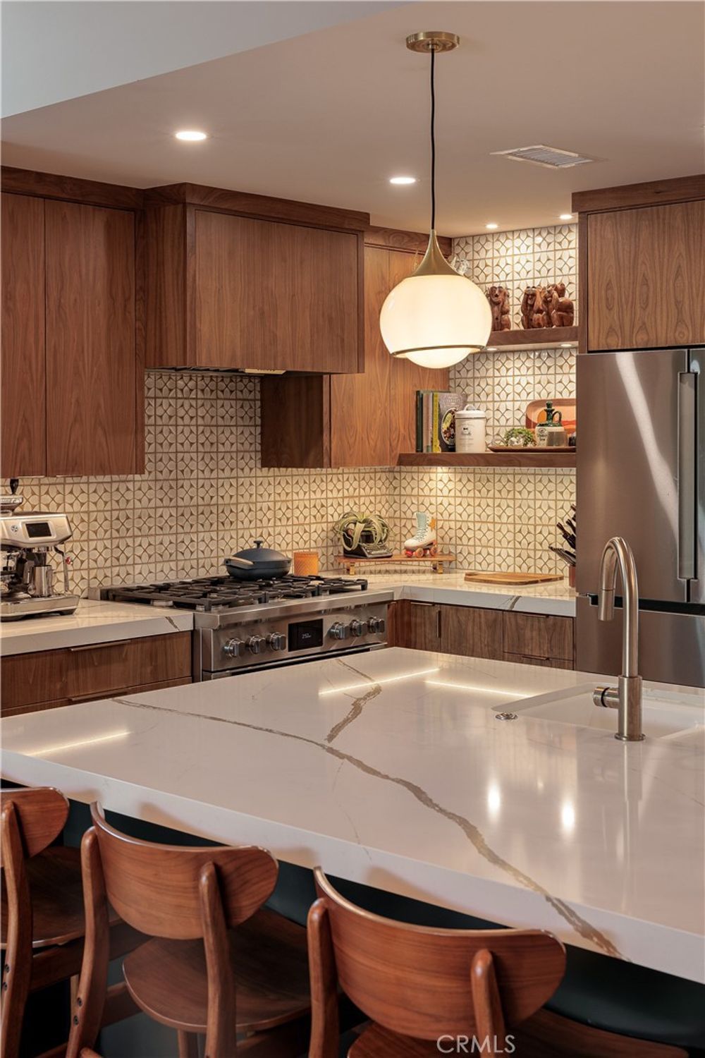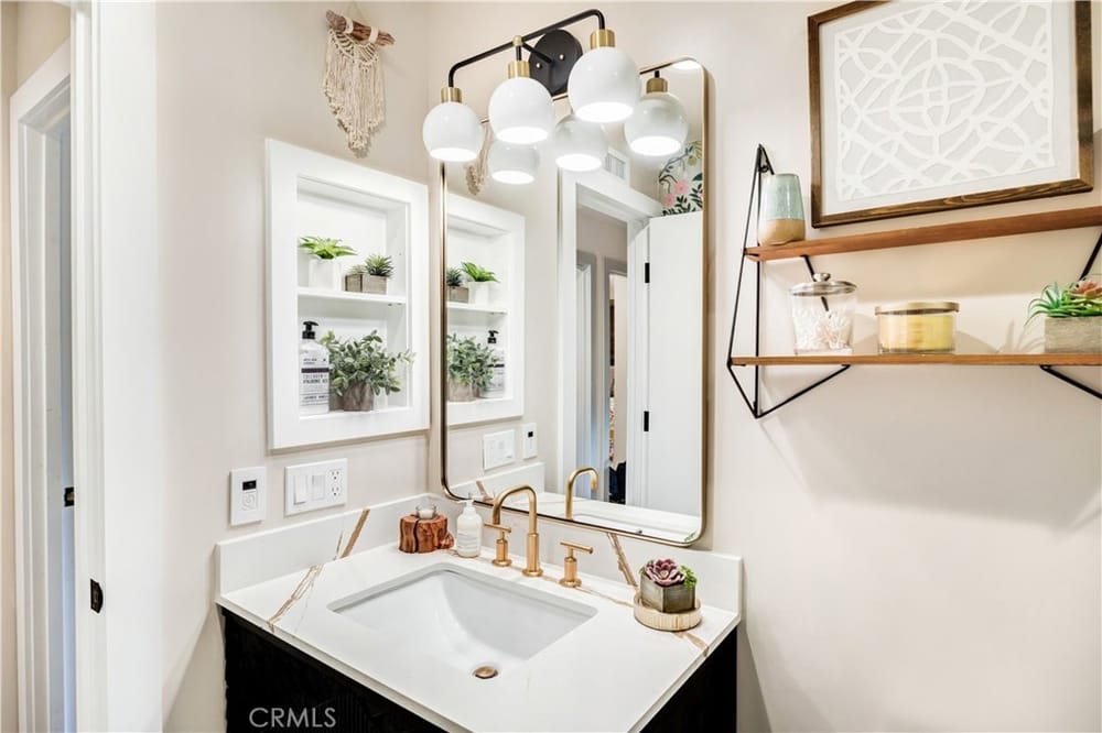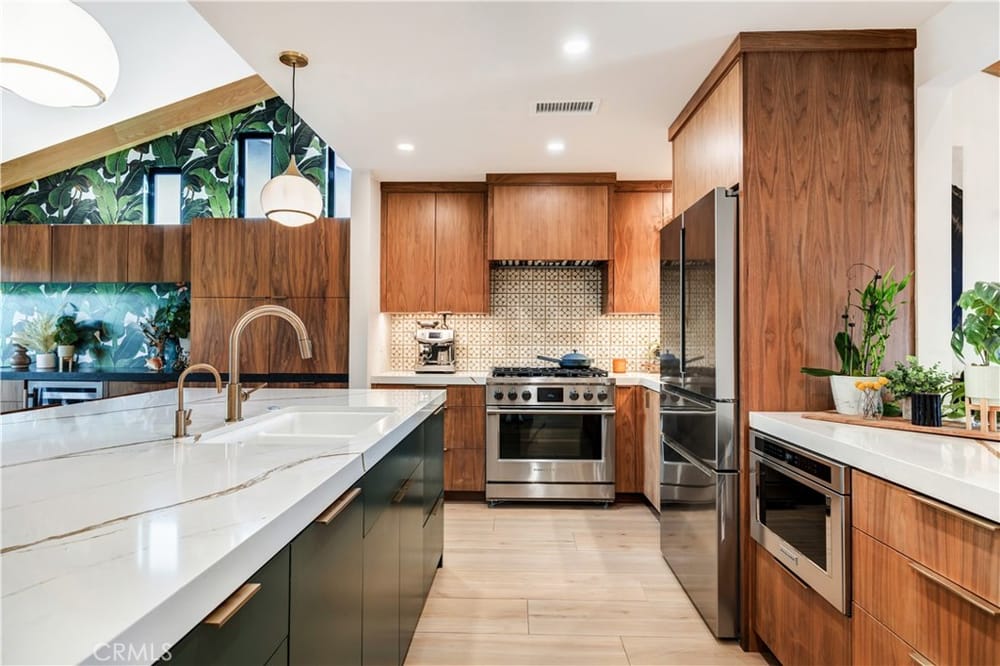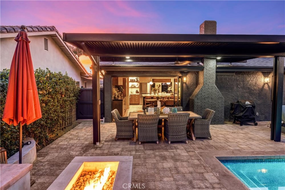 One of a Kind – Mid Century Modern GEM! Completely renovated with no detail spared. This stunning home has been meticulously upgraded in the last two years, featuring a fully remodeled kitchen with custom cabinets, premium Fisher & Paykel appliances, and a sleek Bosch refrigerator. Beautiful porcelain countertops extend throughout the kitchen and bathrooms, and the kitchen boasts a walk-in pantry ...for added convenience. Newly installed windows throughout, including stunning bifold doors, allow natural light to pour in and seamlessly blend the indoor and outdoor spaces. Porcelain plank-style flooring throughout gives you the beauty of wood with the durability of tile. You’ll find designer finishes at every glance - from the tile in the bathrooms, to the backsplash, the wallpaper, custom vanities, and more!Enjoy peace of mind with a new roof and PAID-OFF solar system, and take advantage of energy efficiency with updated electrical and plumbing throughout. The home is equipped with smart home technology, featuring an RTI sound system, automated lighting, and a Ring alarm system with 9 hardwired security cameras. The custom front yard lighting, cantilever front door, and pavers with drains give the exterior a sophisticated look, while the backyard is an entertainer's dream.Relax and unwind by the newly constructed modern pool and spa, featuring Pebble Tek and custom lighting. Built-in gas firepits make it ideal for outdoor gatherings. The garage is fully equipped with built-in cabinets and epoxy flooring, providing both functionality and style. Inside, you'll find a bonus room that can easily serve as an office, craft room, or home salon. The custom closet organizers in the bedrooms provide ample storage, while the home’s thoughtful design and recessed lighting enhance the overall ambiance. Additionally, the water softener system and water filtration system at the kitchen sink ensure pure, clean water throughout the home.Just a short walk to the iconic Orange Circle, where you'll find a vibrant mix of shopping, dining, and entertainment, and only minutes from Chapman University. With Disneyland and local beaches just 20 minutes away, plus easy access to all of Orange County, this location truly has it all.This home is a perfect blend of modern luxury, convenience, and cutting-edge technology. With high-end finishes, custom features, and a central location, it’s an ideal spot for anyone looking to enjoy the best of Orange County living.