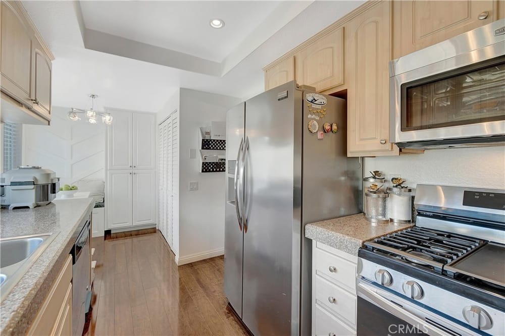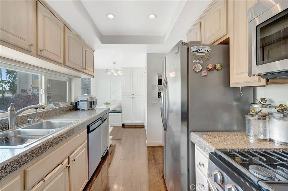 Fabulous townhome in the centrally located community of Village Court - walking distance to shopping, dining & entertainment, biking distance to Downtown HB, the pier and the beach and a short drive to the freeways! Over 1,600 square feet with beautiful upgrades throughout with 3 large bedrooms and 2.5 baths. Upgraded hard surface flooring, newer custom paint, two story ceilings, central AC, cust...om light fixtures and so much more! Gorgeous gourmet granite kitchen with sunny breakfast nook and all newer stainless steel appliances including gas range, microwave, and dishwasher. Large light and bright living room with cozy fireplace, vaulted ceilings and dual sliders leading out to private patio. Grand master suite with vaulted ceilings, walk-in closet and upgraded master bath with dual sinks and large walk-in shower. with beautiful new shower tile. Large secondary bedrooms that share an updated bath with large soaking tub/shower combo. Direct access to a two car garage with storage, finished flooring and Tesla charger. Great, quiet location backing to a small cul-de-sac to allow for even more guest parking. Wonderful community with tennis courts, racquet ball court, pool & spa and great location! This community is now located in the highly sought after SeaCliff Elementary School district!