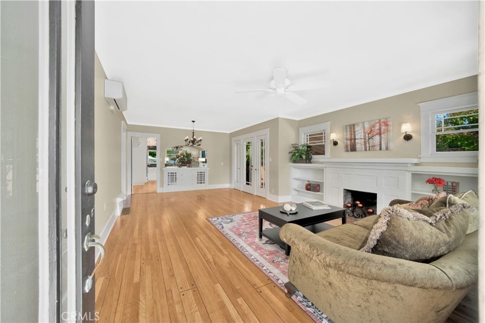 Welcome to the historic old town of Tustin! Charming 1940 craftsman bungalow with all the charm of yesteryear located on a 12,000+ sq.ft lot! Build your adu or units as the city permits. The wood split rail fence encloses a front-yard full of color that accentuates the full-width front porch. A sitting area to enjoy the sights and sounds of the old town. The large living room features wood floors,... plaster walls, and a fireplace flanked with custom bookcases. The dining area has the original carriage porch doors with sidelights that served as the main entrance to drop off the homeowner before the horse and carriage entered the barn. Classic built-in china hutch with display cabinet and silverware drawers. 2 bedrooms with walk-in closets with built-in dressers/drawers. A tile-accented tub/shower bath with vintage medicine cabinet. Newer mini split heater/air conditioners to relax in comfort while saving money. A family room and 3rd bedroom have been added over the years to provide for more living area. The bedroom has a triple-wide mirrored closet and can easily accommodate a king-sized bedroom set. The kitchen has stainless appliances, including a convection double oven, a built-in 5-burner gas range, a dishwasher, custom tile counters, and a backsplash. A convenient laundry room and storage sheds, even a chicken coop. Grow your own limes, lemons, apricots, and peaches. This lot is 50 ft wide by 242 ft deep, a rare find with future development possibilities, or just your own farm! Two structures at the back of the lot, one used as an office and one for additional storage.