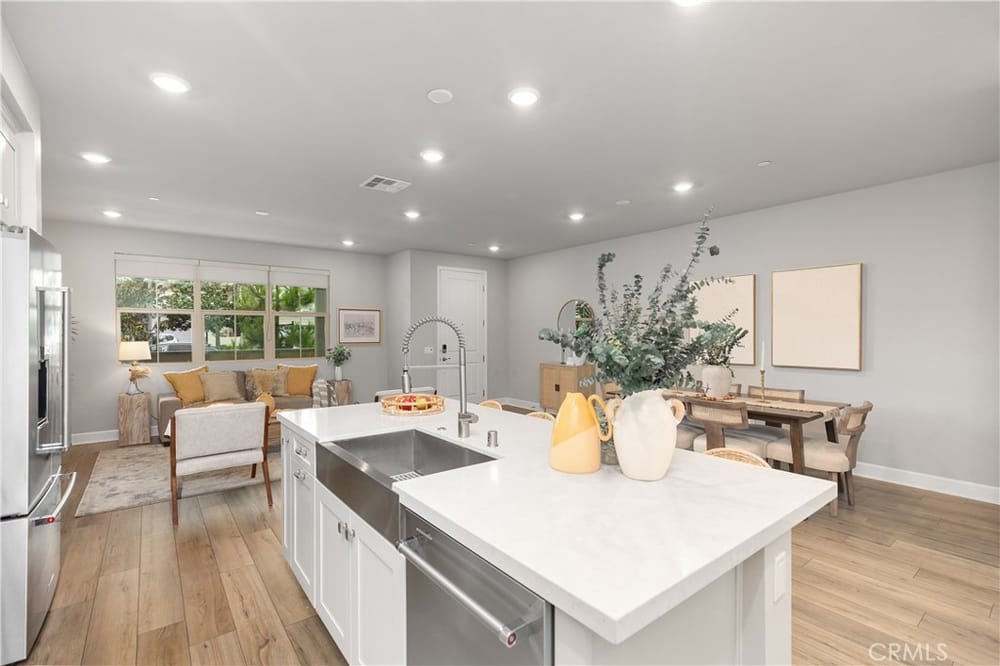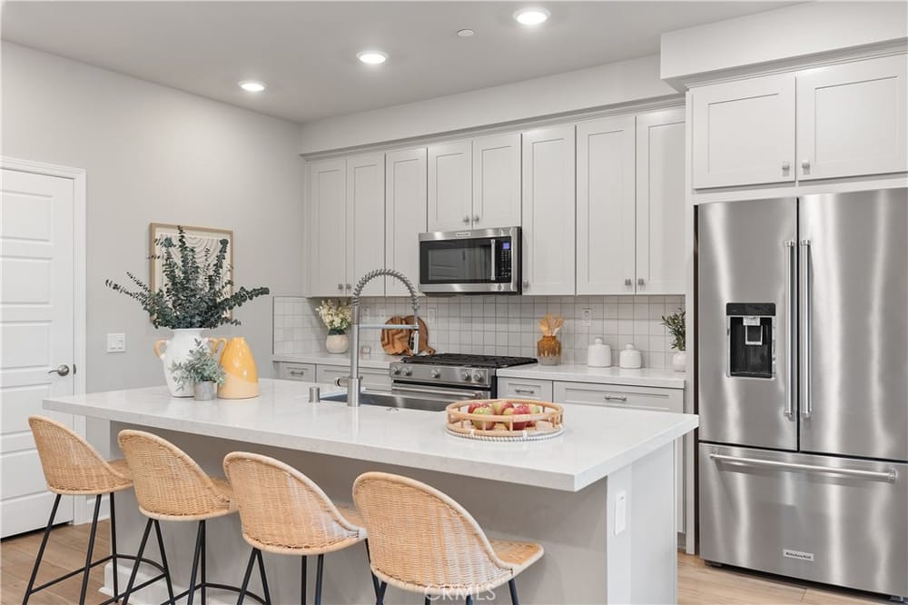 Welcome to your dream home! This beautiful home which was newly completed in 2022, is nestled in the quaint community of “Regatta” in Huntington Beach. This exquisite 4 bedroom, 2.5 bath with a large loft home is the epitome in coastal living. As you enter, you are greeted with a seamless flow and open concept floor plan. A large living area and dining room opens to the gourmet kitchen featuring ...a large center island and breakfast bar. Gorgeous white quartz counter tops with a custom back splash, numerous shaker-style white cabinets that are self-closing. There is a Large walk-in pantry which provides ample storage. Additionally, there are Energy Efficient stainless-steel appliances. The flooring is a designer wide vinyl wood plank flooring with 4 inch baseboards. Upstairs, the primary suite with en-suite bathroom is your own sanctuary; spacious, light & bright with dual vanities and quartz counters, a walk in shower & tub and a spacious walk-in closet. Along the hallway you have a large loft which can be an upstairs entertainment or media area, office, or children's play area, the options are endless! The additional three bedrooms are generous in size and an additional full bathroom with dual vanities, and quartz counter tops. The laundry room is conveniently located upstairs with a whirlpool washer and dryer included. There is a 2 car garage with new epoxy flooring with direct access into the home. A tankless water heater. This is more than a home, it’s a coastal paradise with an engaging lifestyle through its local community features; such as quality schools, trendy restaurants, shopping, and minutes to the beach, pier, and Main St. activities.