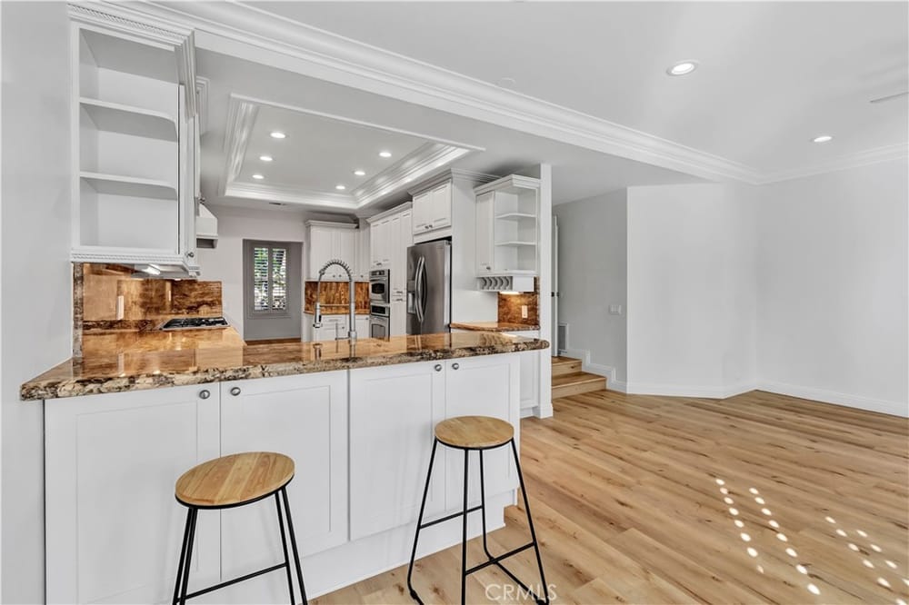 Ngôi nhà sân hiên tuyệt đẹp nằm ở vị trí nội thất yên tĩnh, nằm phía sau vành đai xanh đẹp như tranh vẽ trong cộng đồng SeaCliff on the Greens gần biển, có cổng bảo vệ. Ngôi nhà này rộng hơn 2.700 feet vuông và có ba phòng ngủ và hai phòng tắm rưỡi, thể hiện sự nâng cấp tinh tế khắp nơi. Những điểm nổi bật bao gồm sơn tùy chỉnh mới, phào chỉ, sàn cứng được nâng cấp, trần nhà hình vòm, quạt trần, cửa chớp kiểu đồn điền, đèn âm tường, cửa sổ mới, máy lạnh và nhiều thứ khác. Phòng khách rộng rãi tự hào có trần nhà hình vòm, lò sưởi ấm cúng và cửa ra vào hiên sau, khiến nơi này trở nên lý tưởng để giải trí. Liền kề với phòng ăn trang trọng là một nhà bếp sang trọng, được trang bị mặt bàn bằng đá granit, tủ được nâng cấp và các thiết bị bằng thép không gỉ, bao gồm lò nướng, bếp gas, máy rửa chén, lò vi sóng, tủ lạnh và tủ lạnh đựng rượu. Nhà bếp cũng có quầy bar ăn sáng và góc ăn sáng đầy nắng. Dãy phòng chính lớn có trần nhà hình vòm, lò sưởi, tủ quần áo đi bộ và tủ quần áo có gương tích hợp. Phòng tắm riêng được trang trí bằng sàn đá, mặt bàn bằng đá granit, bồn rửa đôi, bồn tắm ngâm chân sư tử lớn và vòi sen riêng. Các phòng ngủ phụ rộng rãi bao gồm tủ quần áo lớn có tủ âm tường. Ga ra để hai ô tô có lối vào nhà trực tiếp và sàn epoxy mới, cũng như bãi đậu xe rộng rãi cho khách gần đó. Lối đi phía trước tuyệt đẹp trưng bày cảnh quan đẹp và sân hiên lát đá hẻm núi, trong khi sân sau dễ bảo trì có sân hiên lát gạch và chậu trồng cây ăn quả. Tất cả những thứ này đều nằm ở vị trí bên trong SeaCliff on the Greens, chỉ cách bãi biển một đoạn đi bộ ngắn và cách trung tâm thành phố Huntington Beach vài phút, khu mua sắm, nhà hàng, trường học đạt giải thưởng và nhiều hơn thế nữa!