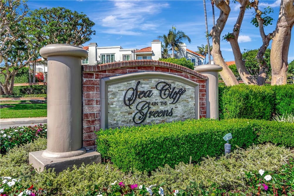 Stunning patio home situated in a tranquil interior location, backing onto a picturesque greenbelt within the ocean-close, guard-gated community of SeaCliff on the Greens. This residence spans over 2,700 square feet and features three bedrooms and two and a half bathrooms, showcasing exquisite upgrades throughout. Highlights include new custom paint, crown molding, upgraded hard surface flooring, ...vaulted ceilings, ceiling fans, plantation shutters, recessed lighting, new windows, AC and more. The expansive living room boasts vaulted ceilings, a cozy fireplace, and doors that lead to the rear patio, making it ideal for entertaining. Adjacent to the formal dining room is a gourmet kitchen, equipped with granite countertops, upgraded cabinets, and stainless steel appliances, including an oven, gas cooktop, dishwasher, microwave, refrigerator, and wine fridge. The kitchen also features a breakfast bar and a sunny breakfast nook. The grand primary suite offers vaulted ceilings, a fireplace, a walk-in closet, and a mirrored closet with built-ins. The en-suite bathroom is adorned with stone flooring, granite counters, dual sinks, a large clawfoot soaking tub, and a separate shower. The spacious secondary bedrooms include large closets with built-ins. Two-car garage with direct access to the home and new epoxy flooring, as well as ample guest parking nearby. The stunning front walkway showcases beautiful landscaping and a bouquet canyon stone patio, while the easy-maintenance rear yard features a brick patio and planters with fruit trees. All of this is situated in an interior location within SeaCliff on the Greens, just a short walk from the beach and minutes away from Downtown Huntington Beach, shopping, dining, award-winning schools, and much more!