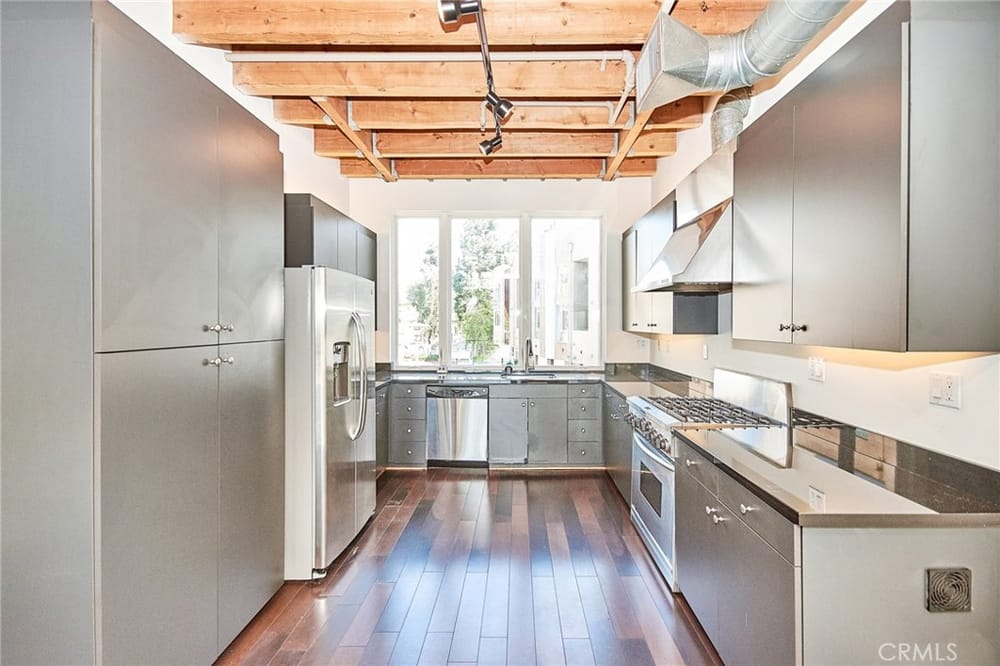 Fantastic investment opportunity to in Santa Ana City Place. In this urban-design you could Live-Work & Play. This trendy end unit 3 story residence with open floor plan has the combination of commercial space downstairs and living space upstairs offers great flexibility. This model home is the only larger floor plan in this community. The contemporary residence offers an open floor concept with e...legant 24ft wood beam ceilings, and a modern glass window roll up door which lets in a great breeze. The entire wood flooring on the second and third floor. The first floor and bathrooms flooring design is concrete linoleum for easy maintenance, designed for retail or office and has a full bath and a tandem 2-car garage that could be used for additional office space or storage for your business plus parking for a car. Living area boasts an open floor plan with a modern industrial-chic look which is an entertainer's dream. The third floor has original design 2 bedrooms, with a double sinks full bathroom, and closets, commercial floor has some additional built-in storage. This home is within walking distance to restaurants, grocery store, gym, miscellaneous business, close proximity to freeways and many more. This is a great opportunity for someone looking to combine their business and living spaces in a charming community.