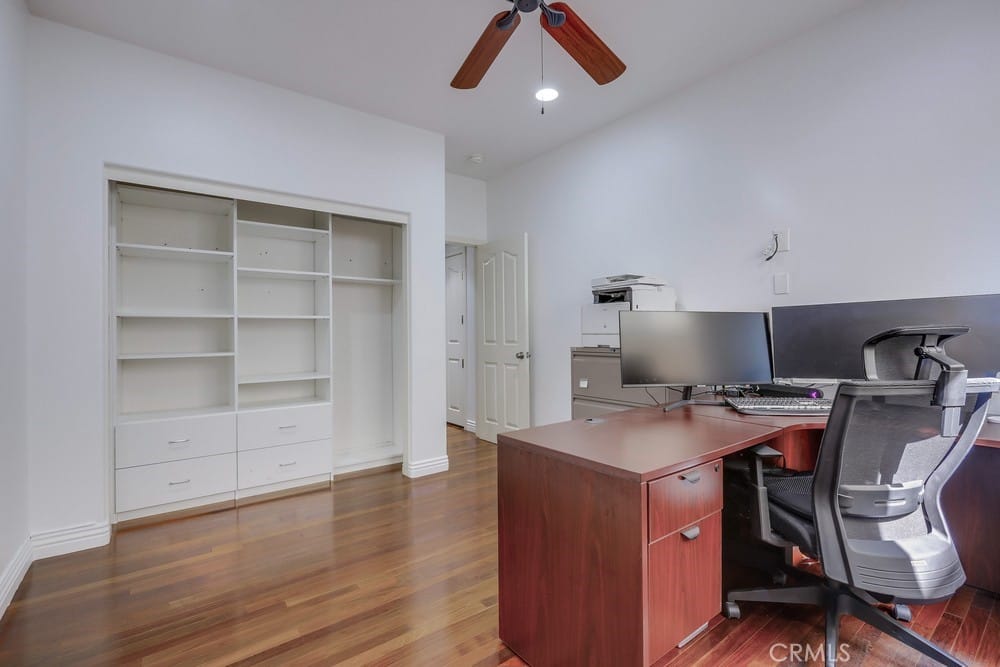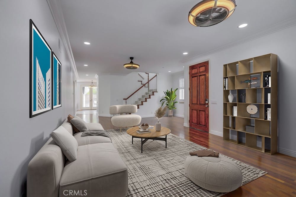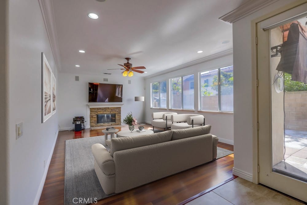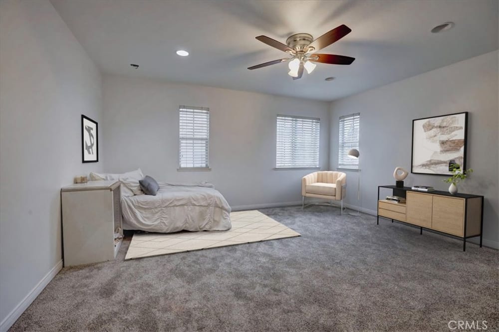 Welcome to 20 Villager, a spacious 5-bedroom, 4-bathroom home in Irvine, offering 3,614 sq ft of living space. Upon entering, you’ll find a large living room that flows into a cozy family room featuring a fireplace, ceiling fan, and crown molding. The family room connects to a well-appointed kitchen, which includes white shaker-style cabinets, a large island, double-stacked ovens, and a gas stovet...op. The kitchen is finished with tile flooring, granite countertops, and a backsplash, with double doors leading to a covered patio in the backyard—perfect for outdoor dining. The carpeted stairs lead to the second and third floors. On the third level, a spacious loft with hardwood floors, recessed lighting, and ceiling fans can serve as a bonus room or an additional bedroom, complete with an attached full bathroom. The second floor features a large carpeted master suite, with an attached full bathroom that includes a dual sink vanity, a soaker tub, and a generous closet. The second and third bedrooms have wide plank hardwood flooring and ceiling fans, while the fourth bedroom is carpeted. A large bathroom down the hall has a dual sink vanity and a tub/shower combo with a separate W/C for privacy. Convenience is enhanced by an upstairs laundry room with plenty of storage and a sink. The fifth bedroom on the main level, currently used as an office, has hardwood floors and built-in storage. An additional full bathroom on this level features a tub/shower combo and a single sink vanity. You will also find access to the attached two-car garage on the main level. The private backyard offers a covered patio and ample space for entertaining or personal touches. Surrounded by brick walls and equipped with drainage around the perimeter, this outdoor area ensures privacy and functionality. There are many amenities that you will have access to in Northpark including pools, spas, sports courts, playgrounds, and much more! Don’t miss your chance to see this wonderful home—schedule a viewing today!