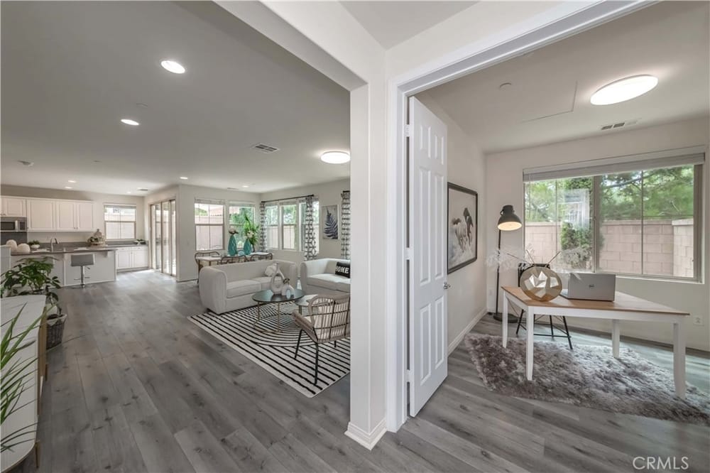 Experience Modern Luxury in Portola Springs, Irvine! This completely detached home features three spacious bedrooms and a versatile downstairs office, perfect for work or guests. The open-concept floor plan is designed to allow natural light to flow freely through expansive windows, highlighting contemporary finishes throughout the interior. The backyard is a private retreat with no direct neighbo...rs behind, offering an ideal space for outdoor enjoyment. Additional features include laminate flooring and solar panels. Located in the master-planned Village of Portola Springs, residents enjoy access to resort-style amenities including over 15 parks, 11 pools, BBQ areas, and sports courts for basketball, tennis, and beach volleyball. Conveniently close to popular shopping, dining, and entertainment options, this home offers both luxury and convenience in a desirable Irvine community.
