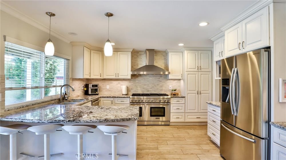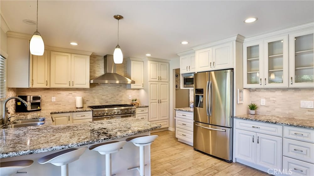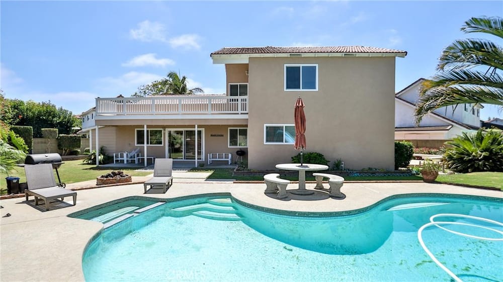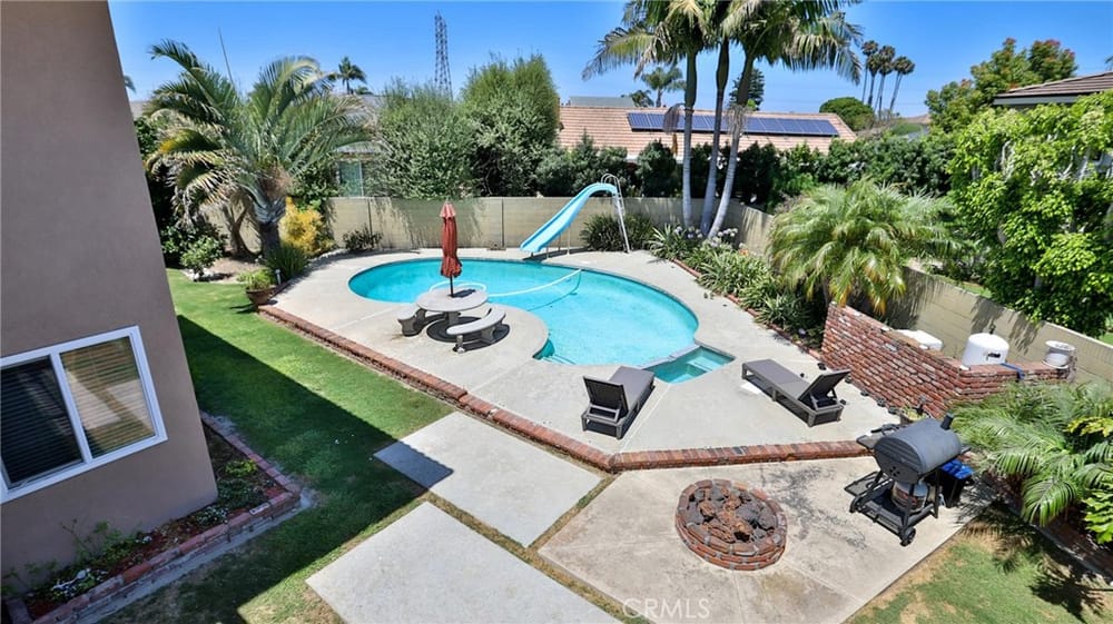 Discover this expansive 3,300 sq. ft. pool home situated on a generous lot at the end of a tranquil cul-de-sac in one of Huntington Beach's most desirable beach communities. This residence offers the convenience of award-winning schools and is just a short bike ride to the sandy shores. As you enter, you are greeted by a spacious living room featuring a cozy gas fireplace, perfect for relaxation. ...The downstairs master suite includes a beautifully remodeled en-suite bathroom with an oversized shower. The downstairs office is currently utilized as a 6th bedroom, providing flexibility to suit your needs. The heart of the home is a stunning, remodeled kitchen flooded with natural light. Highlights include a large peninsula with a breakfast bar, granite countertops, stainless steel appliances—including a Thermador oven with a 6-burner gas stove and grill—mosaic tile backsplash, and recessed lighting. The adjacent dining room features a dual-pane slider that opens to an expansive backyard, showcasing a sparkling swimming pool, a gas firepit, a spacious grass area, a side yard with a large wood deck, and a storage shed. Ample storage is available with several walk-in closets. In addition to the en-suite master bathroom, there are 2 additional remodeled bathrooms—one upstairs and one downstairs. Four bedrooms are located upstairs, including one with sliding doors that lead to a large balcony overlooking the backyard. At the other end of the hallway, a huge bonus room being used as a bedroom features vaulted ceilings, a new chandelier and access to 2 attic storage areas. Recent updates enhance this home’s appeal, including dual-pane windows installed five years ago, ceiling fans and new lighting fixtures added in September 2024, new carpet flooring, a rebuilt balcony deck, and fresh interior and exterior paint. Central heating (10-12 years old), 220V electrical service available in the garage, re-piped copper plumbing (2022), and water heater (2013). Located just steps away from Gisler Park, this home is close to award-winning schools, including Eader Elementary and Edison High School, and offers easy access to Huntington Beach's vibrant dining, entertainment, and shopping options at Main St and Pacific City. Nearby attractions include the OC Fair Grounds, South Coast Plaza, Little Saigon, Equestrian Center, Mile Square Park, and much more. With convenient access to freeways and PCH, this exceptional home perfectly blends luxury, comfort, and location.