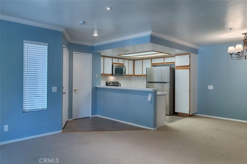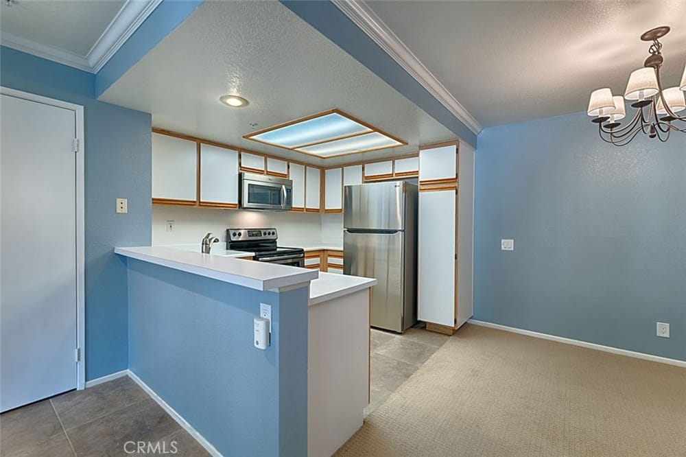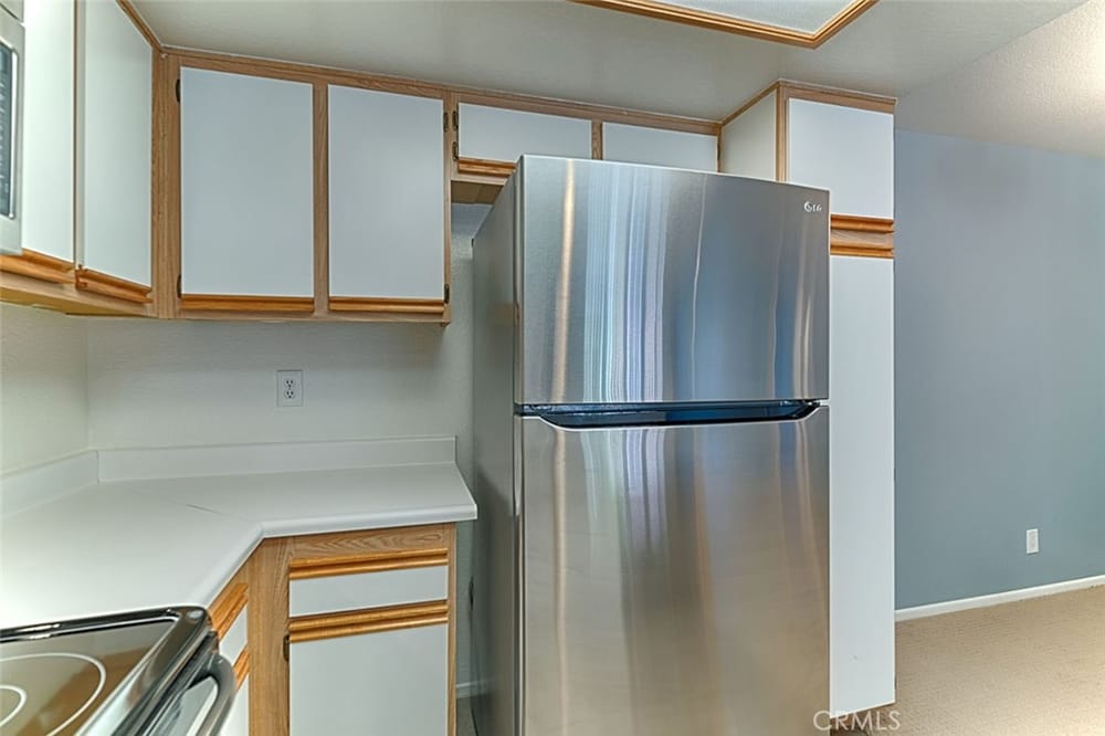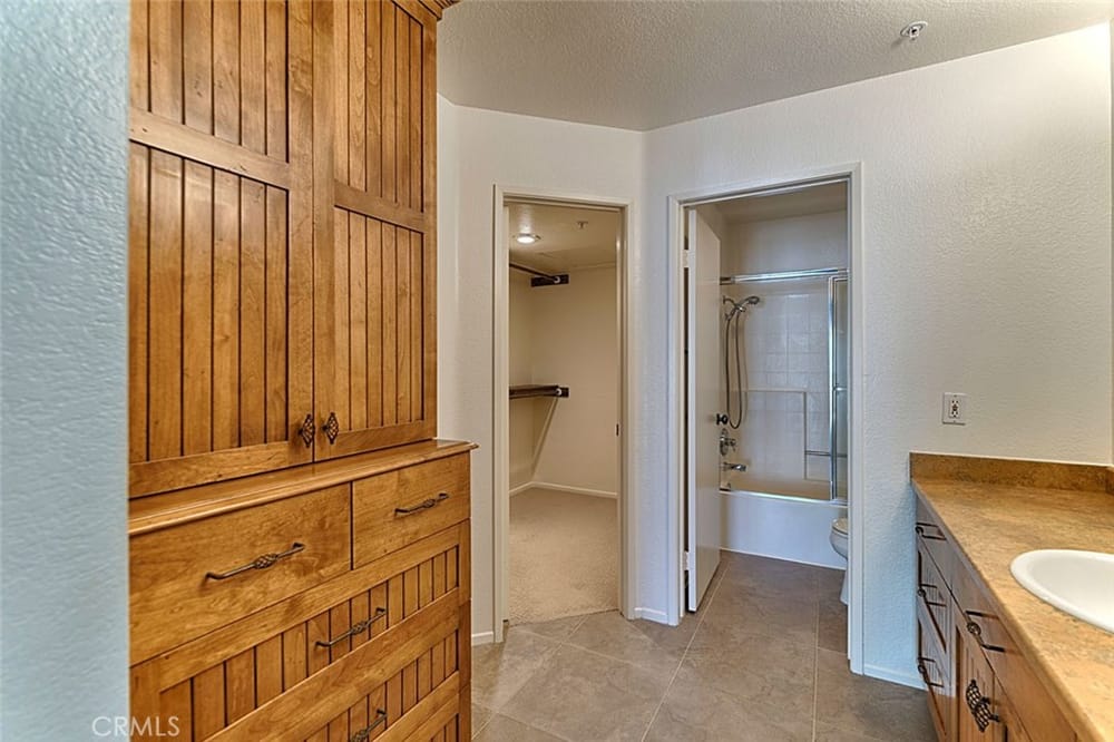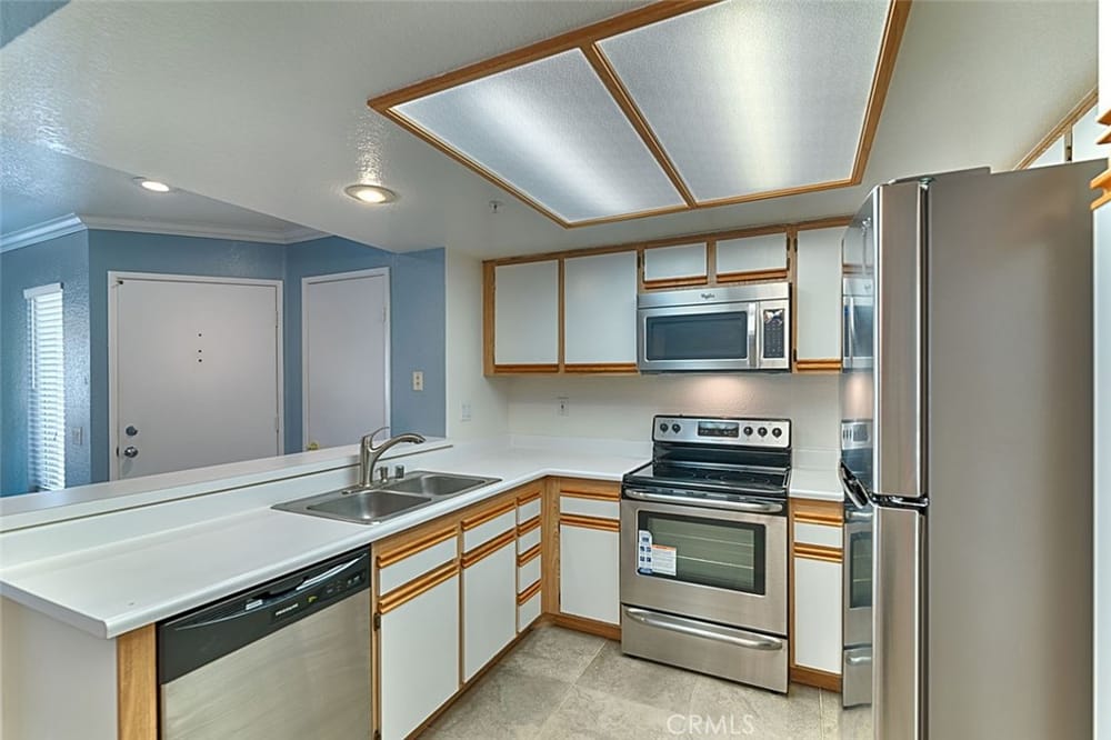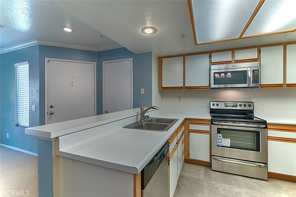PRICED TO SELL!!! COME SEE IT IN PERSON! Welcome to Canyon Hills Condos, a beautiful community on the east end of Orange, across from Peters Canyon Regional Park, just south of Irvine Regional Park & Santiago Canyon College & minutes from local & regional shopping. This upstairs, 1 Bedroom unit opens to the kitchen, dining & living areas. Crown moulding compliments the living areas of this home.... The freshly painted kitchen features stainless steel appliances with a new range/oven and newer microwave, dishwasher & refrigerator, abundant cabinets & a breakfast bar. The adjacent dining area offers space for guests or use as a home office. Recessed lighting enhances the large living area which opens to the covered balcony. Spanning the length of the condo, the balcony has 2 storage closets & a water heater closest. There's plenty of room for entertaining outside, too. A second sliding door gives access to the bedroom from the balcony. The private bathroom was updated by the previous owner & features a built-in linen cabinet with drawers, a vanity with more drawers & lots of counter space. A full bathroom & walk-in closet complete the bedroom suite. The stackable washer & dryer unit is conveniently located in its own interior closet near the bedroom door. This community offers 2 pools, spa, clubhouse, fitness center, 2 laundry rooms & a car wash area. All numbered parking spaces are unassigned and are available for everyone's use. This home also comes with a one-car garage that is located directly across from the unit. There is plenty of additional storage space in the garage. You are only steps away from the beautiful clubhouse, pool & fitness center, too. Conveniently located near the 241 & 261 for a scenic commute, you'll love it here!