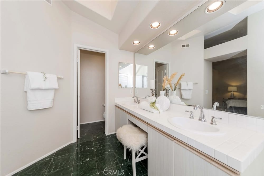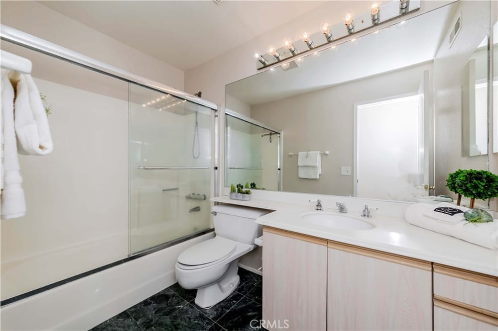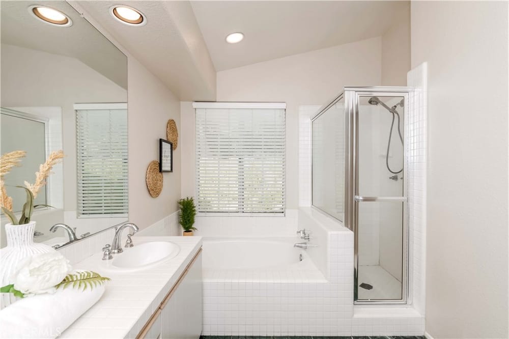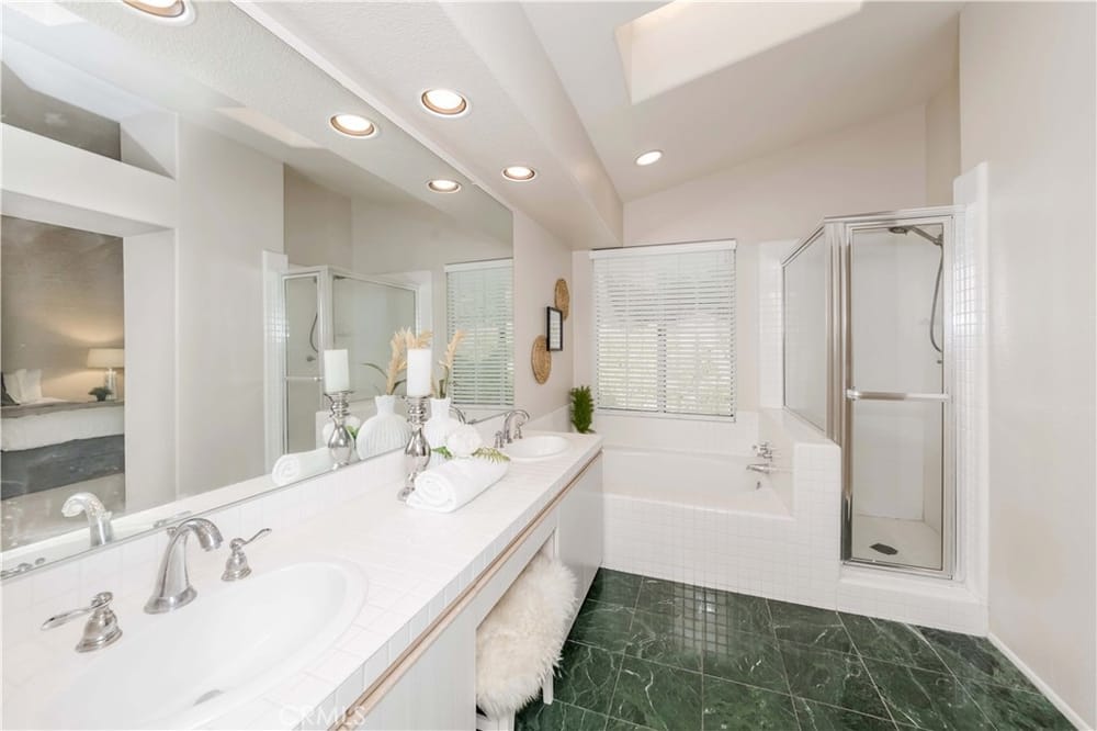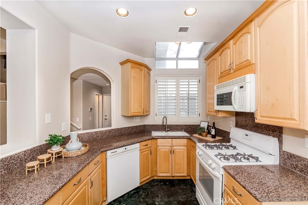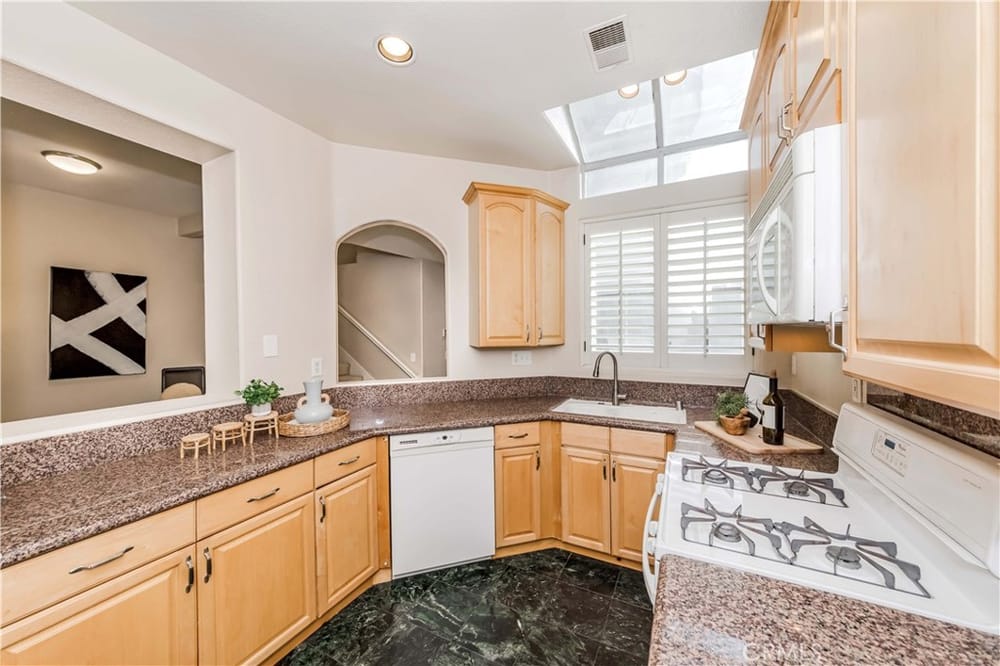 Set amidst the scenic hills of Fullerton, the highly desirable Maison de Fleur community offers a peaceful and picturesque lifestyle. This property enjoys a prime location directly across from the expansive 105-acre Ralph Clark Regional Park, surrounded by lush greenery that enhances the serene atmosphere. The community is well-maintained by the Association, offering a quiet and relaxing environme...nt.Situated at the top of the hill in the back of the complex, this home is attached on only one side, providing a sense of privacy. Its private entry and unique location give it the feel of a single-family home rather than a condo. This modern two-story residence boasts an open floor plan with no one above or below, complemented by large windows and skylights that fill the interior with natural light. Meticulously maintained by its current owners, the property is in immaculate condition and ready for move-in.The spacious living room features stunning waterproof laminate flooring and a dual-sided fireplace, perfect for cozy evenings. The bright kitchen includes granite countertops, upgraded cabinets, white appliances, recessed lighting, a solarium window, and elegant marble flooring. Adjacent to the kitchen, the formal dining area with a solarium window provides a wonderful space for entertaining family and friends.Upstairs, the master suite is a true retreat, offering breathtaking hill views, a luxurious bathroom with an oval tub and separate shower, and a walk-in closet with mirrored doors. Two additional bright and generously sized bedrooms also feature mirrored closets. For added convenience, the home includes an upstairs laundry area and plantation shutters throughout.The peaceful, fenced brick backyard/patio is ideal for gardening, enjoying your morning coffee, or hosting outdoor gatherings. The property also includes direct access to a two-car garage and is located just steps away from guest parking. With low HOA dues of only $220/month, residents enjoy access to a pool, spa, and playgrounds.Conveniently located near markets, shopping, restaurants, parks, golf courses, and transportation, this home is the perfect blend of comfort and convenience—a true gem!