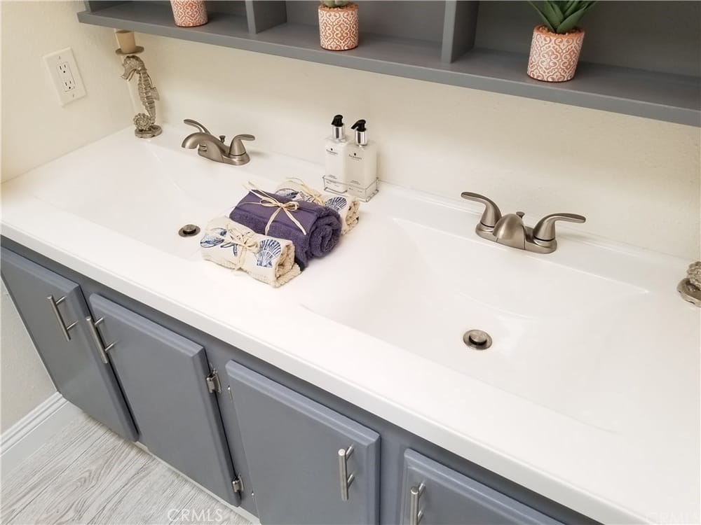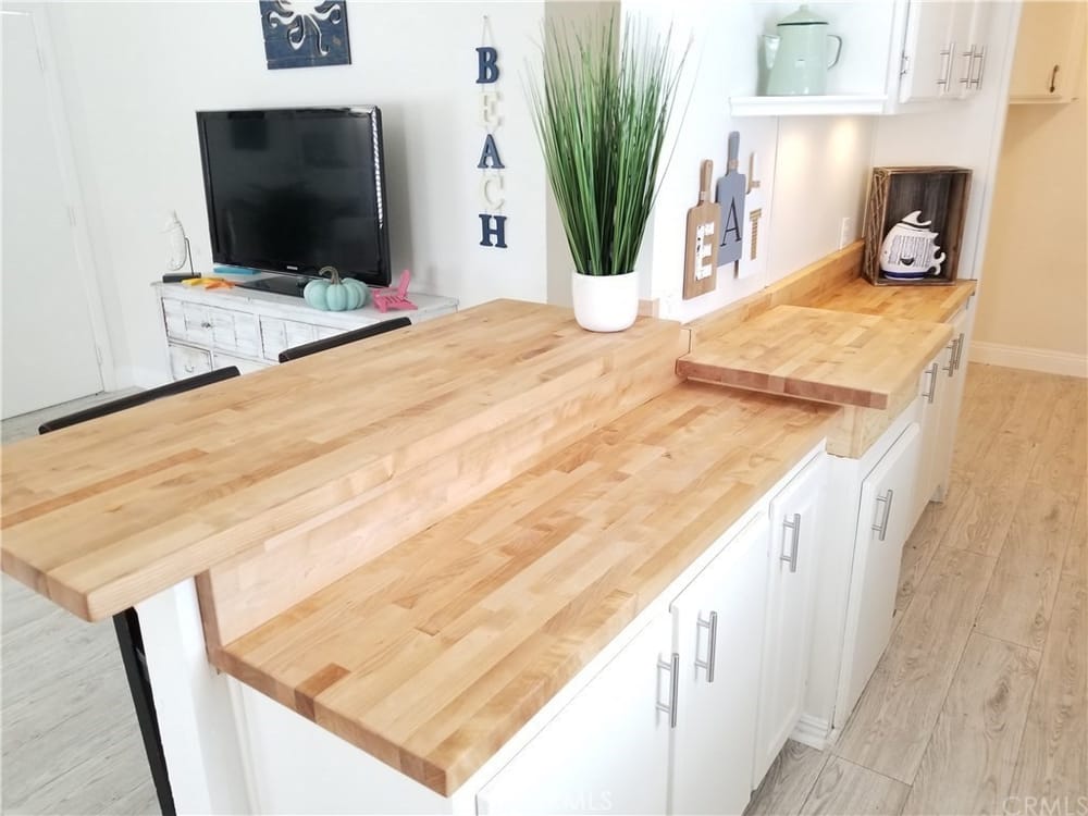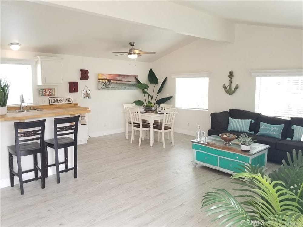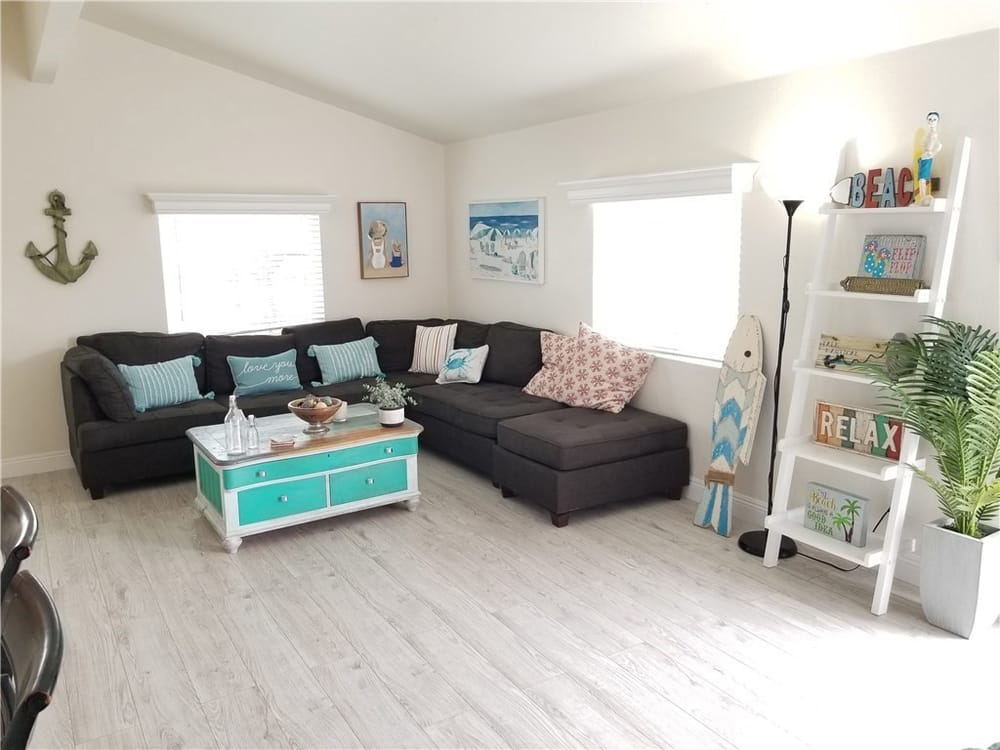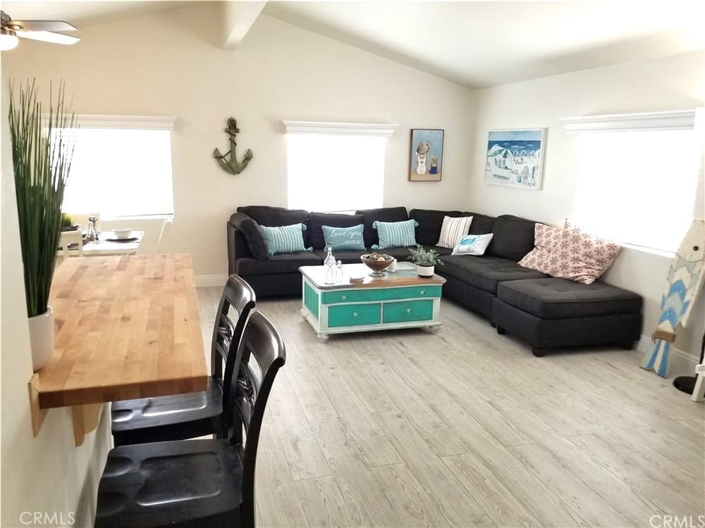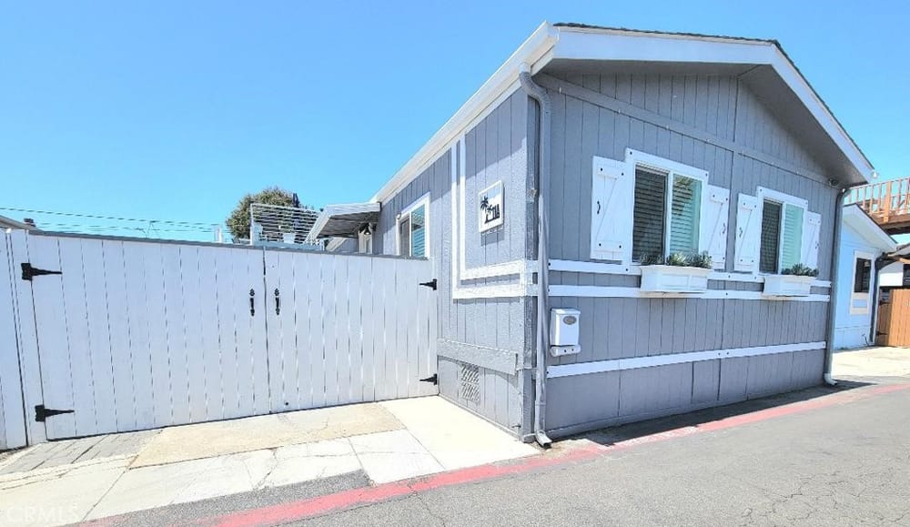 Across the street from the OCEAN with new upper Ocean view deck!!! Very Rare Find! Awesome beach house in the lovely Cabrillo Waterfront. Look no more! Completely Remodeled! Gorgeous open floor plan, with giant living and dining room. This beautiful home has 3 bedrooms and 2 bathrooms. 1,120 sqft Home has newer Wood Laminate Flooring throughout & Newer Interior and exterior paint with 5-inch baseb...oards throughout. Ceiling fans. Newer outside Wooden fence. This home is light and bright with Refrigerator, dishwasher, Washer and dryer and stove. The kitchen has butcher block countertops. The master bedroom has Giant mirrored Walk-In closet and newer vanity and faucets with double sinks. Also, newer vanity and sink in 2nd bathroom. Also, included is Washer & Dryer with separate laundry room and a Large outside storage shed. 4 cars, private parking & guest parking are also available. This home has a Newer Metal, concrete and stone upper PRIVATE side deck for viewing the ocean sunsets, sand, Catalina Island and mountain views!!! 1 year home warranty included! You can also park 1 car under the deck and one car in the side yard. Also, 2 reserved parking spots out front of the home. The monthly park lease is only $3297.00/month which includes access to the newly upgraded community clubhouse, pool, and fully upgraded gym are all located in the park’s private community with security. Located down the street from the famous “Surf City” Huntington Beach Pier and Main Street. Also, enjoy Pacific City with new shops and restaurants.