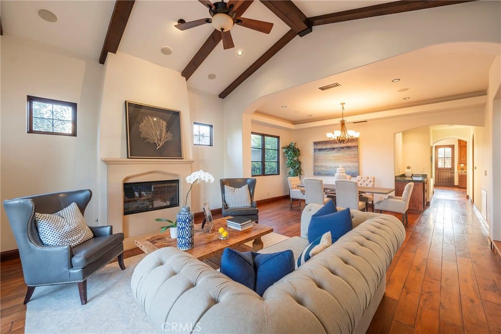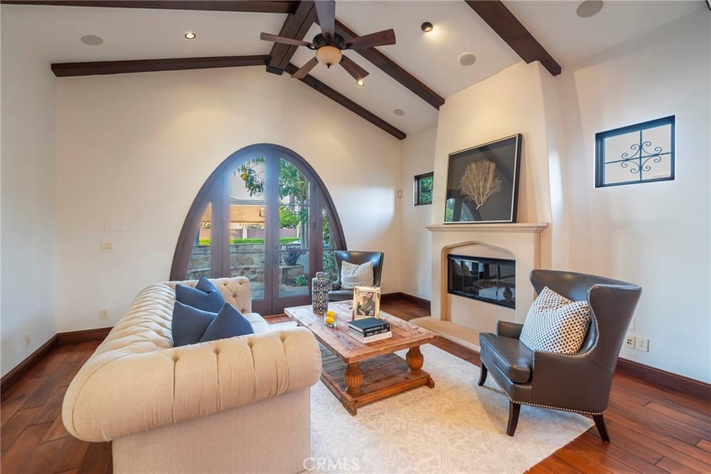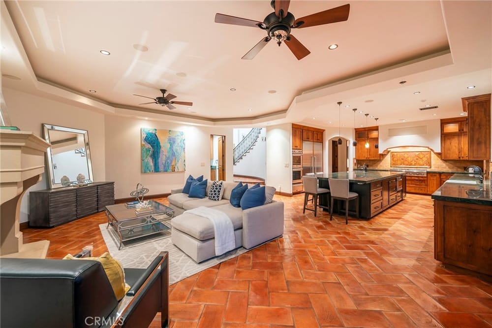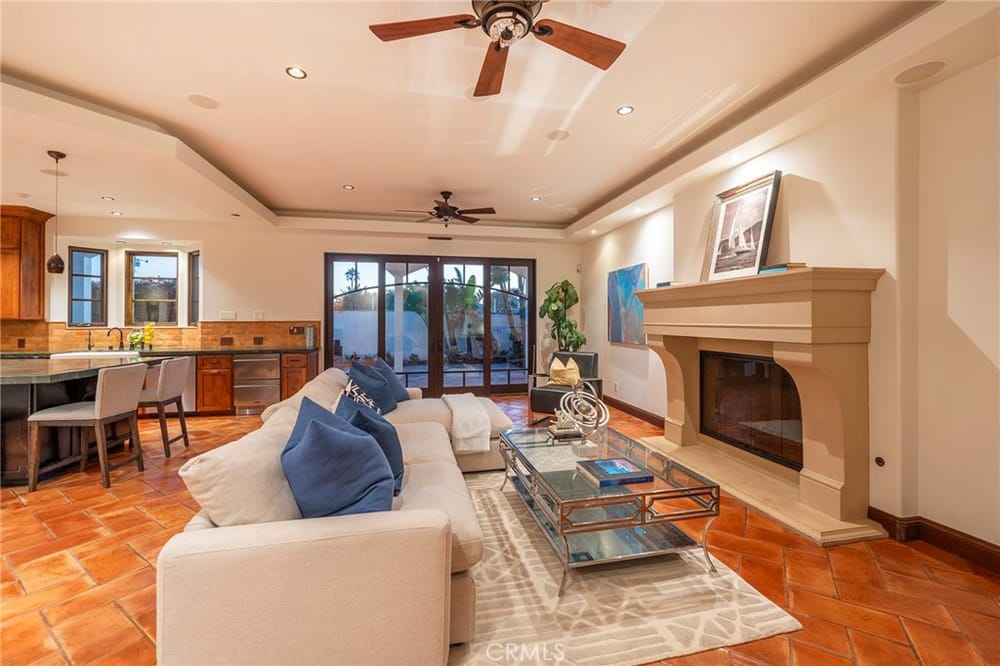 Welcome to this exquisite 3-story, Spanish-style home, masterfully built in 2006 and boasting 4,542 sq foot living space on a 6000 sq foot lot. Nestled in a sought-after neighborhood, this residence combines classic elegance with modern amenities to create a truly luxurious living experience. Step into a grand entry with stunning terra cotta flooring, setting the tone for the home's warmth and ch...aracter. Enjoy a formal living room with a cozy fireplace and a separate dining area, perfect for hosting gatherings. The heart of this home is an expansive kitchen featuring a large island with a bar counter, dual dishwashers, a cooling drawer, an ice maker, and high-end Thermador appliances including a stove top, fridge, built-in microwave, double oven, and warming drawer. The kitchen seamlessly transitions into a spacious family room with fireplace, also adorned with terra cotta flooring. Two generously sized bedrooms are conveniently located on the ground level, each with access to a full bathroom, offering versatility for guests or multi-generational living. A separate laundry room on the main floor enhances convenience and functionality. The luxurious primary suite features a large walk-in closet, dual sinks, a deep soaking tub, and a large walk-in shower. Enjoy your private balcony with breathtaking views of the ocean and Catalina Island. A large office off the primary bedroom with a wet bar or a versatile bonus room and views of the ocean completes this level. The sun deck offers panoramic views of Catalina Island, the sunset, and the ocean, creating the perfect setting for relaxation and entertainment. The beautifully landscaped backyard is designed for enjoyment and tranquility, with lush greenery and palm trees enhancing the serene atmosphere. A charming front yard sitting area with stone accents adds to the home's curb appeal and provides a welcoming entrance. The 2-car garage boasts epoxy flooring, ample shelving, and an attic for additional storage needs. Cherry wood flooring flows throughout the home, with plush carpet in the bedrooms for added comfort. A dedicated media closet ensures optimal organization for your entertainment systems. Palm trees grace both the front and backyard, contributing to the home's tropical allure. This stunning property offers the perfect blend of elegance, comfort, and breathtaking views. Don’t miss your chance to own this remarkable Spanish-style estate. Schedule your private showing today and you won't regret it.