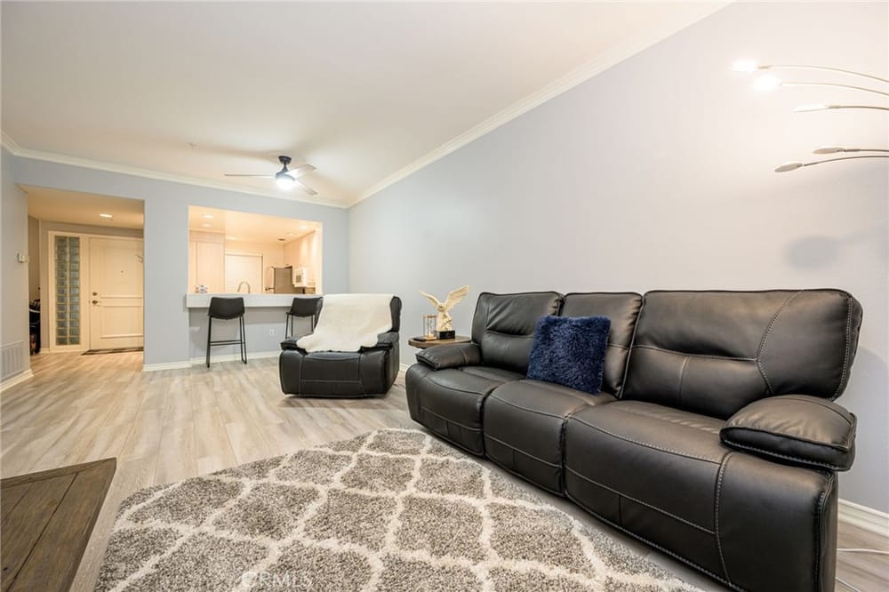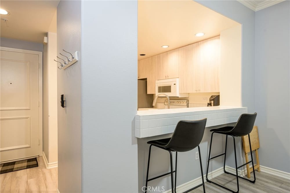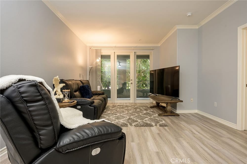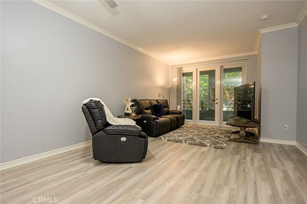 REDUCED!! Resort style living at The Metropolitan. Very large one bedroom plus den that can be used as an office or second bedroom. Very good location. Only 1 common wall. All new hardwood flooring throughout. Kitchen features new cabinets, electric oven and range, dishwasher, washer, dryer and refrigerator all included in sale.. 9-foot ceilings throughout. Bathroom features dual vanity and new ...cabinets with lots of storage, private toilet & shower adjacent to large soaking bathtub. Bedroom has spacious walk-in closet and brand new carpeting. Patio is very large with lush tropical landscape and greenbelt views. Close to South Coast Plaza & Fashion Island/ Newport Beach, all the best Orange County has to offer is at your doorstep. Within a few minutes of JW Airport & 3 major freeways this ideal location is for the most cosmopolitan of residents. Features pool, spa, gym & guarded gate. Water, hot water trash and gas are all included in HOA dues. Great opportunity here! Hurry!
