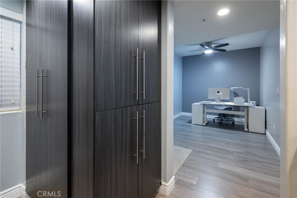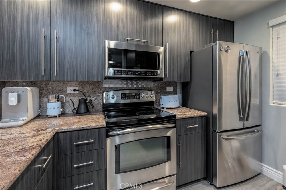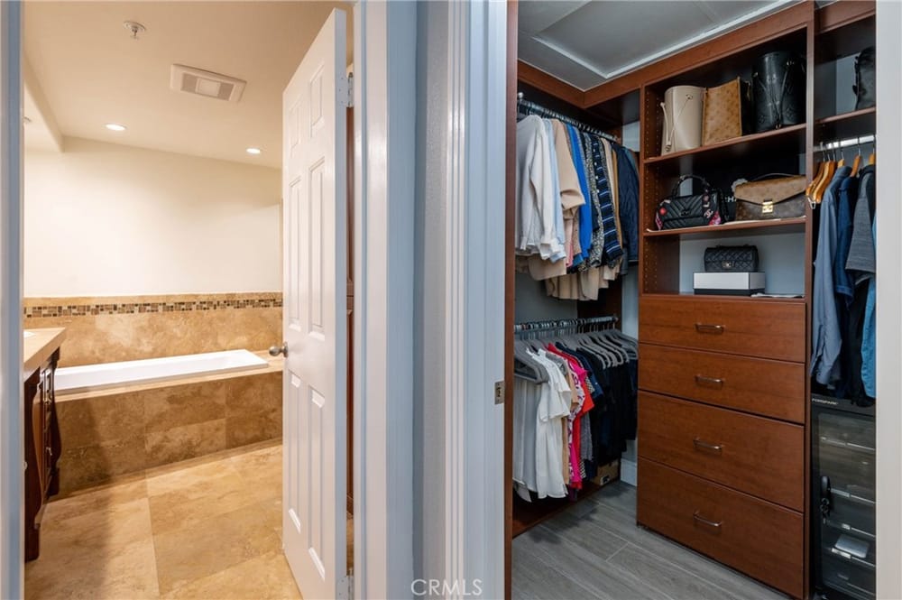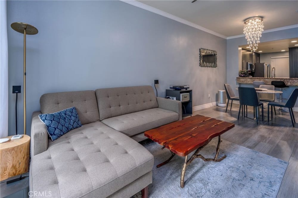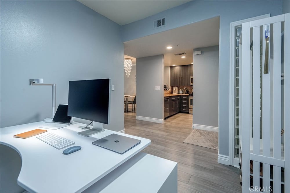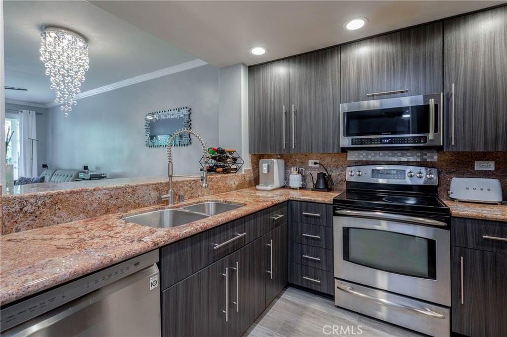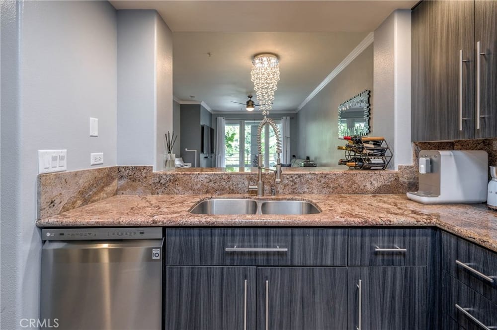 Beautifully Remodeled One-Bedroom Plus Den/Office Condo in Irvine!! Welcome to this stunning condo in one of Irvine’s most sought-after communities, with 24-hour guard-gated security. Conveniently located near freeways, shopping, and dining, this condo offers an ideal blend of comfort and accessibility. Inside, the open-plan living area impresses with high ceilings and opens to a private balcony, ...where you can enjoy the scenic, lush landscaping. The kitchen has been tastefully upgraded with custom cabinetry, granite countertops, and a full backsplash. Stainless steel appliances and a breakfast bar make this a perfect space for cooking and entertaining. This home includes a versatile den/office space, ideal for remote work or easily reconfigured as a second bedroom to suit your needs. The great room features crown moulding, upgraded baseboards, and an inviting dining area, perfect for gatherings. Throughout, you’ll find newer wood-look ceramic tile flooring that adds a modern and functional touch. This condo also includes updated paint, custom window coverings, enhanced lighting, central A/C, a newer furnace, and in-unit laundry with a full-size washer and dryer. The primary suite is a private retreat with a fully remodeled bathroom, complete with granite countertops, a dual-sink vanity, extra built-in storage, and a luxurious soaking tub. A walk-in closet with custom organizers provides ample storage and organization. You won't have to worry about parking either. This unit includes two assigned parking spaces in the subterranean garage. Plus, the HOA takes care of your water and trash bills. As if all of that is not enough, the community has a pool, spa, clubhouse, and fitness center for you to enjoy. It's also conveniently located near John Wayne airport, Park Place shops and restaurants, Fashion Island in Newport Beach, South Coast Plaza and the Irvine Spectrum. This is your chance to live in an absolutely gorgeous home in a highly sought-after neighborhood. Don't miss out!
