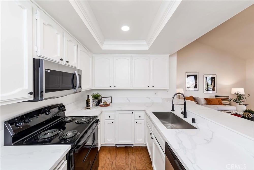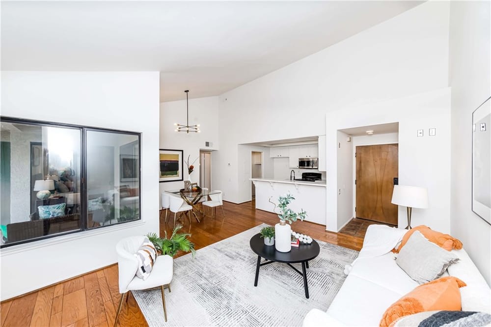 Discover modern luxury in this beautifully upgraded penthouse corner unit, freshly enhanced with new paint, countertops, bathrooms, and all-new appliances. This private top-floor retreat offers breathtaking views of the pool and lush trees from balconies off the dining area and both bedrooms. With no neighbors above, enjoy unparalleled privacy and tranquility.Conveniently located near local colleg...es, the home features a bright and airy living room with a cozy fireplace and soaring vaulted ceilings. The upgraded kitchen shines with sleek new countertops, a breakfast bar, and brand-new appliances. The spacious master suite boasts a walk-in closet, dual-sink vanities, and ample storage. A separate laundry room is thoughtfully located off the kitchen for added functionality.Common areas are adorned with elegant wood flooring, while the bedrooms feature low-maintenance ceramic tile. Access your home effortlessly with no stairs—simply take the elevator directly from the underground parking.The HOA provides comprehensive services, including water (with heating), gas, trash, and access to exceptional amenities such as a sparkling pool, relaxing spa, and lighted tennis and basketball courts.This upgraded penthouse combines contemporary style, convenience, and premium amenities, making it the ideal place to call home!