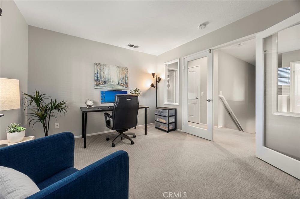 Located in the exclusive gated community of Threewoods, this development is highly sought after. Bordered on one side by Coyote Hills Golf Course and close to shopping and access to main streets, it is a desirable location to live and the curb appeal invites you in. Everybody wants a house in true move-in condition, and this is one for you to come and take a look at if Fullerton is your desired c...ity. With 3 bedrooms and 3 baths plus an office area that could also be a bedroom or bonus room, you have the space to accommodate your needs. The main floor level includes the living room, then an open family room with a fireplace and kitchen with dining area. Check out the kitchen with an island, a walk-in pantry, a five-burner stove, counters covered by a Corian surface. Lots of counter space and storage available in this kitchen. A guest bath and an inside laundry complete this floor. Flooring on the first level is luxury vinyl planking, then the upstairs is mostly carpet. Up the stairs to the glass enclosed space that is currently used as an office and could be used as a 4th bedroom, study, library, or music room. You can make this room work to fit your specific needs. Go to the right and you are in the spacious primary bedroom and bath with walk-in closet, private toilet room, dual sinks with a soaking tub and separate walk-in shower. Wonderful feel to this ensuite bedroom and bath! On the other side of the home upstairs are three additional bedrooms each with its own walk-in closet. The hall bath also has dual sinks and a tub/shower combo. All the counters are the Corian. Access the backyard through the sliding glass doors onto the patio area that is primarily maintenance free with artificial turf and concrete patio and above ground spa. There is an additional patio space in the front of the home. Sit in the front and get to know your neighbors. The HOA covers and maintains the common area grounds and the controlled access. This development enjoys a park like feel as you walk around inside. Some of the best schools are represented in this development with Joint Union High School and Beechwood School. What a wonderful place to call home!