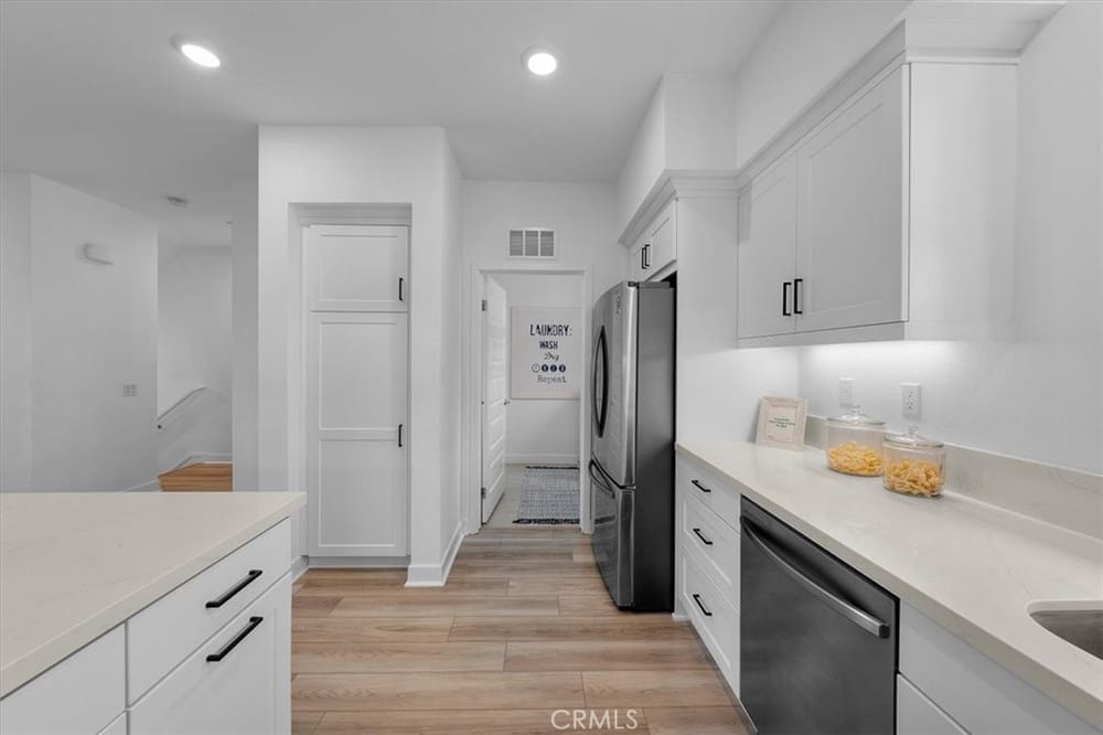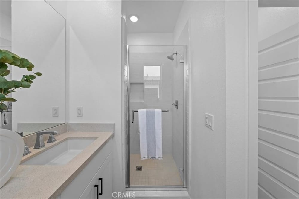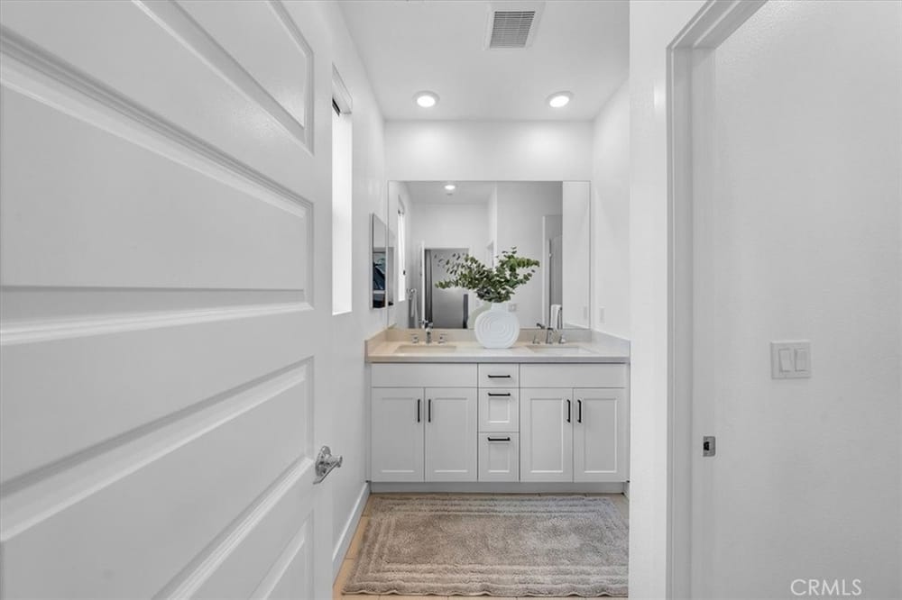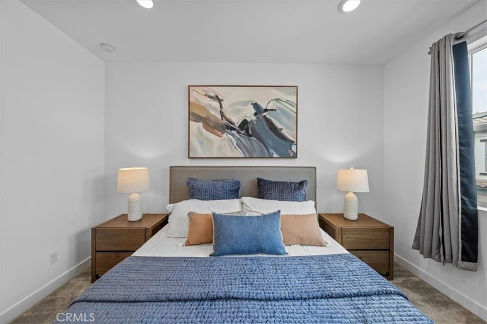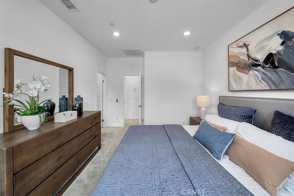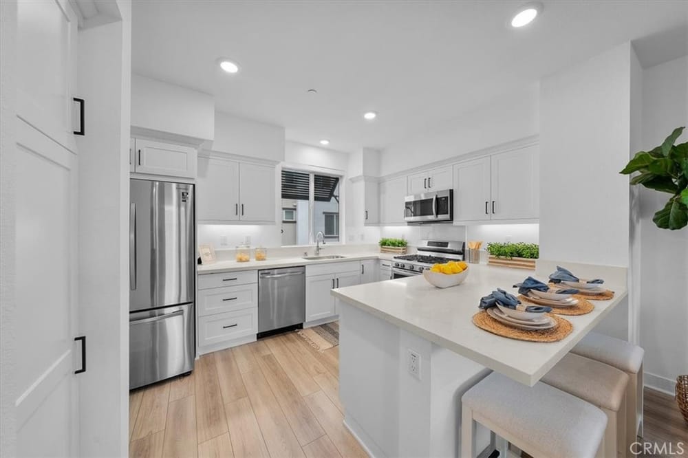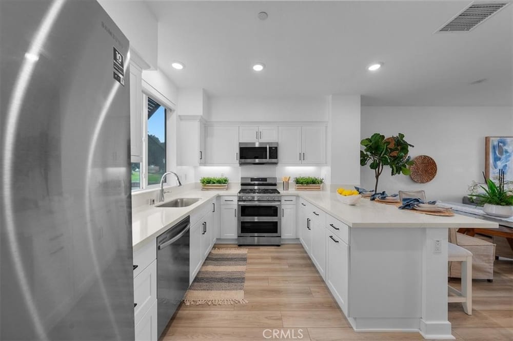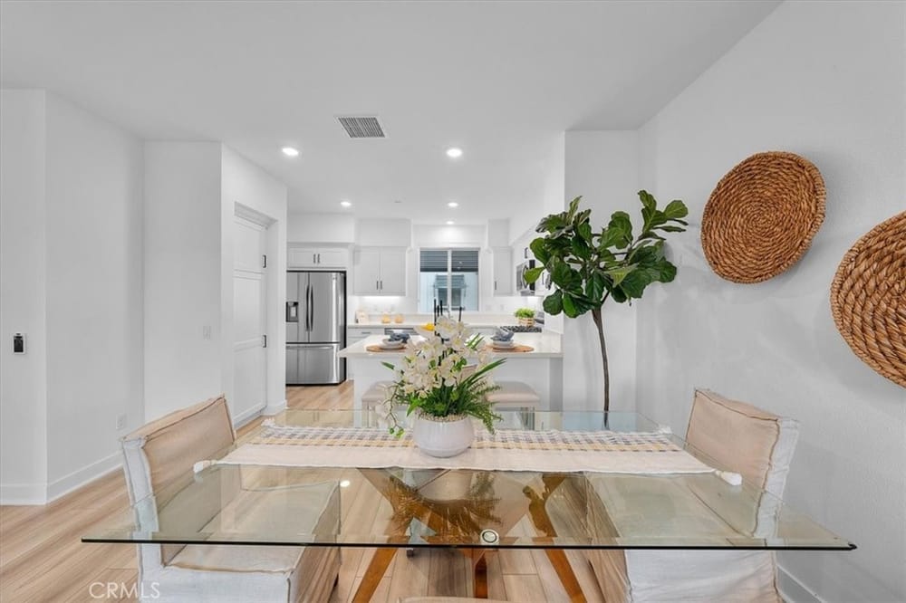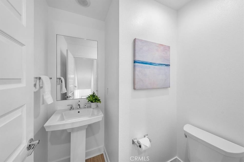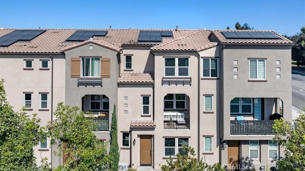 Experience modern luxury in this pristine Anaheim townhome, built in 2021 and offering a perfect blend of style, comfort, and functionality. With 1,624 square feet of living space across three levels, this home features two bedrooms, four bathrooms, and a versatile den. Upon entry, you're greeted by a flex space that can serve as a guest room, office, or living area. This level also includes a con...venient half-bathroom and direct access to a finished, two-car side-by-side garage. The second floor opens up to a bright and spacious living area, featuring sleek luxury vinyl plank flooring and an open-concept kitchen with a generous quartz countertop, stainless steel appliances, barstool seating, and pantry. This main level also includes a dining area, half-bathroom, and laundry room with side by side washer and dryer. Step outside to relax and enjoy the balcony. Retreat to the top level, where the two bedrooms await, each with its own ensuite bathroom and walk-in closet. The expansive primary suite offers a spa-like bathroom with dual sinks and tiled shower enclosure. Additional highlights of this modern home include central A/C, tankless water heater, forced air heating, whole house fan, solar panels, and smart home technology. Conveniently located near schools, shopping centers, freeway access, Dad Miller Golf Course, and Knott's Berry Farm, this townhome offers a premier opportunity to enjoy the best of Orange County living!