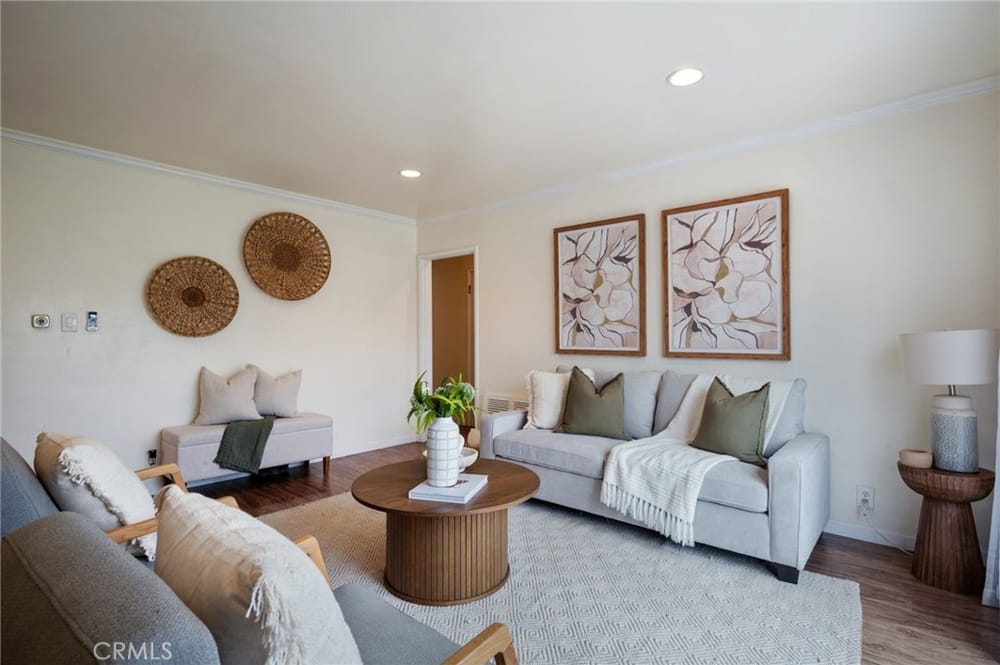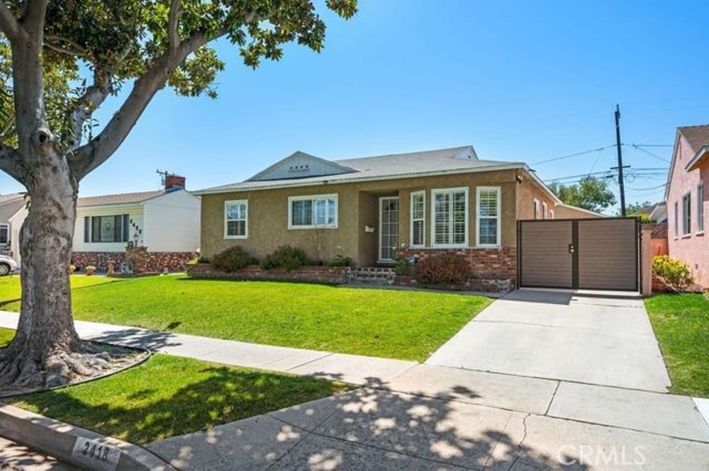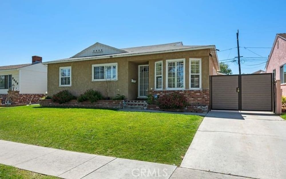 This charming 3-bedroom, 1-bath home in Lakewood, CA, offers comfort and convenience in a highly desirable neighborhood. The interior features laminate flooring throughout, complemented by elegant white shutters adorning every window. Each bedroom is equipped with a ceiling light/fan to keep you cool and comfortable, and three-split type air conditioning units ensure optimal temperature control in... all seasons. The kitchen boasts a convenient washer and dryer hookup, while the adjacent dining area is enhanced with beautiful bay window, providing plenty of natural light and cozy space for meals. Outside, enjoy lush green lawns in both the front and the back yards, with mature fruit trees perfect for relaxing and entertaining. A long driveway leads to a spacious two-car detached garage, offering ample parking and room for an RV or additional vehicles. This home is ideal for those seeking style, functionality, and outdoor space in a prime location.