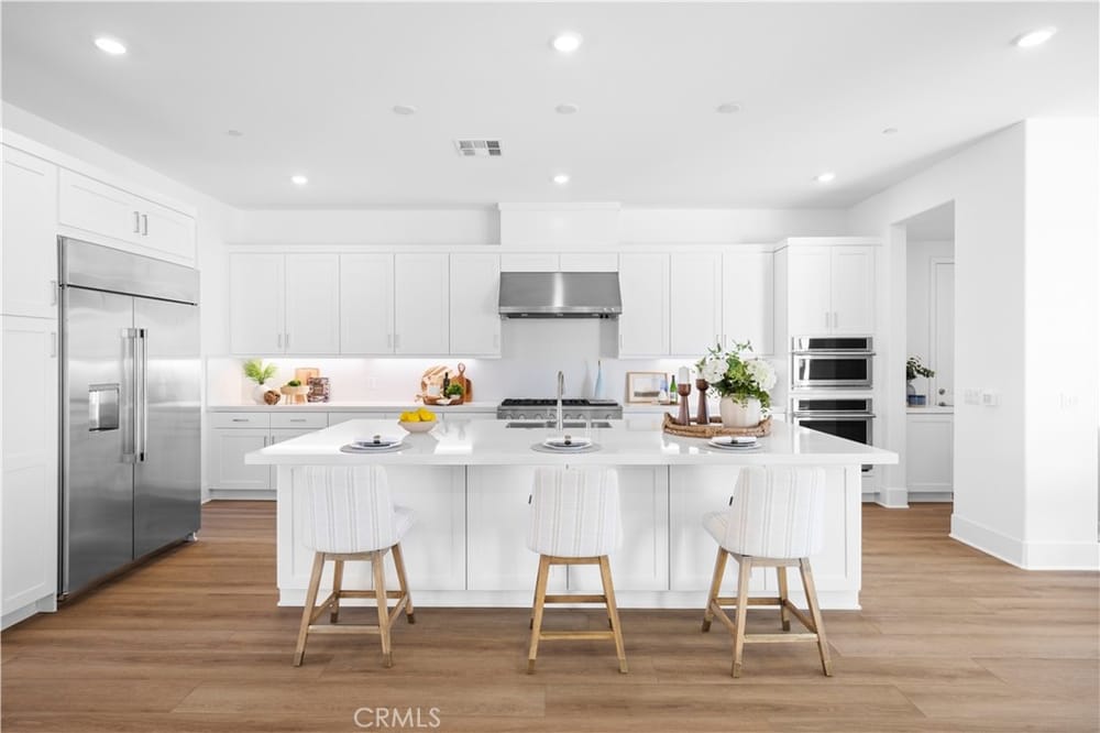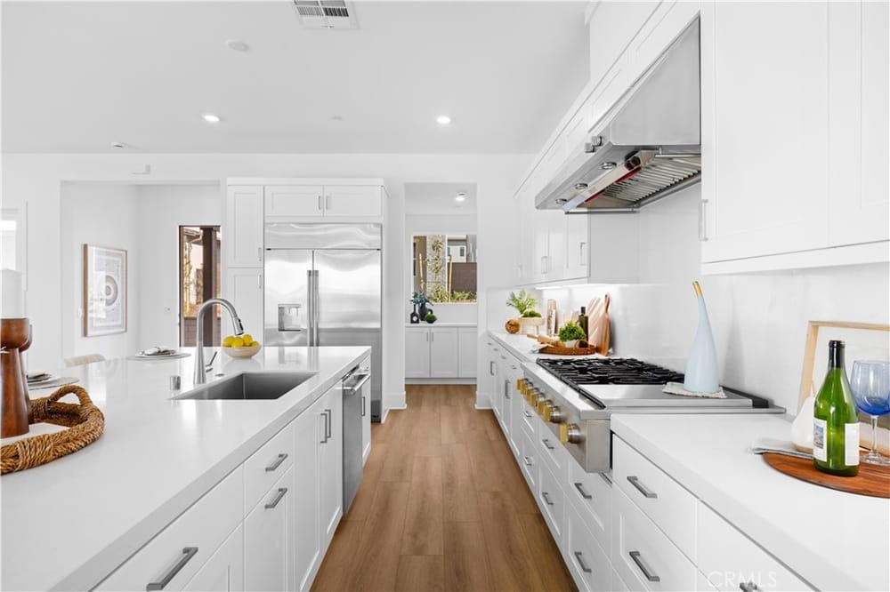 Discover modern living in this brand-new turnkey single-family home located in the highly desirable Lunar Park community, which boasts a planned 13-acre park, two pools, and pickleball courts. The home welcomes you with a covered patio and an inviting open-concept design, featuring a spacious living room that flows seamlessly into a gourmet kitchen equipped with a center island, built-in refrigera...tor, commercial-grade cooktop, and a pantry with ample storage. Both the dining room and living room opens to the backyard through sliding glass doors, perfect for indoor-outdoor living. A private main-level bedroom with an en-suite bathroom offers flexibility for guests or a home office. Upstairs, a versatile bonus room connects to a deck, while three additional en-suite bedrooms, including a luxurious master suite, provide comfort and privacy. The master retreat features a spa-like bathroom with a double-sink vanity, soaking tub, walk-in shower, and an expansive walk-in closet. Enjoy easy freeway access and proximity to all the sports facilities in Great Park, Irvine Spectrum, and all the incredible amenities of Great Park Neighborhoods, including clubhouses, heated pools, hot tubs, sports courts, playgrounds, and picnic areas.