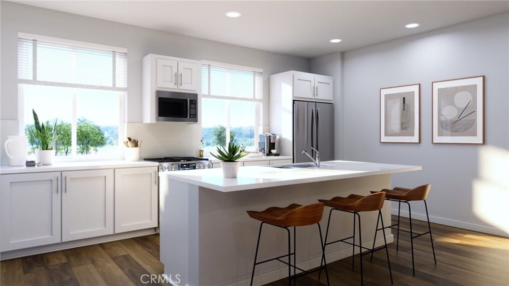 New construction in Anaheim, this TWO STORY townhome design offers 2 bedrooms both with direct access bathrooms- one on the entry level and one on the second story upstairs. Open concept design with a great room with gourmet kitchen - including island with new stainless steel appliances. Plus a direct access , two-bay, two car garage! The home includes Luxury Vinyl Plank flooring, designer sele...cted carpet, quartz countertops with upgraded backsplash, all new appliances and more! This community is under construction now and will be ready for move-in by November of 2024pictures are artist rendering