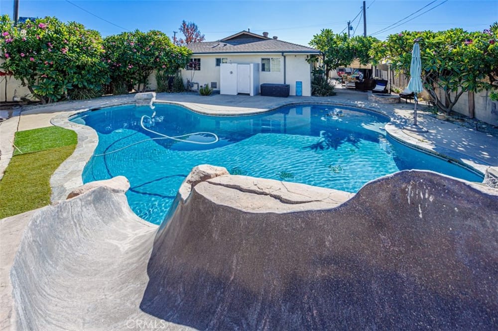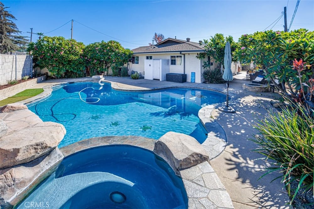 Welcome home. This Charming 3-bedroom, 2 bath pool home boasts an open floor plan designed for relaxing and everyday living. As you step inside, you're greeted by an open dining, living room and kitchen area, with granite counters and many upgrades. An outdoor retreat with a rock pool, an inviting spa and a gas fire pit for unwinding under the stars. The master is located separately with a walk... in shower, sink and a sit down vanity. The two additional bedrooms are designed for comfort and privacy. This home offers a perfect blend of indoor-outdoor living. Close to 55/91 fwy, Shopping, Eisenhower Park and public transit within walking distance. Located In the Villa Park High School district.