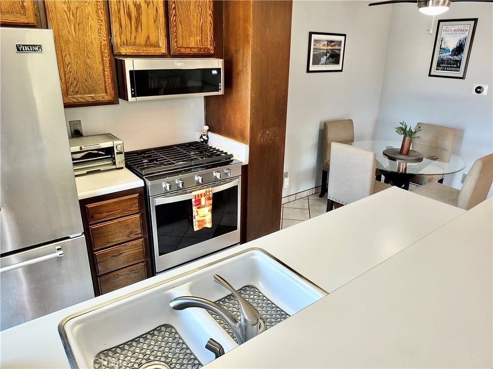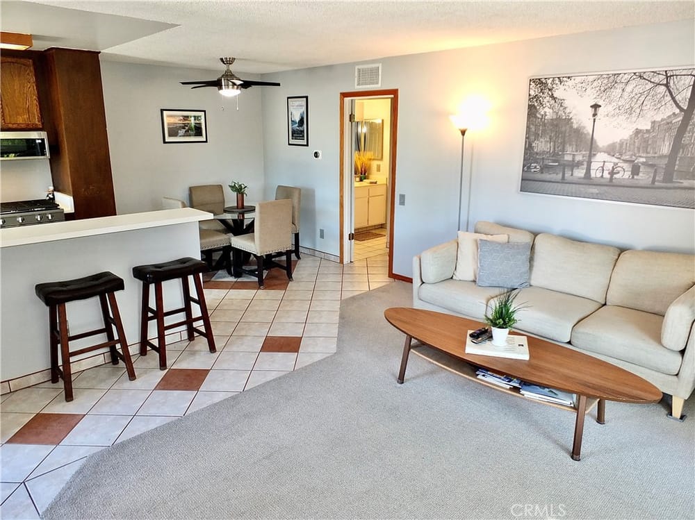 Spacious upper, end unit, with lots of natural light. Unit H features an open concept, living room, kitchen and dining room space as well as a private balcony to enjoy some outdoor space. One bedroom and one full bathroom with separate sink and dressing area. It has been upgraded with dual paned windows and patio slider, plus stainless steel appliances, and central heat and air conditioning. The ...HOA covers, water, trash and gas as well as exterior maintenance and resort style amenities such as tennis courts, a pool, 2 spas, recreation room, a large water feature and lots of greenspace. One assigned carport parking spot #206 with overhead storage, and one unassigned parking spot! All of this is conveniently located in the South Coast Metro area with access to shopping, dining, entertainment, parks, 405 & 55 freeways.