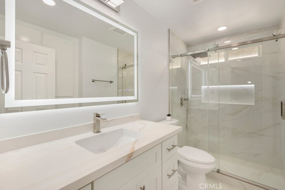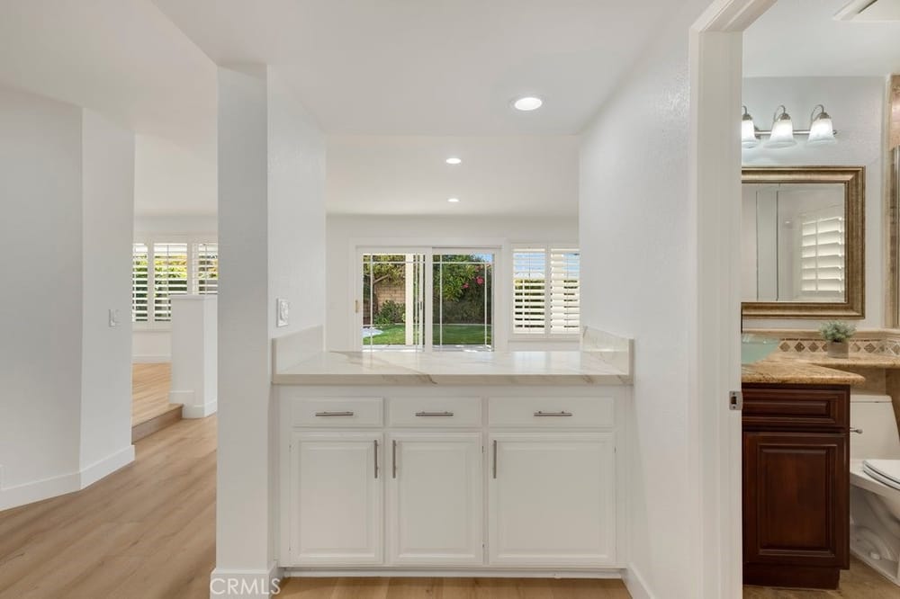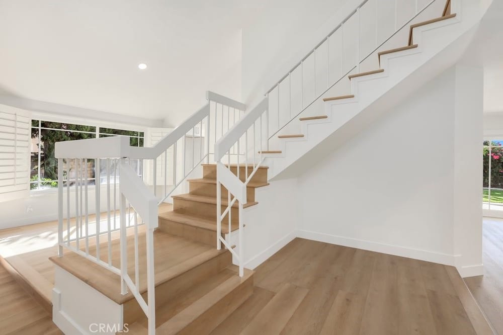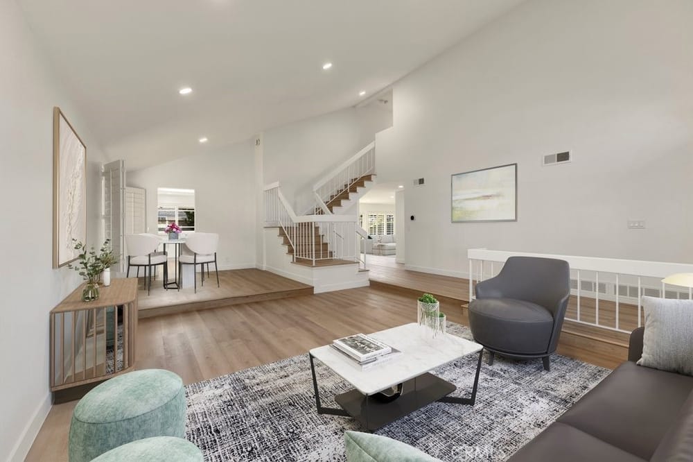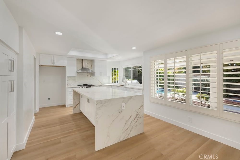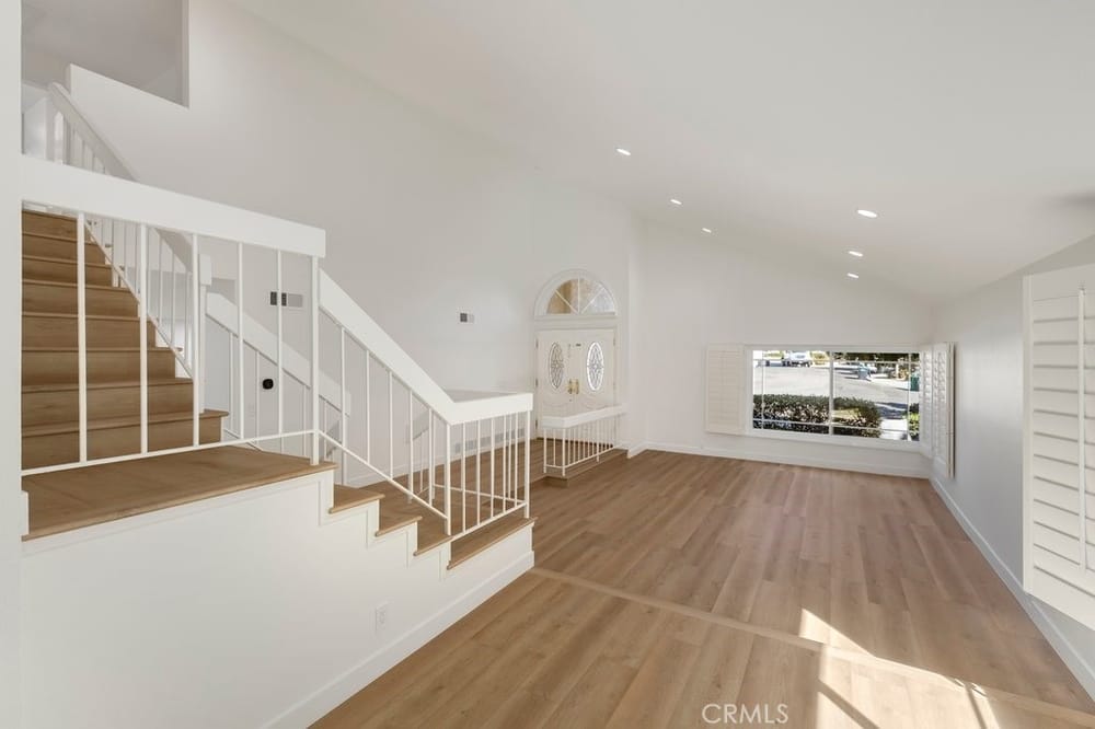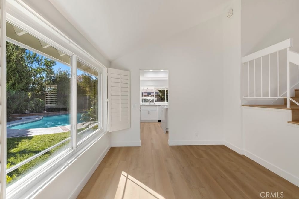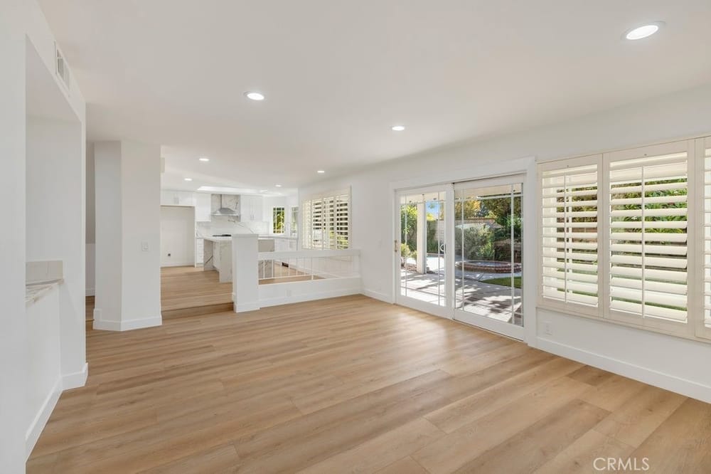 This is a unique chance to experience resort-style living on a peaceful cul-de-sac with NO HOA fees or Mello Roos. This beautifully RENOVATED two-story single-family home, built in 1978, offers a luxurious lifestyle in the sought-after Northwood community. Set on a quiet cul-de-sac, this spacious home features 2,786 sq ft of living space on a 6,365 sq ft lot, including 4 bedrooms and 3 bathrooms. ...Step inside to find newly installed luxury vinyl plank flooring, a freshly painted interior, recessed LED lighting, custom plantation shutters, and a high vaulted ceiling spanning the living and formal dining rooms. The fully renovated kitchen is a chef’s dream, featuring new white shaker cabinets, a large waterfall island with quartz countertops, stainless steel appliances, and a 5-burner range. It seamlessly connects the formal and family areas, creating a warm and welcoming ambiance. The expansive family room offers a cozy brick fireplace and large sliding doors opening to the stunning backyard. Enjoy the sparkling pool and spa in the backyard, or entertain year-round on the covered patio equipped with a BBQ, firepit, and plenty of seating. MAIN FLOOR bedroom with an updated bathroom featuring a walk-in shower, tile flooring, and a granite-topped vanity. The quiet, comfortable primary suite includes a luxurious bathroom with a walk-in porcelain tile shower, freestanding soaking tub, dual sinks with quartz countertops, porcelain tile flooring, and a large walk-in closet with custom cabinetry. Two additional bedrooms share a remodeled bathroom with a new sink vanity, white quartz countertops, and a walk-in shower. The home also includes a 2-car garage with custom storage cabinets and ample street parking. Conveniently located near shopping centers, dining, award-winning Northwood Elementary, Sierra Vista Middle School, Northwood High, major freeways, Irvine Spectrum, and Northwood & Carrotwood Parks. Don’t miss this incredible opportunity!