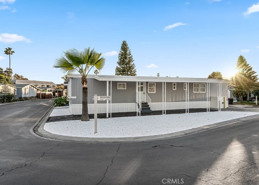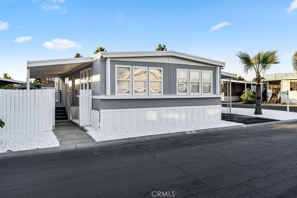 The real joy in Orange County Metropolitan Living is in fully remodeled and modernized, Luxury Mobile Homes. It is a corner lot that boasts a circular driveway and hearty drought resistant landscape. As you walk through your gated private entry and onto your deck and approach the front door, YOU are Home. Outside, do NOT miss your Cozy Private Entertainment Deck. Inside, discover an open floor pl...an that feels larger than 1400+ square feet of living space. Entertain your guests with this wide-open floor plan featuring the most updated modern interior design. With over $150,000 in modern upgrades, see just how much this 3-bedroom, 2-bathroom home with a spacious kitchen, dining room & living room enhances your quality of life. A fully upgraded - waiting to serve you kitchen includes modern Quartz Countertops, Large Center Island for food preparation and entertainment, Shaker Cabinets and Soft Close Drawers, and the full range of Stainless-Steel Appliances including Refrigerator, Range, Oven, and Dishwasher that make home cooking feel like you're starring in your own private cooking show. This location, close to Disneyland, the Honda Center, Angel Stadium, and the Orange Crush Interchange; has every brand-new upgrade you would want including Central AC and Heating, Flush Mounted LED Lighting throughout with Dimmer Switches, Luxury Vinyl Flooring, and Solid Core Interior Doors. The Laundry Room boasts a Modern Washer and Dryer. The master bedroom provides a quiet retreat adjoining its secluded master bathroom. The average home within a mile of this mecca of entertainment is over $1.080 Million for the same square footage. There is always something fun to do living near the greatest entertainment center in Orange County. Homes like these are about as RARE as winning the lottery. Don’t have all the cash for a cash purchase, don’t worry, our lender can help with financing options.