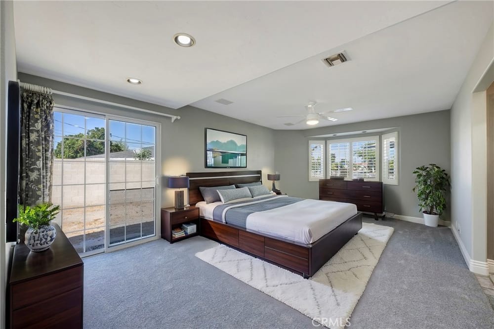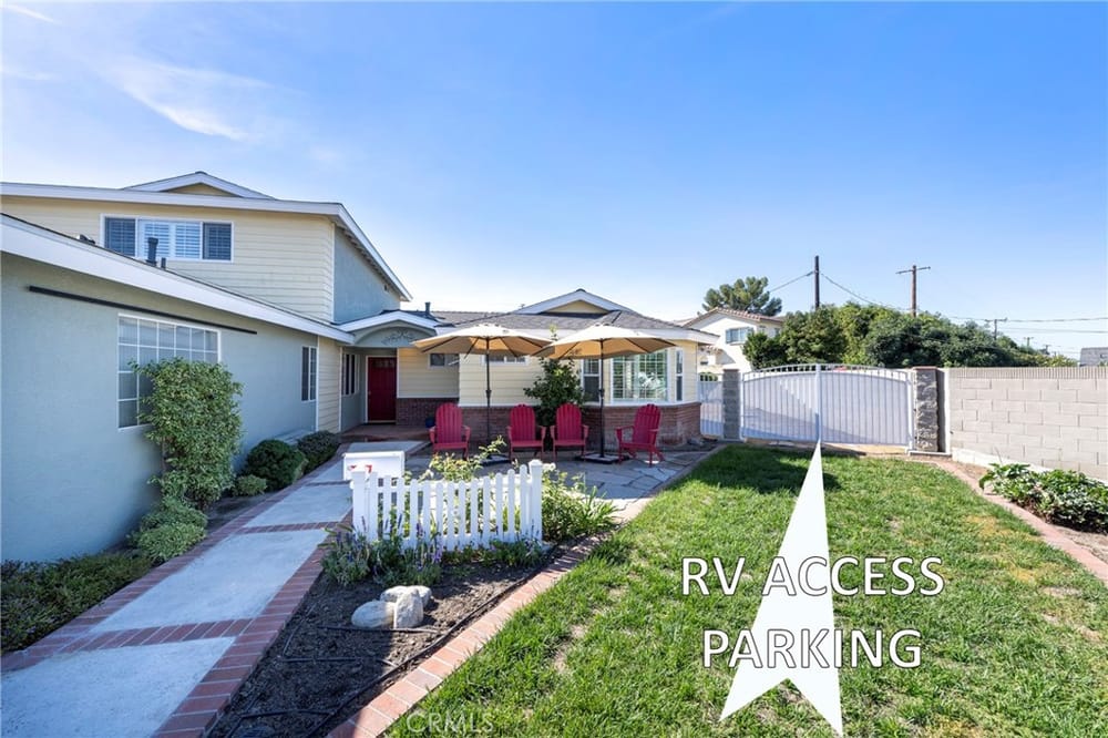 Five bedroom home on a large lot with ADU potential in West Anaheim! Features remodeled kitchen with granite countertops, tile flooring, wood cabinets, gas oven/range and recessed lighting, dual-pane windows, living room with fireplace, smooth ceilings, new carpet throughout, remodeled bathrooms, primary bedroom with shower and jacuzzi tub and walk-in closet, all bedrooms with ceiling fans and mir...rored closet doors; upstairs you find a spacious bonus room/bedroom with it's own bathroom; large lot with covered patio, gazebo, block wall privacy fence, and all near schools, shopping and major freeways!