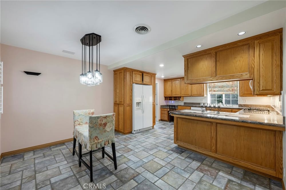 Ngôi nhà năm phòng ngủ trên một lô đất lớn có tiềm năng ADU ở West Anaheim! Có bếp được cải tạo với mặt bàn bằng đá granit, sàn gạch, tủ gỗ, lò nướng/bếp gas và đèn âm tường, cửa sổ kính hai lớp, phòng khách có lò sưởi, trần nhà nhẵn, thảm mới khắp nơi, phòng tắm được cải tạo, phòng ngủ chính có vòi sen và bồn tắm nước nóng và tủ quần áo, tất cả các phòng ngủ đều có quạt trần và cửa tủ quần áo có gương; ở tầng trên, bạn sẽ tìm thấy một phòng thưởng/phòng ngủ rộng rãi có phòng tắm riêng; lô đất lớn có sân hiên có mái che, vọng lâu, hàng rào riêng tư bằng tường khối và tất cả đều gần trường học, khu mua sắm và đường cao tốc chính!