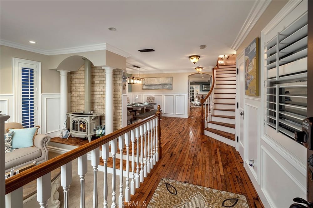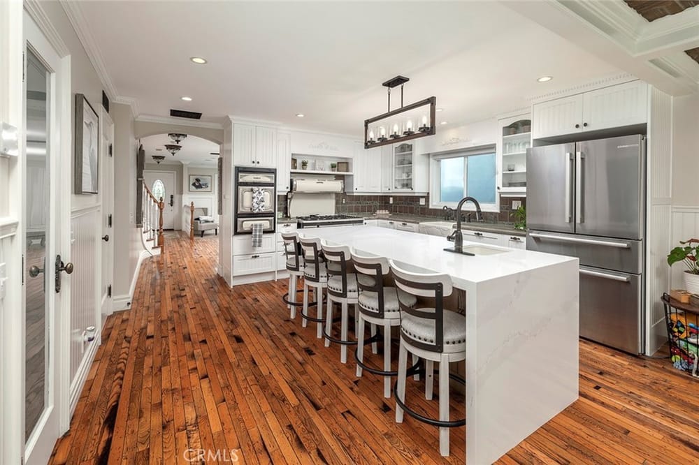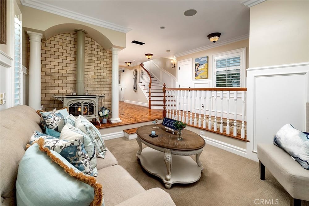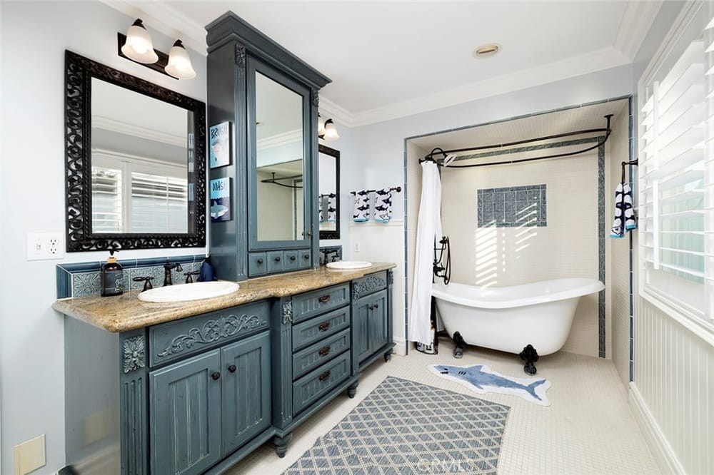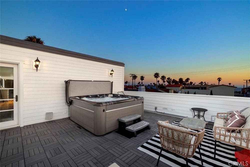 Downtown Huntington Beach now boasts this “one of a kind dream home with ocean views! Located just 2 blocks from the beach this recently remodeled 3,500 sq ft home in the heart of Huntington Beach offers a rare opportunity to own a piece of architectural history in a sought-after downtown neighborhood. As you enter, you'll be greeted by the timeless elegance of the Victorian era, reimagined for co...ntemporary living. The home features 4 bedrooms, including a complete remodel of the Primary Suite bathroom with a seamless glass shower and pebble marble mosaic tile details and top-quality fixtures. The 4th bedroom is being used as a deluxe home office featuring breathtaking views of the ocean. The newly upgraded “cinema room” features premium state of the art equipment upgrades, including a JVC projector, a 125 inch “cinema scope screen” and surround sound. There are 8 plush Italian leather reclining chairs plus individual controls for each seat to heat and massage! Enjoy the 3rd-floor rooftop deck complete with a newly installed Caldera Spa. This open seat spa for seven is an ideal retreat for connecting with loved ones and features two pumps, 38 hydrotherapy jets, and five Hot Tub Circuit Therapy stations for a full body/foot massage experience. Throughout the home, you'll find Sonos surround sound, exquisite details such as claw-foot tubs, custom English wainscoting, tin ceilings that add a touch of sophistication to every room. The kitchen is a chef's delight with a new Waterfall Island in top-grade Gold Calcutta Quartz, a New Bosch 800 stainless steel French-door refrigerator and ample storage space. Additional enhancements like reverse osmosis water systems, and double insulation ensure comfort and efficiency. Outside, indulge in your own private outdoor shower, perfect for rinsing off after a day at the beach. A short bike ride to downtown Huntington Beach offers a vibrant array of dining and shopping options at the Pier and Pacific City. This property is a truly unique find, combining preserved historical details with modern amenities for a one-of-a-kind living experience in the heart of Huntington Beach.