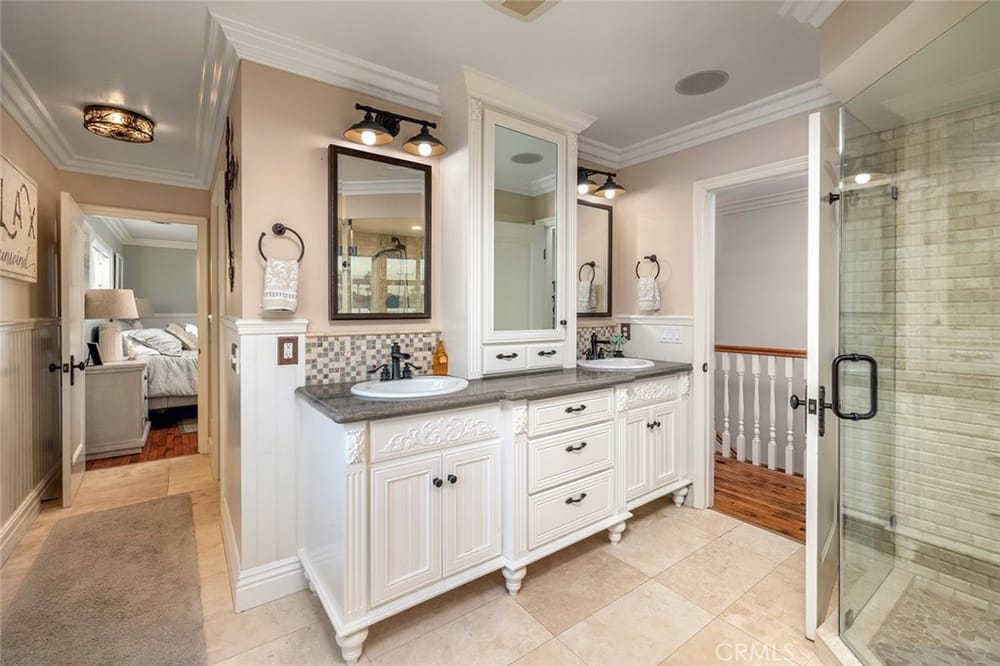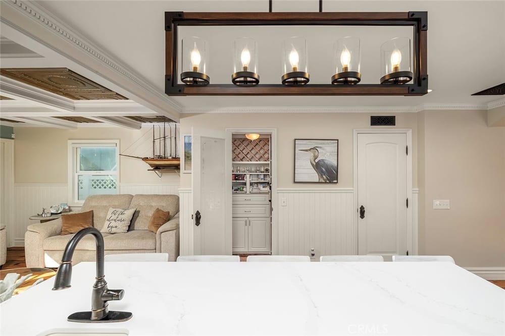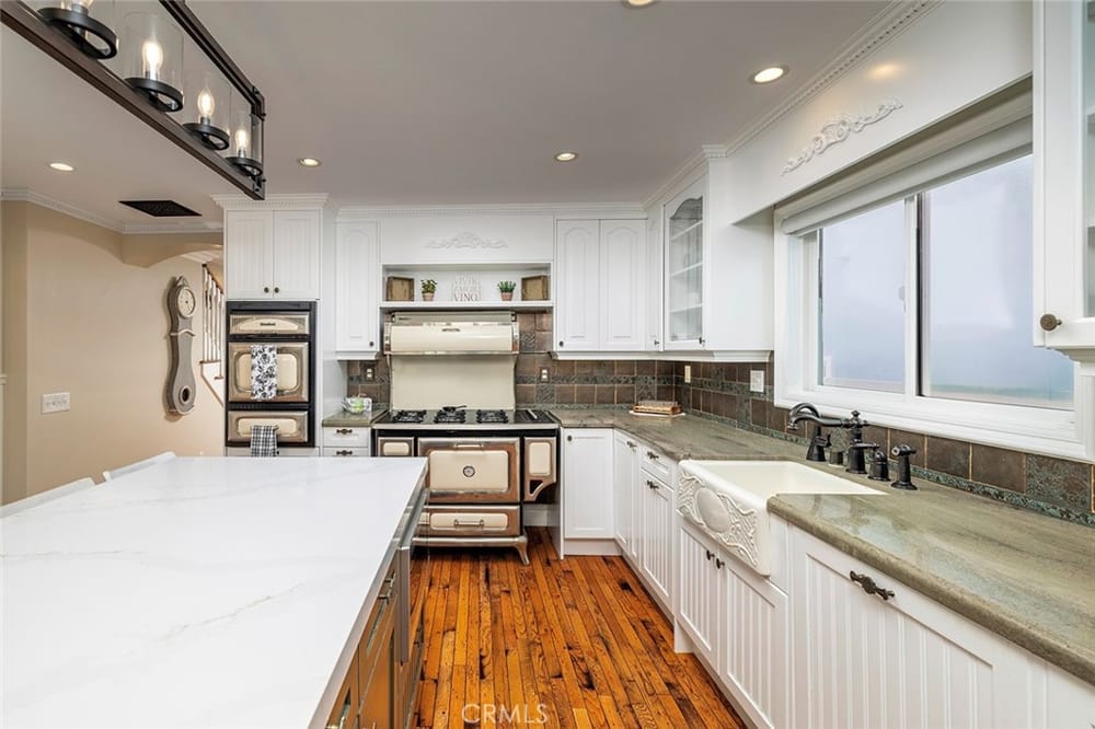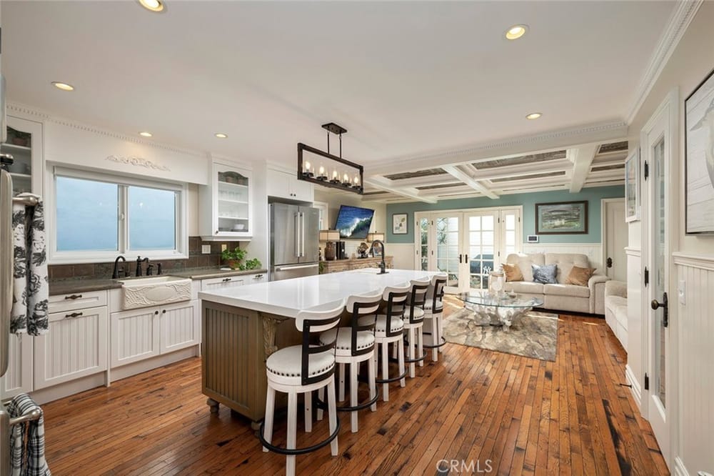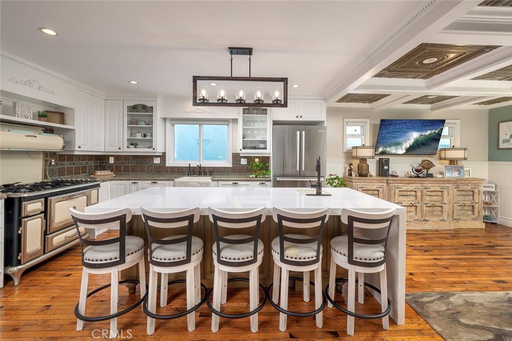 Downtown Huntington Beach now boasts this “one of a kind dream home with ocean views! Located just 2 blocks from the beach this recently remodeled 3,500 sq ft home in the heart of Huntington Beach offers a rare opportunity to own a piece of architectural history in a sought-after downtown neighborhood. As you enter, you'll be greeted by the timeless elegance of the Victorian era, reimagined for co...ntemporary living. The home features 4 bedrooms, including a complete remodel of the Primary Suite bathroom with a seamless glass shower and pebble marble mosaic tile details and top-quality fixtures. The 4th bedroom is being used as a deluxe home office featuring breathtaking views of the ocean. The newly upgraded “cinema room” features premium state of the art equipment upgrades, including a JVC projector, a 125 inch “cinema scope screen” and surround sound. There are 8 plush Italian leather reclining chairs plus individual controls for each seat to heat and massage! Enjoy the 3rd-floor rooftop deck complete with a newly installed Caldera Spa. This open seat spa for seven is an ideal retreat for connecting with loved ones and features two pumps, 38 hydrotherapy jets, and five Hot Tub Circuit Therapy stations for a full body/foot massage experience. Throughout the home, you'll find Sonos surround sound, exquisite details such as claw-foot tubs, custom English wainscoting, tin ceilings that add a touch of sophistication to every room. The kitchen is a chef's delight with a new Waterfall Island in top-grade Gold Calcutta Quartz, a New Bosch 800 stainless steel French-door refrigerator and ample storage space. Additional enhancements like reverse osmosis water systems, and double insulation ensure comfort and efficiency. Outside, indulge in your own private outdoor shower, perfect for rinsing off after a day at the beach. A short bike ride to downtown Huntington Beach offers a vibrant array of dining and shopping options at the Pier and Pacific City. This property is a truly unique find, combining preserved historical details with modern amenities for a one-of-a-kind living experience in the heart of Huntington Beach.
