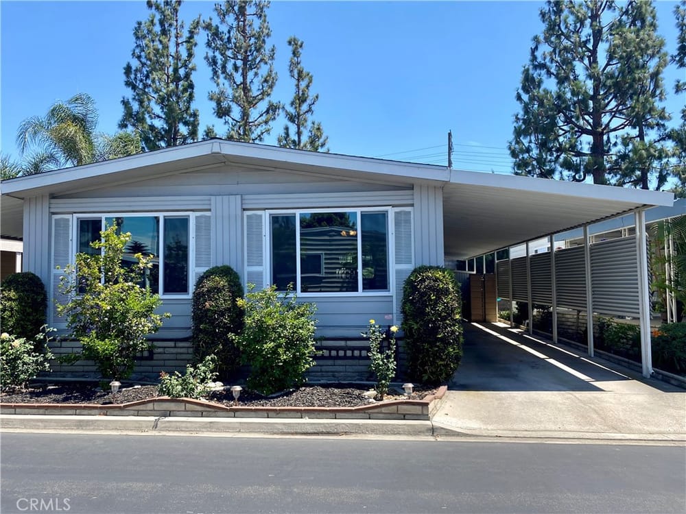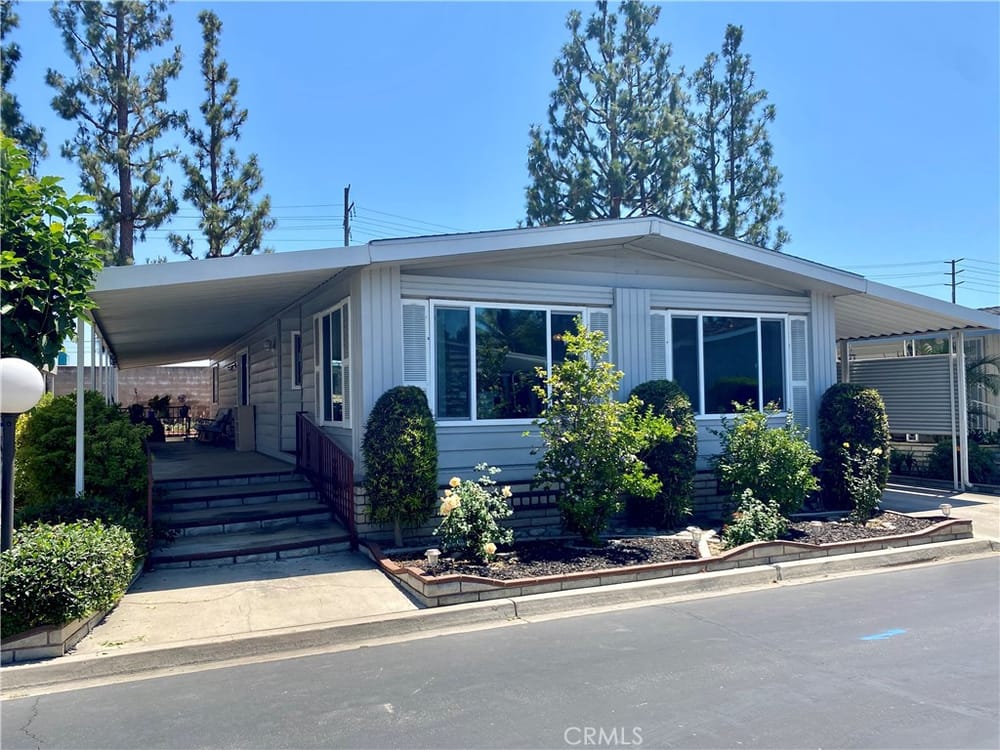 Price reduced! This is the lowest priced home in the park! This lovely 2 bedroom, 2 bathroom double wide home with view of the lake, located in the desirable 55+ Senior Community of Lake Park Placentia is ready for you to call home. You'll find new laminate flooring throughout most of the home with carpet in only the bedrooms. New windows were installed throughout about 3 years ago, along with a n...ew roof. Enjoy a view of the lake from the spacious living room with vaulted ceilings, which opens to the formal dining room. The cozy family room opens to the kitchen and looks out to the spacious front covered porch/patio area, plenty of room for relaxing or entertaining. You'll enjoy the convenience of the large inside laundry room with plenty of cabinet space. The covered carport accommodates 2 vehicles and has an area behind that for storage. You will love this charming, quiet, well maintained, friendly community with lots of great amenities, like a pool and spa and large clubhouse perfect for gatherings, including a pool table and gym, and lots of fun monthly activities. Sellers are motivated and ready to go so bring us your offers.