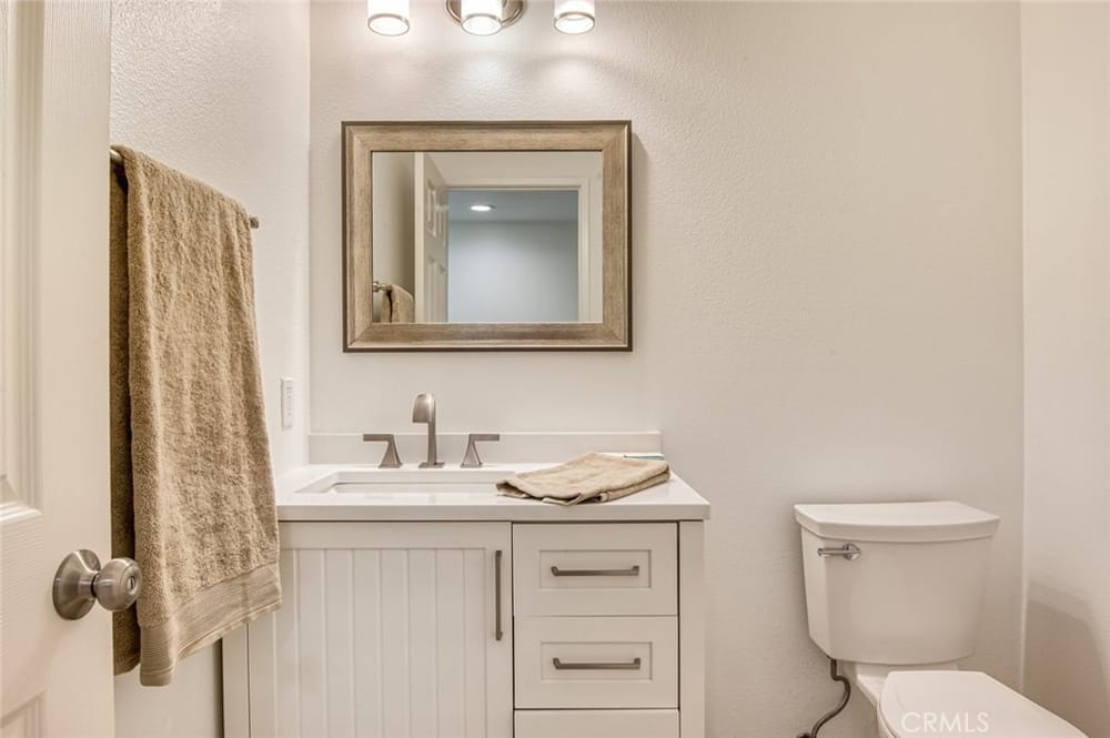Just remodeled to perfection! Two bedroom 1-3/4 bath in Princeton Townhomes. Great location and comes with an attached one car garage plus an attached carport. Spacious entry leads you to the living room with high ceilings, fireplace with slate surround. Lots of windows to let the sun shine in. Separate dining room with recessed lighting. New paint and baseboards throughout. Wood blinds downstairs.... Beautiful light laminate downstairs and up the stairs. Track lighting at top of stairs. Charming powder room with new cabinet, stone counters, mirror, toilet and stone tile floors. If you like to cook you will love this light and bright kitchen with new quartz counters, new appliances, refrigerator and pendent lighting over the breakfast counter. This home is also air-conditioned for your comfort in the summer. All bedrooms are upstairs. They feature carpet flooring, new paint and baseboards, .ceiling fans, mirrored closet doors and a shared, updated 3/4 bath with new cabinet and stone counter with large tiled shower. and pebblestone base. Blind window coverings. The master has a huge walk in closet plus there is a hall linen closet! Enjoy relaxing or entertaining on your private back patio! Community amenities include two pools, spa, BBQ, tennis courts, sport court and picnic area. A beautiful large park with a tot lot is very close by. Association fees include exterior maintenance, pest control and front yard maintenance. Close to schools, shopping and the beach!