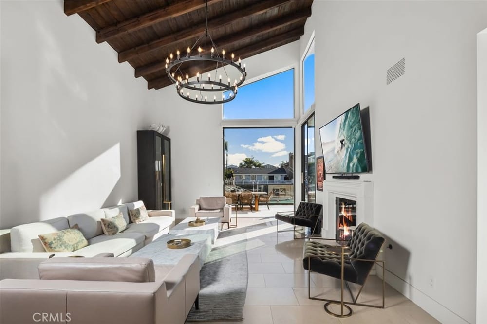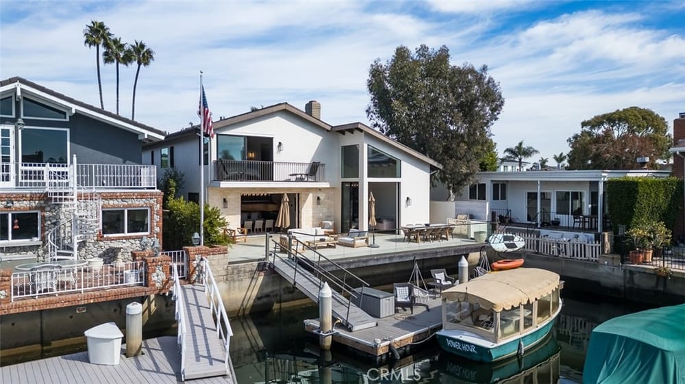 Refined yet eminently livable, this extraordinary statement home, set on the waterfront ofHuntington Harbour’s Mainland is a presentation of light, space, and beautifully hospitabledwellings. An embodiment of modern living – over 3,800 square feet of stylish accommodationsencompassing four bedrooms, four baths, and a collection of formal and informal spaces werethoughtfully envisioned and appointe...d by Creative Heights Design. Reflecting a SpanishContemporary aesthetic, both interior and exterior finishing is elevated, framed by architecturaldetailing, and enhanced by captivating water views and a series of elegant indoor/outdoormoments. Every consideration was made in crafting an ideal residence for relaxation andentertaining, as well as perfectly complementing an on-water lifestyle. A selection of amenities,conveniences, and advancements carefully curated for the property include – a gated, secludedentry courtyard with expanded conversation seating and an in-wall linear fireplace; up to 16’ceilings with smooth, wood-paneled and exposed beamed detailing; an abundance of windowsand glass doors – both pocket and pivot Fleetwood units; extensive use of stone andhardwoods; designer lighting; finish carpentry; a dramatic curved stair with custom ironwork;rare imported slab-cladding and furnishings; an open kitchen and butler’s pantry with custommillwork, equipped with over-sized, professional-grade Thermador appliances; a temperature-controlled wine gallery with capacity for 60-bottles; spa-like baths; an expansive primary suitewith its own wardrobe room and waterfront terrace; entire-property Bose sound, security,motorized window coverings, lighting – via app-controlled Smart home features; and three-cargarage also fashioned as a fitness room with a Tesla charging station. Further distinguishing theproperty, a waterfront terrace, and sun deck with 50’ of frontage spacious enough for larger-scaled entertaining but situated for even intimate gatherings; a built-in outdoor barbeque barwith refrigeration and culinary elements; a private recreation dock for additional water-levelseating and enjoyment with berthing capability for a 36’ craft. The ideal proximity to theregion’s award-winning schools, acclaimed dining and shopping, resources, and iconic beachesunderscores the offering’s myriad lifestyle opportunities.