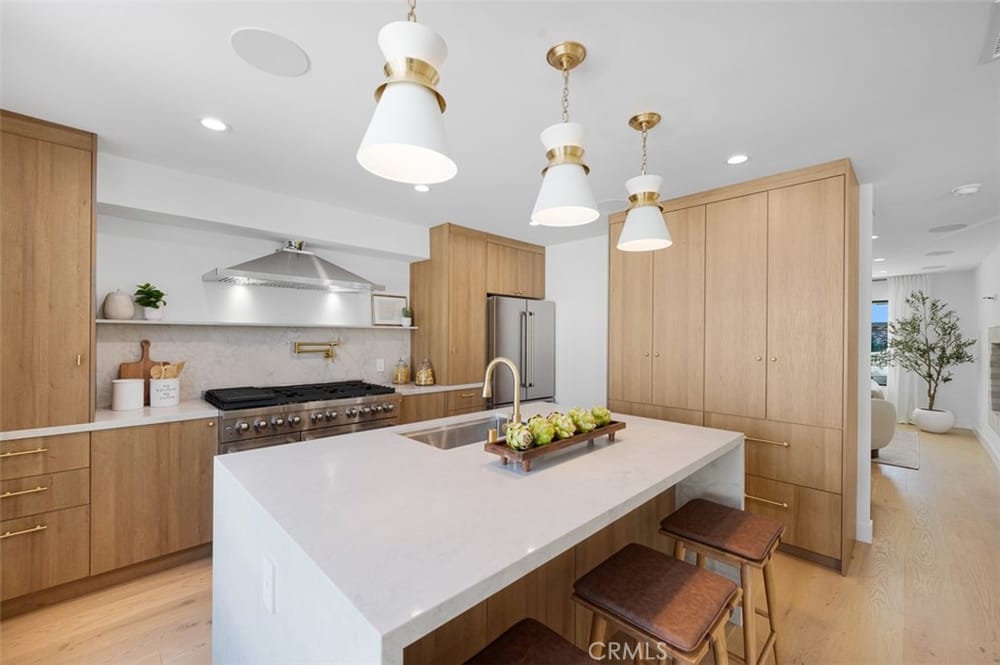 PRICE REDUCTION! Welcome to 418 E 16th Street! This extraordinary home is an absolute vibe! Completely rebuilt in 2024, 16th Street offers a perfect blend of modern luxury and functional design. The reimagined floor plan features four spacious bedrooms and three full bathrooms, along with a convenient powder room on the main floor that was added. Step inside to be greeted by stunning white oak flo...ors, setting the tone for the open, elegant layout that flows seamlessly from room to room.The floating staircase was reengineered leading to the heart of the home which is the breathtaking kitchen, designed for both everyday living and entertaining. Boasting top-of-the-line appliances, a Carrara marble island with a waterfall finish, custom solid oak cabinetry, signature hardware, this space is truly a chef's dream! French Custom Steel bi-fold doors open from the kitchen to a newly landscaped backyard.The spacious dining room and living areas are framed by high-end Milgard Trinsic windows and stylish steel French and Dutch doors, allowing natural light to pour in and capturing the essence of California's indoor-outdoor lifestyle. No expense was spared, with upgrades including a zoned heating and air conditioning system, surround sound speakers both inside and outside, a new roof, new plumbing, new electrical, and fresh new stucco. Situated in a prime location, this home is just minutes from the highly regarded Newport Harbor HS, as well as charming coffee shops, boutiques, and some of the finest dining experiences along 17th Street. The nearby beaches of Newport are a quick bike ride away, making this location ideal for those who love to enjoy the Southern California coastal lifestyle. Nestled in the award-winning Newport Mesa school district and bordering Newport from the street line. Don't miss the rare opportunity to own this one-of-a-kind gem in an unbeatable location!