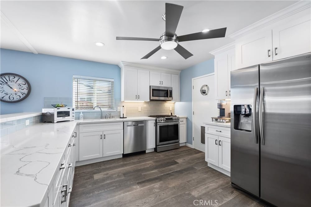 Dream Home Awaits!Step into this stunning 4-bedroom, 2-bathroom home where timeless elegance meets modern comfort. Rich wood flooring flows seamlessly throughout, leading you into a newly remodeled kitchen featuring sleek tile flooring, elegant quartz countertops, and modern cabinetry. Cozy up by the fireplace in the living room, or make use of the spacious laundry room, thoughtfully equipped with... a built-in folding table and plenty of storage space. Freshly painted interiors and beautifully remodeled bathrooms one with ceramic and one with stone flooring make this home truly move-in ready.Outdoor OasisThe backyard is a gardener's paradise! Wooden planters await your seasonal vegetables, a flourishing rose bush, mint, Swiss chard, broccoli, cauliflower, and blackberries bring a burst of freshness to the garden. Savor the fruits from your very own lemon and tangelo trees, and enjoy the convenience of a storage shed for all your outdoor needs.Community PerksLocated in proximity to a new park, Costco, the popular Fullerton Marketplace, and the 91-5 freeway. Enjoy access to Disneyland and Knott’s Berry Farm—perfect for fun days!Why Fullerton?Fullerton is celebrated for its vibrant community spirit, beautiful parks, and rich cultural heritage. Enjoy the charm, convenience, and endless entertainment options that this lovely city has to offer.Don’t miss this fantastic opportunity! Make this house your home today!