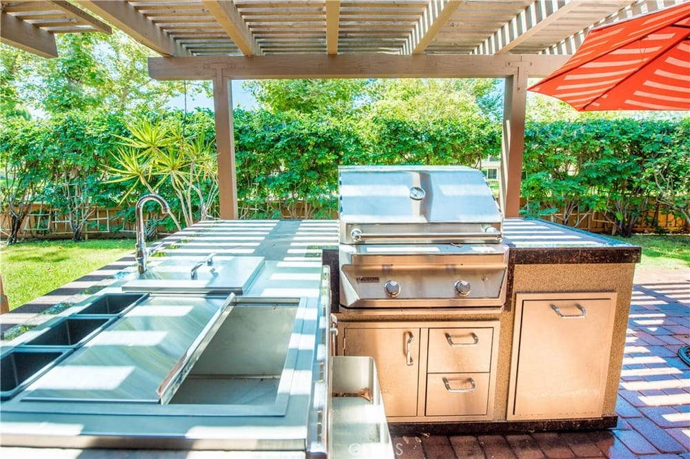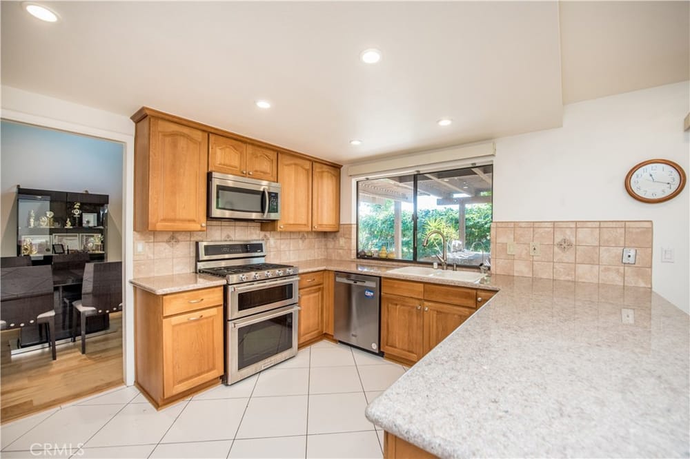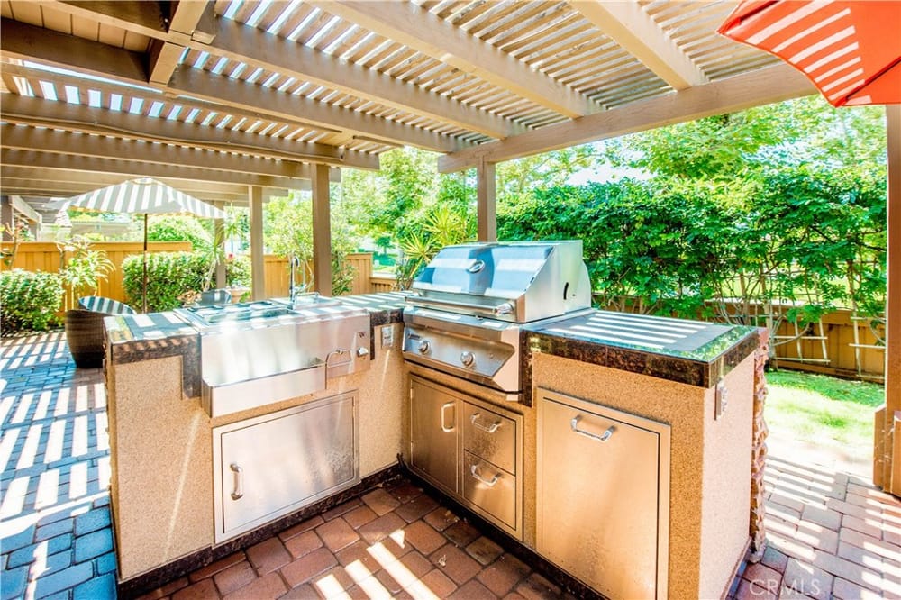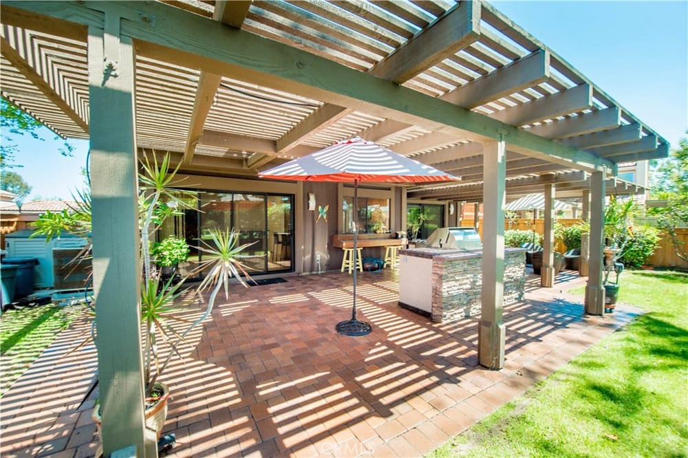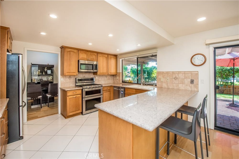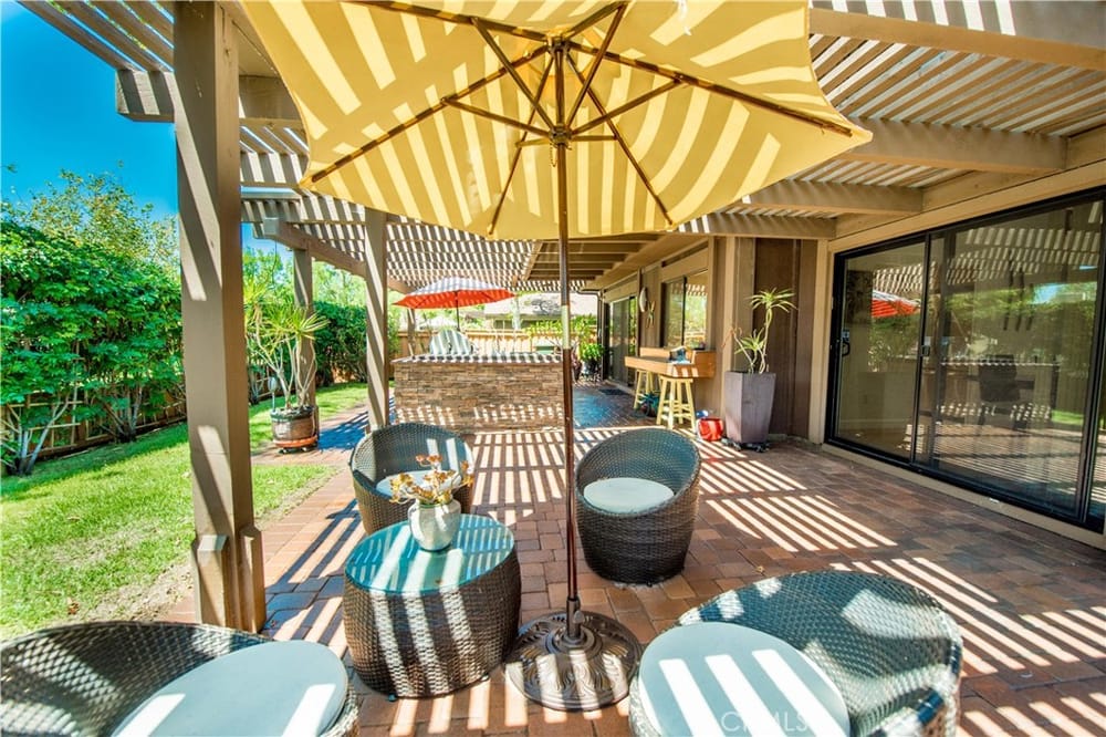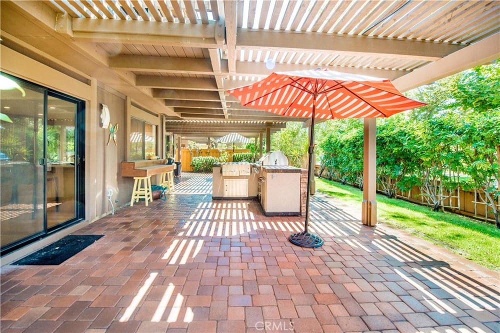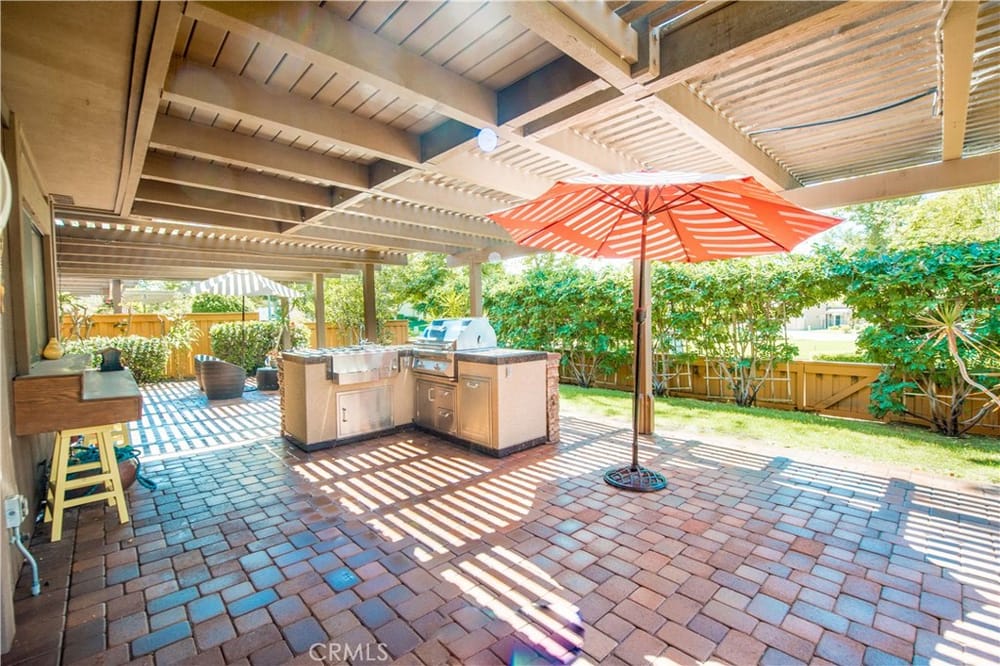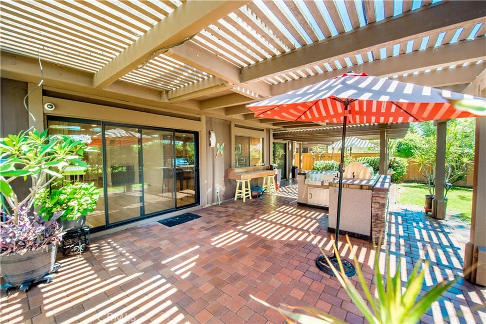 Welcome to your new oasis in Fullerton! Located in the exclusive, 24 hour guard-gated community of Fairway Village, this exquisite 4-bedroom, 3-bathroom home offers 2,373 sq ft of luxurious living space. Designed with both elegance and comfort in mind, this property is perfect for those seeking privacy and high-end amenities. Enjoy the peace and security of living in a tranquil and expertly maint...ained community loaded with HOA benefits and open space. The chef's kitchen has custom cabinets, granite countertops, and modern stainless steel appliances. Also on the first floor is a bedroom and full bathroom. The designer interior has light wood floors throughout, and the vaulted ceilings are enhanced by wood beams to create a warm and inviting atmosphere. All the bathrooms are upgraded with custom high-quality finishes. Retreat to the master suite highlighted by a floor to ceiling walk-in shower in designer dark stone. Also included is a sizable walk-in closet with cedar finishes. Enjoy access to HOA pools, tennis courts, spas, and a clubhouse. In the backyard, the entertaining area includes a cobblestone paver patio, lush tropical landscaping, and a custom barbecue island making this home the perfect setting to truly enjoy all the Southern California lifestyle has to offer. This private estate home offers exceptional privacy, showcased by an open greenbelt beyond the backyard. No neighbors to the rear or to the west. Don't miss the chance to own this exquisite home in one of the most sought-after Fullerton communities behind the gates of Fairway Village.