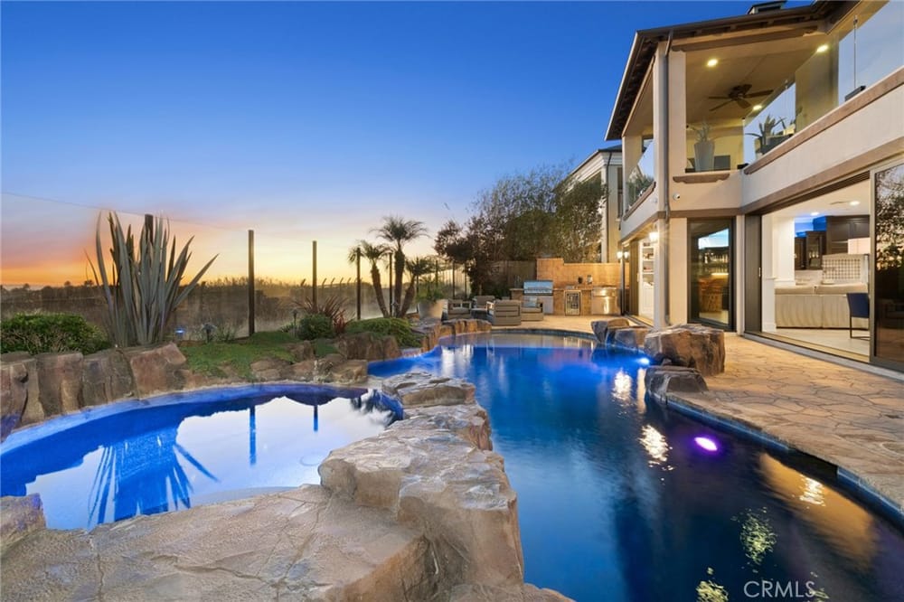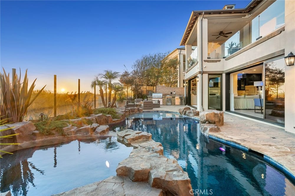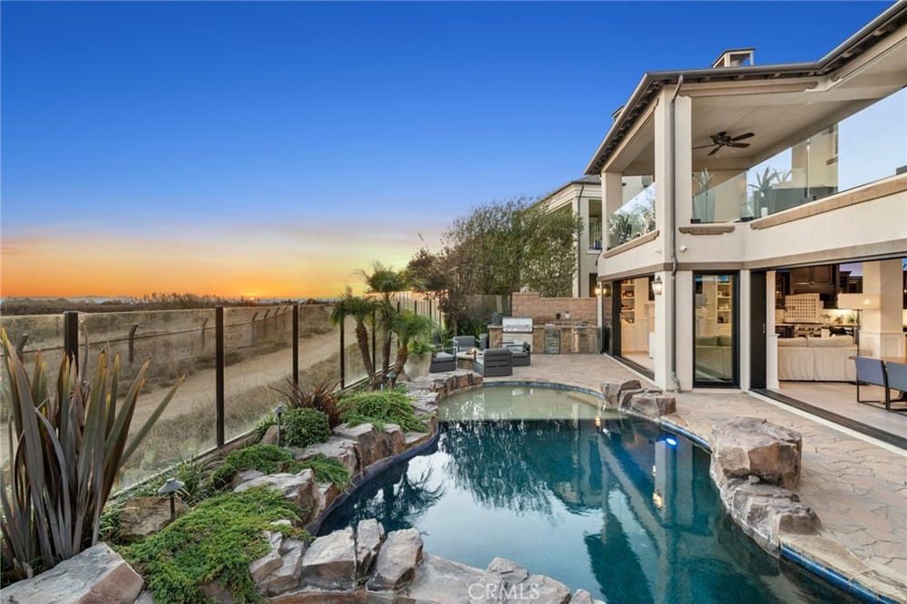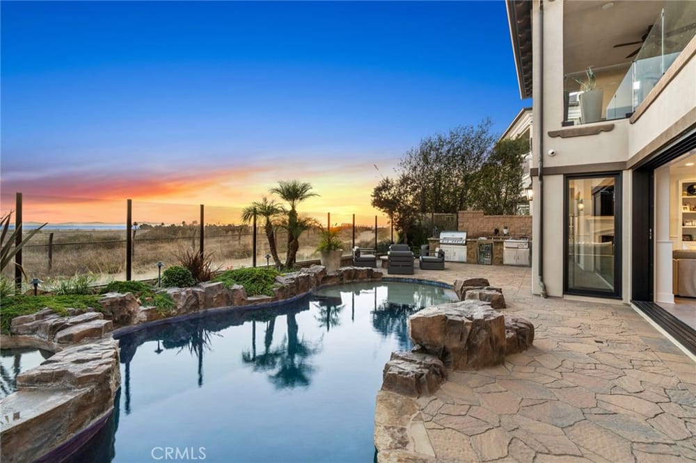 Discover this stunning Brightwater executive home, where upscale living meets beachside charm. This exceptional location offers direct ocean views and unparalleled access to the natural beauty of the Bolsa Chica wetlands. Imagine waking up to panoramic vistas of the Pacific Ocean and Catalina Island, with the soothing sounds of the waves just moments away. The serene atmosphere is perfect for rela...xation, while vibrant sunsets provide a breathtaking backdrop for your evenings.Step inside to find a thoughtfully designed four-bedroom home featuring modern finishes like beadboard walls, wainscoting, custom tile, and elegant wrought iron details. The open floor plan seamlessly connects to an expansive gourmet kitchen, ideal for hosting family and friends. Stacked sliding doors across the back of the home lead to a tranquil backyard retreat, blending indoor and outdoor living.The upstairs balcony lanai is a standout feature, offering unobstructed views of Catalina Island—an ideal spot to unwind with a book, watch. or enjoy a glass of wine as the sun sets over the horizon. Retreat to the luxurious master suite, with incredible ocean views, large walk-in builtnout closet and complete with a spa-like bathroom designed for ultimate relaxation. The versatile upstairs bonus/game room, featuring a full bath, can easily be converted into a fifth bedroom or serve as a spacious loft area. With over 4,400 square feet of beautifully designed interior space and abundant natural light, this residence is truly move-in ready. This thoughtfully expanded 4 bedroom home creates an inviting great room with large glass sliding walls, providing unobstructed views and easy access to a customized saltwater pool, spa, and waterfall. The outdoor kitchen and fire pit are ideal for entertaining, while taking a dip or relaxing in your spa. Additional features include an elegant wine enclave with a 180-bottle capacity, a professional-grade kitchen with top-tier appliances, and a butler’s pantry connecting seamlessly to the formal dining area. Ocean-facing bedrooms come with expansive custom decks, while the home boasts unique lighting fixtures, multiple fireplaces, and more. This is a rare opportunity to own a meticulously designed coastal residence in an enviable location, perfectly positioned to enjoy the best of beachside living.