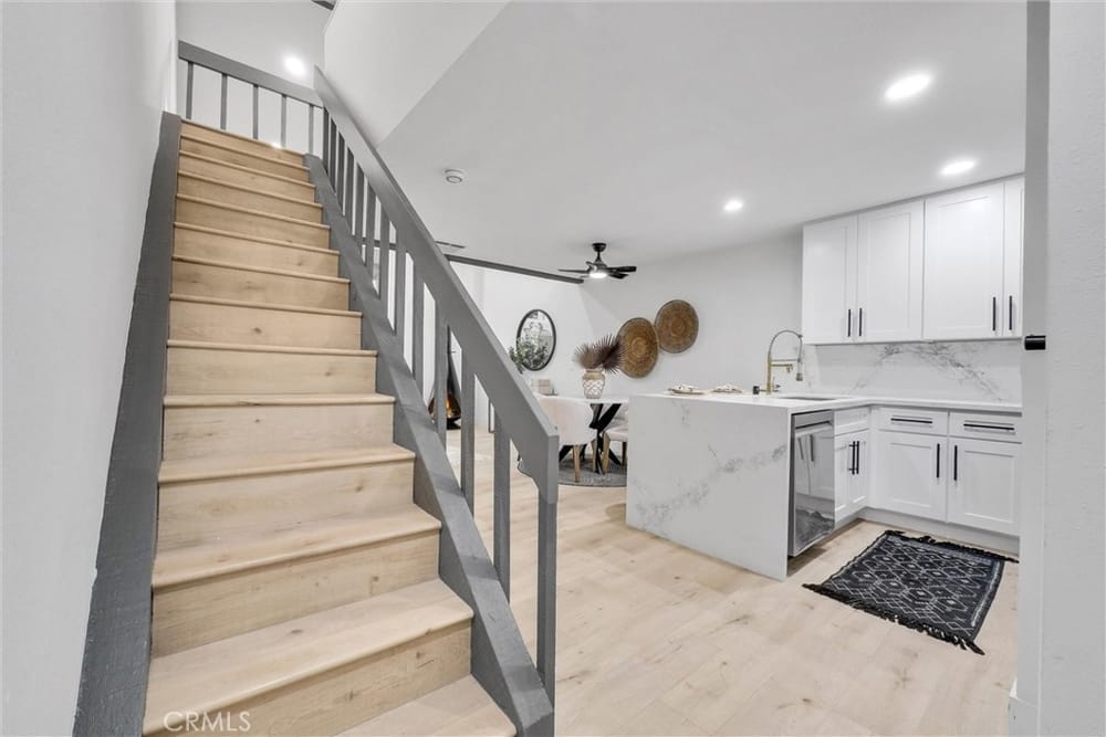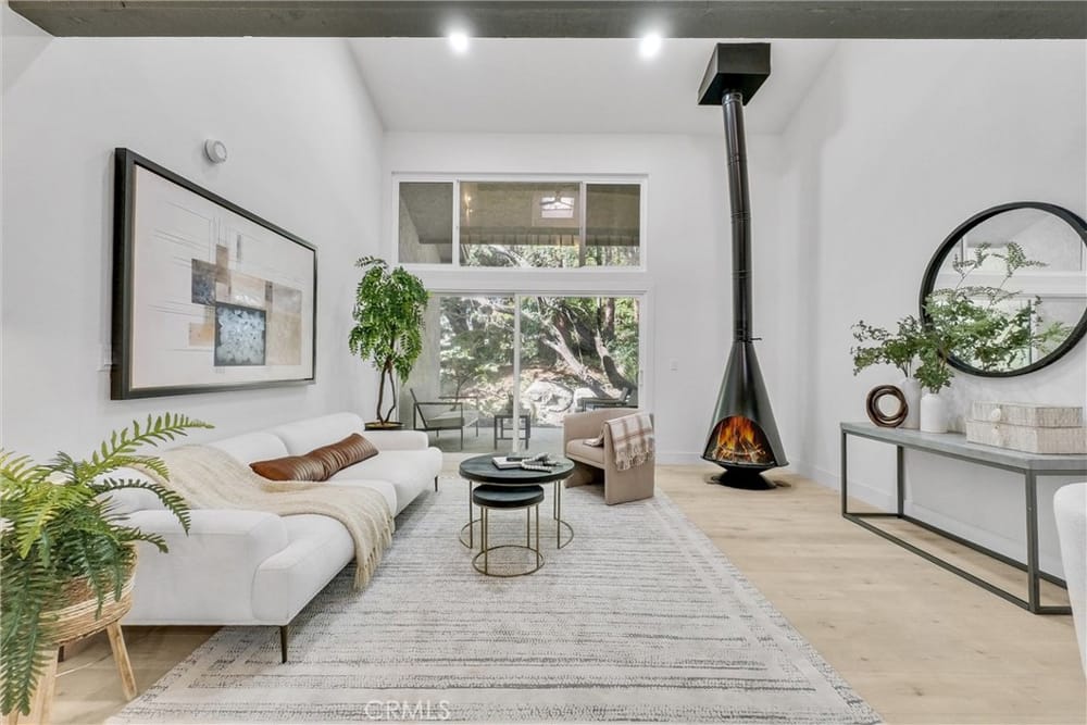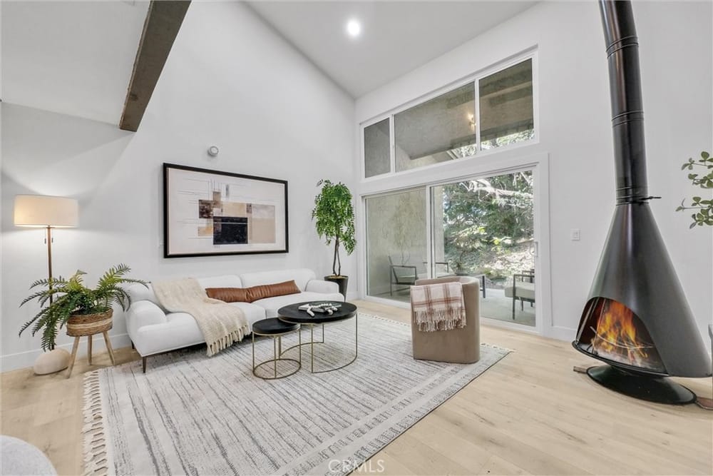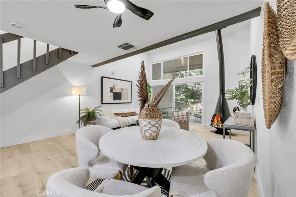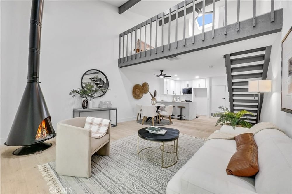 Discover your urban oasis at 4900 E Chapman Ave #80 in Orange, CA. This newly listed townhouse is a perfect blend of modern comfort and tranquil living. With 768 square feet of thoughtfully designed space, this 1-bedroom, 1-bathroom home offers an ideal retreat for singles, couples, or those seeking a cozy pied-à-terre.Step inside to find a beautifully remodeled interior that showcases attention t...o detail and quality finishes. The kitchen boasts sleek quartz countertops and backsplash, complemented by crisp white shaker cabinets and gleaming stainless steel appliances. Durable laminate flooring flows throughout, providing both style and easy maintenance.The living area features a freestanding gas fireplace, creating a warm and inviting atmosphere for relaxation or entertaining. Ascend to the second floor to find a spacious bedroom with a generous walk-in closet. The en suite bathroom is a spa-like retreat, complete with a quartz shower surround and a modern floating vanity.Natural light floods the space through dual-pane windows and skylights, while recessed lighting adds a touch of sophistication. Stay comfortable year-round with the new central air and heating system.Step outside to your private patio, where the soothing sounds of a nearby stream create a peaceful ambiance. The Orange Lakes community offers a serene setting, perfect for unwinding after a long day.Conveniently located, this property is just a short distance from El Modena High School, Grijalva Park, and various transportation options. With assigned parking and proximity to local amenities, this townhouse offers the perfect balance of comfort and convenience. Don't miss this opportunity to make this newly remodeled gem your home sweet home.