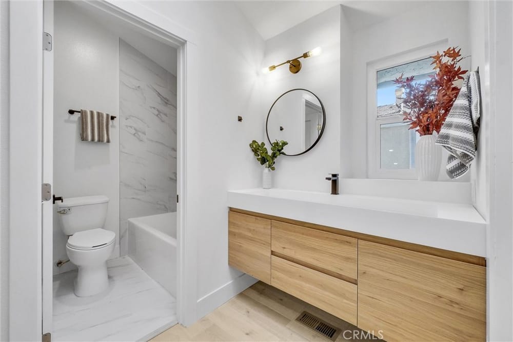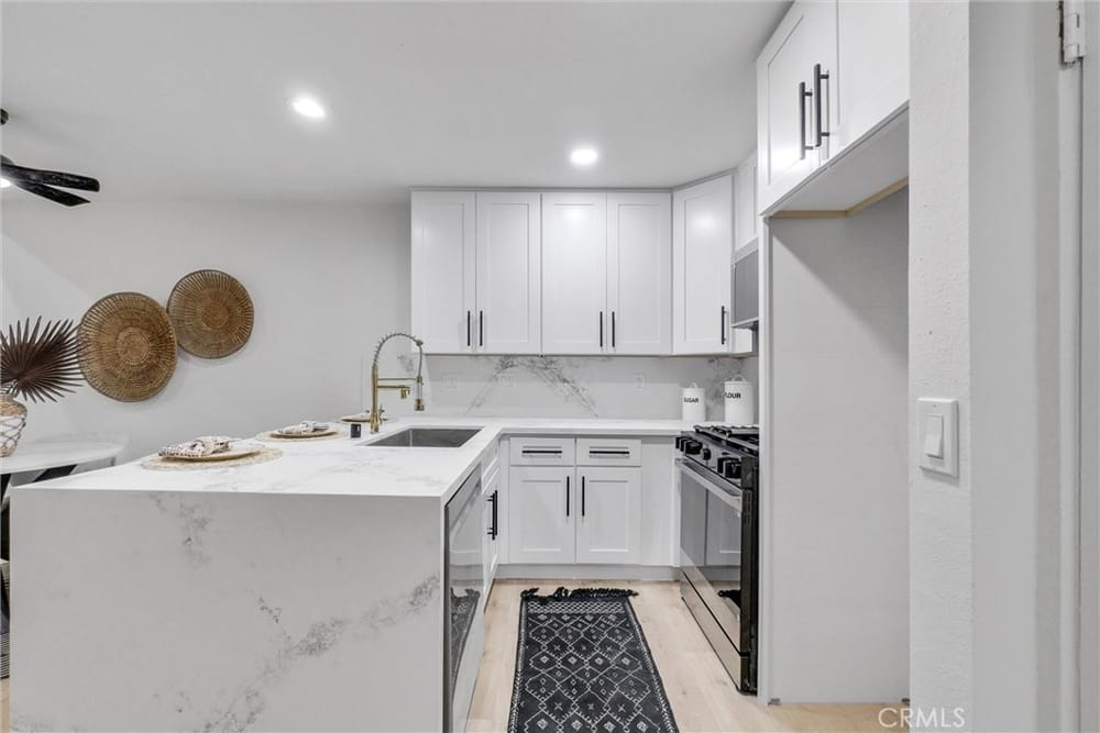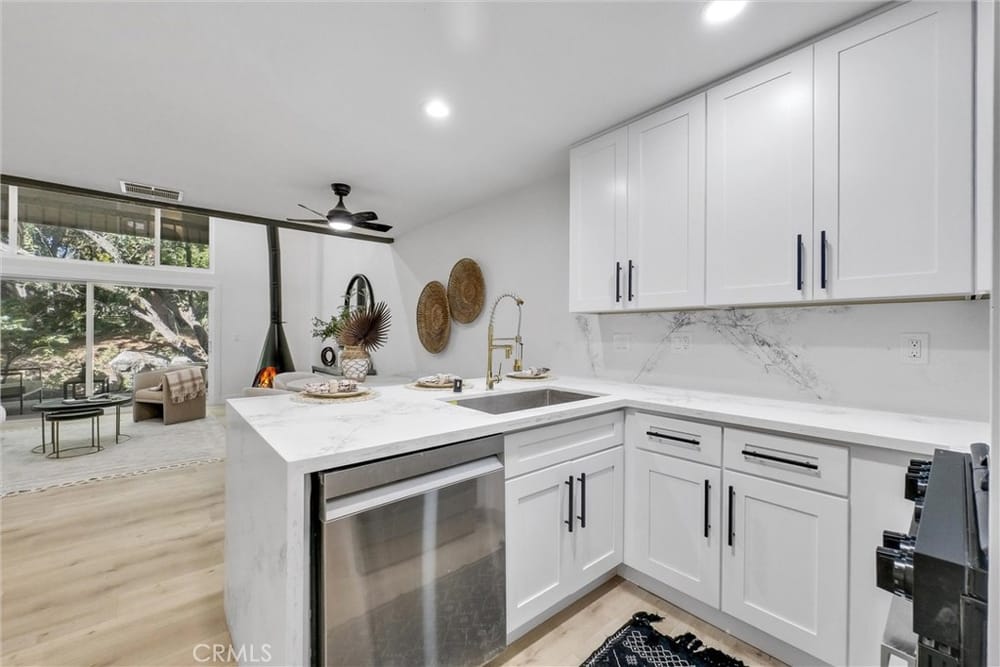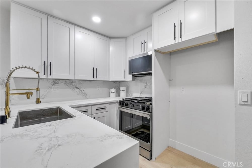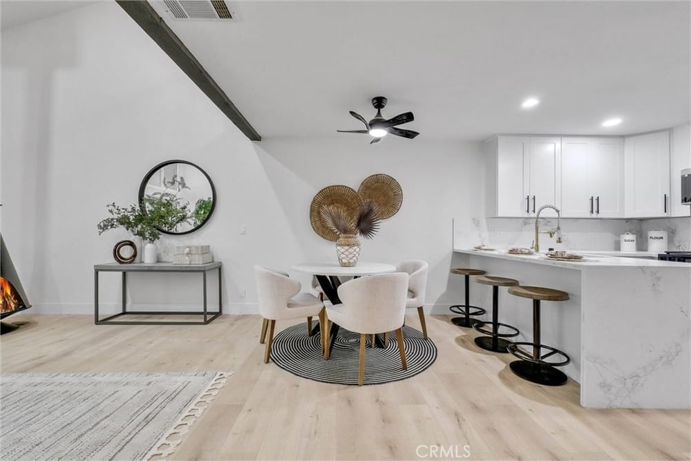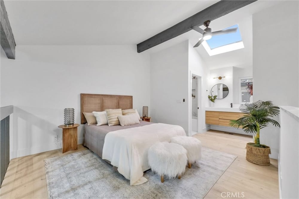 Discover your urban oasis at 4900 E Chapman Ave #80 in Orange, CA. This newly listed townhouse is a perfect blend of modern comfort and tranquil living. With 768 square feet of thoughtfully designed space, this 1-bedroom, 1-bathroom home offers an ideal retreat for singles, couples, or those seeking a cozy pied-à-terre.Step inside to find a beautifully remodeled interior that showcases attention t...o detail and quality finishes. The kitchen boasts sleek quartz countertops and backsplash, complemented by crisp white shaker cabinets and gleaming stainless steel appliances. Durable laminate flooring flows throughout, providing both style and easy maintenance.The living area features a freestanding gas fireplace, creating a warm and inviting atmosphere for relaxation or entertaining. Ascend to the second floor to find a spacious bedroom with a generous walk-in closet. The en suite bathroom is a spa-like retreat, complete with a quartz shower surround and a modern floating vanity.Natural light floods the space through dual-pane windows and skylights, while recessed lighting adds a touch of sophistication. Stay comfortable year-round with the new central air and heating system.Step outside to your private patio, where the soothing sounds of a nearby stream create a peaceful ambiance. The Orange Lakes community offers a serene setting, perfect for unwinding after a long day.Conveniently located, this property is just a short distance from El Modena High School, Grijalva Park, and various transportation options. With assigned parking and proximity to local amenities, this townhouse offers the perfect balance of comfort and convenience. Don't miss this opportunity to make this newly remodeled gem your home sweet home.