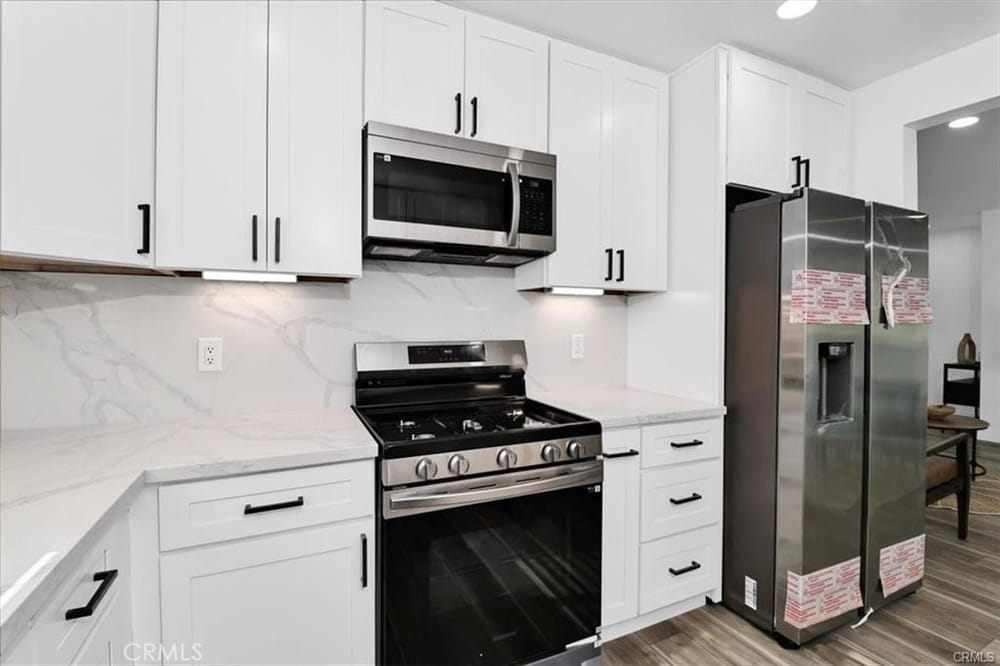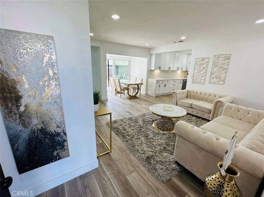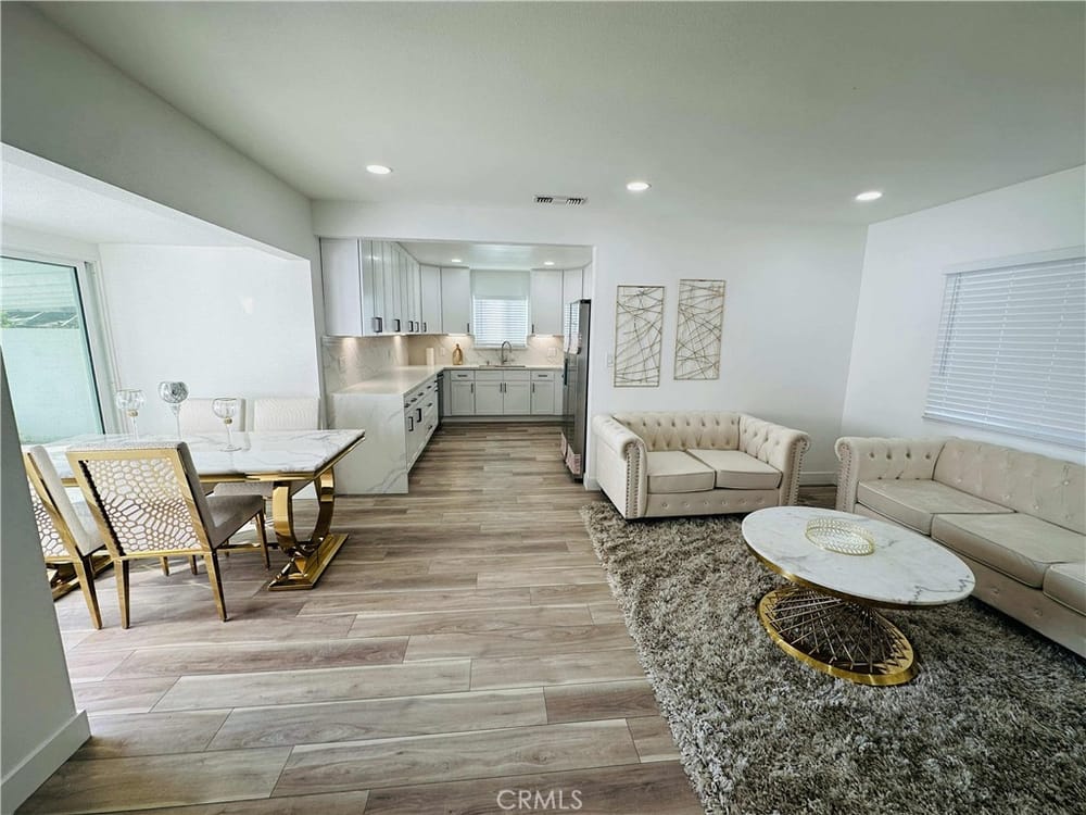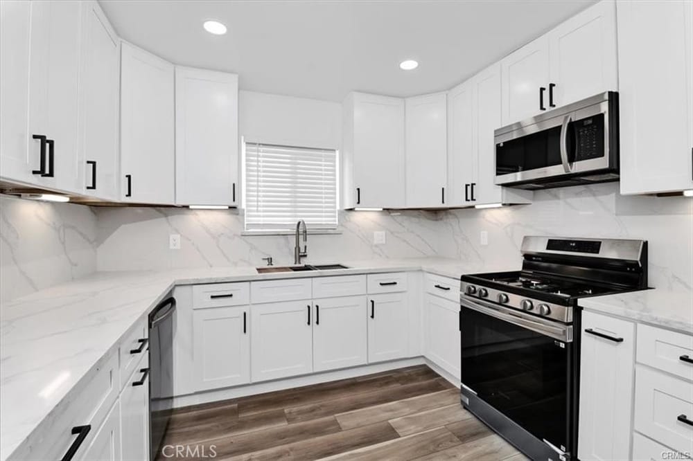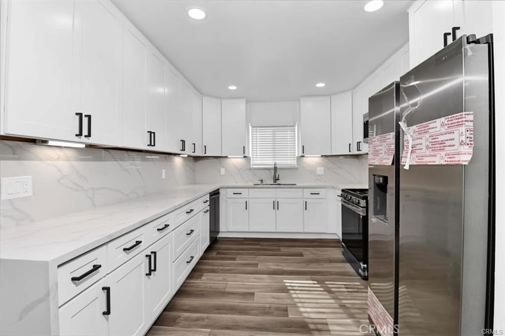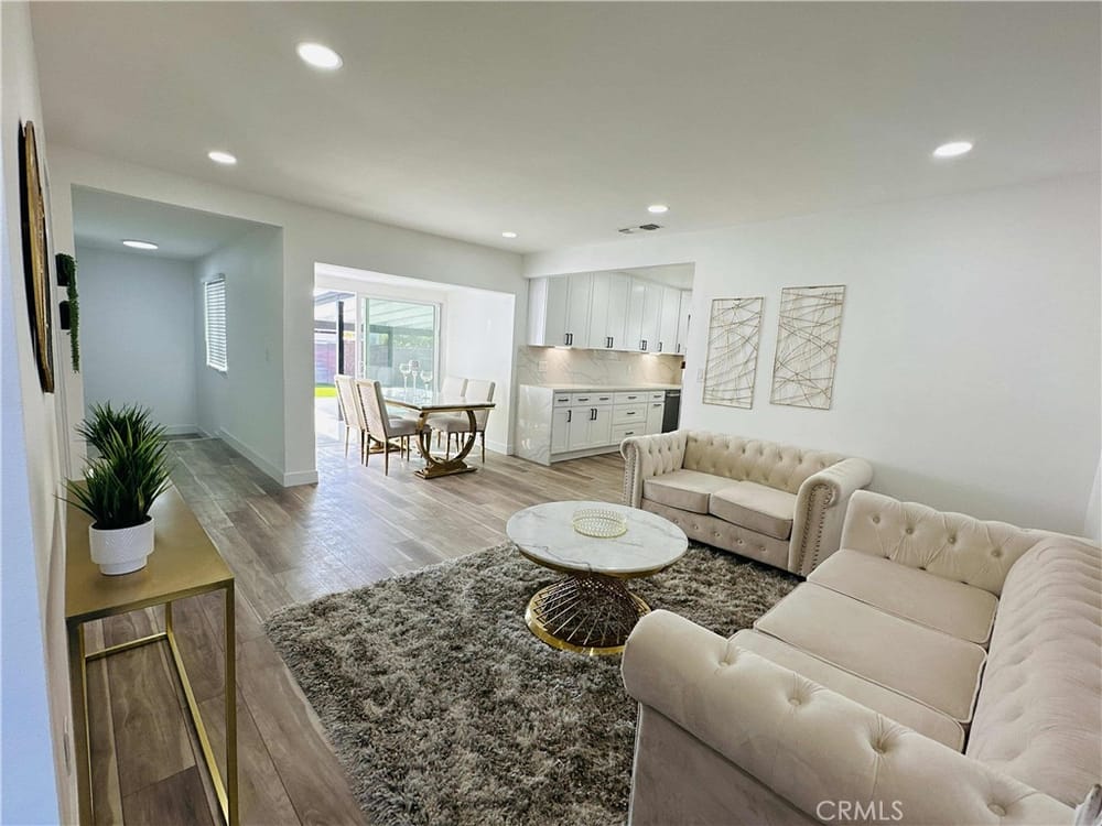 LOCATION, LOCATION, LOCATION, One minute from all shopping centers, Welcome to this beautiful single-story, this grand contemporary villa boasts 4 bedrooms and 2 bathrooms, illuminated by natural light that flows throughout the home, accentuating the handsome hardwood floors. The kitchen, fully remodeled, boasts an abundance of cabinets, solid surface countertops, and perfect lighting, combining r...ecessed and pendant fixtures, custom cabinetry, and all-new stainless steel professional appliances. The living and family rooms, along with the lounge areas, offer an open floor plan ideal for indoor and outdoor entertaining. Step into your personal oasis in the vast private backyard with a covered patio. Imagine creating your dream garden, installing a pool, or even adding an ADU, the possibilities are endless. This desirable location is on one of the best streets and blocks, just minutes away from Disney land, restaurants & shopping centers. Other highlights include a laundry room, large three-car garage, one of which is attached, enhancing the home's excellent flow for entertaining. Close to the 5, 91, 57, and 22 freeways