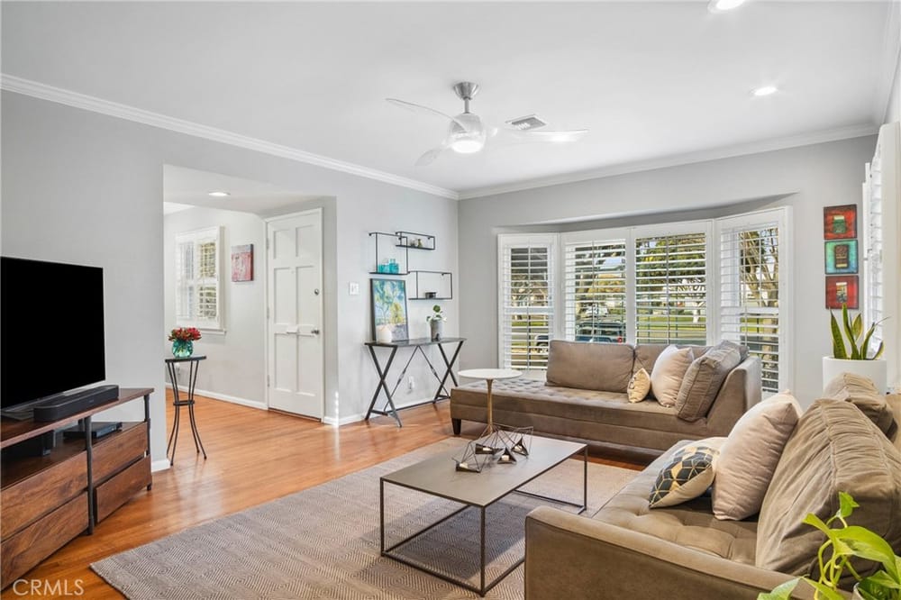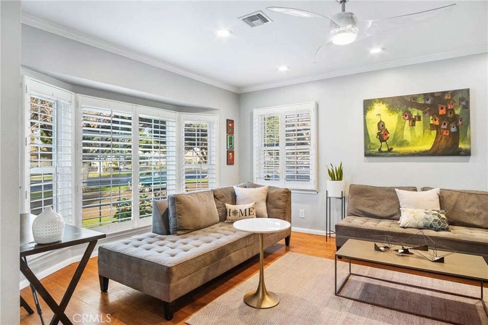 Come and see this beautiful family home in an amazing neighborhood! This property has not been on the market since 2003...so now is your chance! Property shows as a 3 bedroom, 2 bath. The front yard has a gently sloping yard with lush green grass, cute bay window with planter and brick steps to the front door, and fresh paint. The driveway takes you from the street to the back yard with a 2-car ga...rage. Long enough for your extra cars and possibly wide enough for your boat or RV! The home boasts the original hardwood floors of oak that is hard to find anymore! Sand it down and stain it to your liking! Inside you'll discover newer paint, crown moulding, smooth ceilings, newer windows with custom shutters, canned lights, ceiling fans and baseboards throughout. The home also has central heat and air as well as a whole house fan! The kitchen and both bathrooms have been remodeled, and the appliances are included! There is a quaint dining area as well as a bar space for casual eating. The laundry room is off the kitchen with plenty of storage space. There is an extra bright, sunny room with sliding glass doors that lead to the back yard. This room is not included in the square footage and would be great for an at-home office or kids' playroom! The back yard is a virtual entertainers dream! Plenty of newer concrete, awesome tiled step-up outdoor dining area with wood awning, outdoor barbeque that has a propane 2 burner cooktop, 2 storage drawers and prep bucket, and includes space for stools. Thers is an area of artificial grass, tiled space with another seating area, block wall fencing on 3 sides and a storage shed. Get yourself a new home for Christmas!