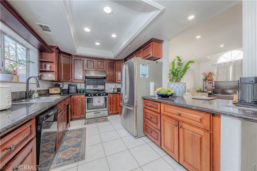 Discover the perfect blend of comfort and convenience in this 4-bedroom, 3-bathroom end unit home that lives like a detached single-family residence. As you enter, you're greeted by a spacious living room adorned with neutral tones and soaring cathedral ceilings, complemented by durable laminate flooring throughout. The kitchen is a dream for any chef, featuring generous countertop space and cabin...ets, making it an ideal hub for meal preparation and entertaining friends, complete with a convenient serve-over bar. On the main level, a bedroom and full bathroom provide added versatility for guests or family members. Upstairs, you will find three additional bedrooms and two more full bathrooms, ensuring ample space for everyone. Step outside to the inviting backyard, perfect for gatherings, with a covered wrap around patio and additional spaces for cultivating your own garden or personal sanctuary. Enjoy the bounty of nature with your own fruit trees, including persimmons, avocados, longan, and jujube. Location is key, and this home does not disappoint. With St. Barbara Church and La Quinta High School just a short walk away, along with excellent dining and shopping options at your fingertips, you will love the lifestyle this home offers. Don’t miss the opportunity to make it yours!