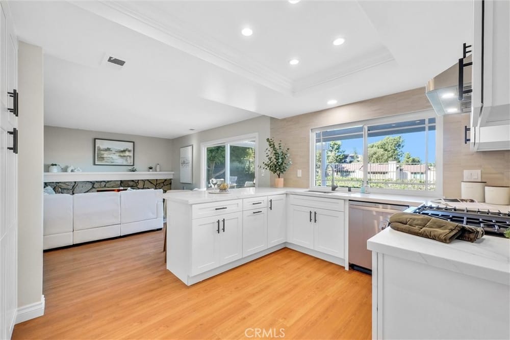 Stunning 4-bedroom home nestled in the prestigious neighborhood of Anaheim Hills. This spacious two-story residence offers everything you need for an elevated lifestyle, from expansive mountain views to luxurious upgrades throughout. Step inside the double-door entry to discover vaulted ceilings in the formal living room, where an elegant, modern staircase sets the tone. The brand-new kitchen is a... chef's dream, complete with a stylish eat-in peninsula, gorgeous quartz countertops, a porcelain backsplash, and brand new stainless steel appliances. Modern shaker cabinets with black fixtures add sophistication, providing ample storage and function. Adjacent, the formal dining room welcomes abundant natural light and picturesque backyard views, while the spacious family room invites relaxation with a grand fireplace—perfect for gatherings. Upstairs, you’ll find all bedrooms, including a large primary suite featuring a travertine standing shower, dual vanities, and a walk-in closet. Three additional bedrooms offer cozy carpet, with one room featuring high ceilings and extra space, ideal for flexible use. The backyard is a private oasis, offering a large, covered wood patio with no rear neighbors, just serene mountain and neighborhood views. Additional highlights include laminate flooring, fresh interior paint, recessed lighting, a three-car garage, central AC, and energy-efficient dual-pane windows. Low quarterly HOA fees include maintanance grounds in the neighborhood. Walking distance to award winning Canyon High School (rated 9), and a quick drive to grocery stores, restaurants, and the 91 Freeway. Property is also located near Pelanconi Park, a 27-acre park with beautiful trails and streams.