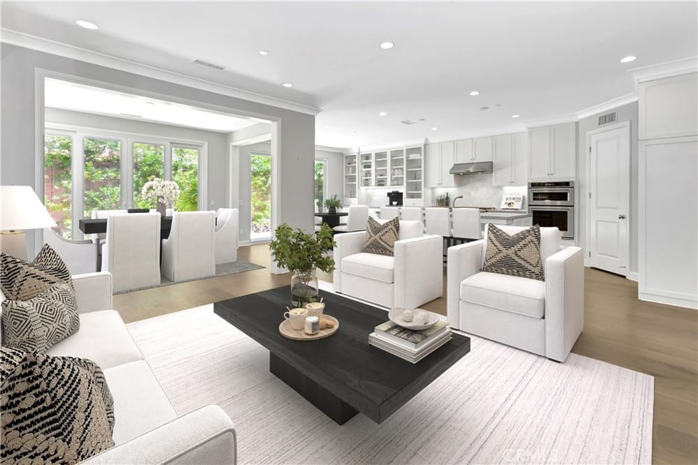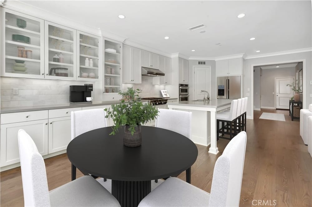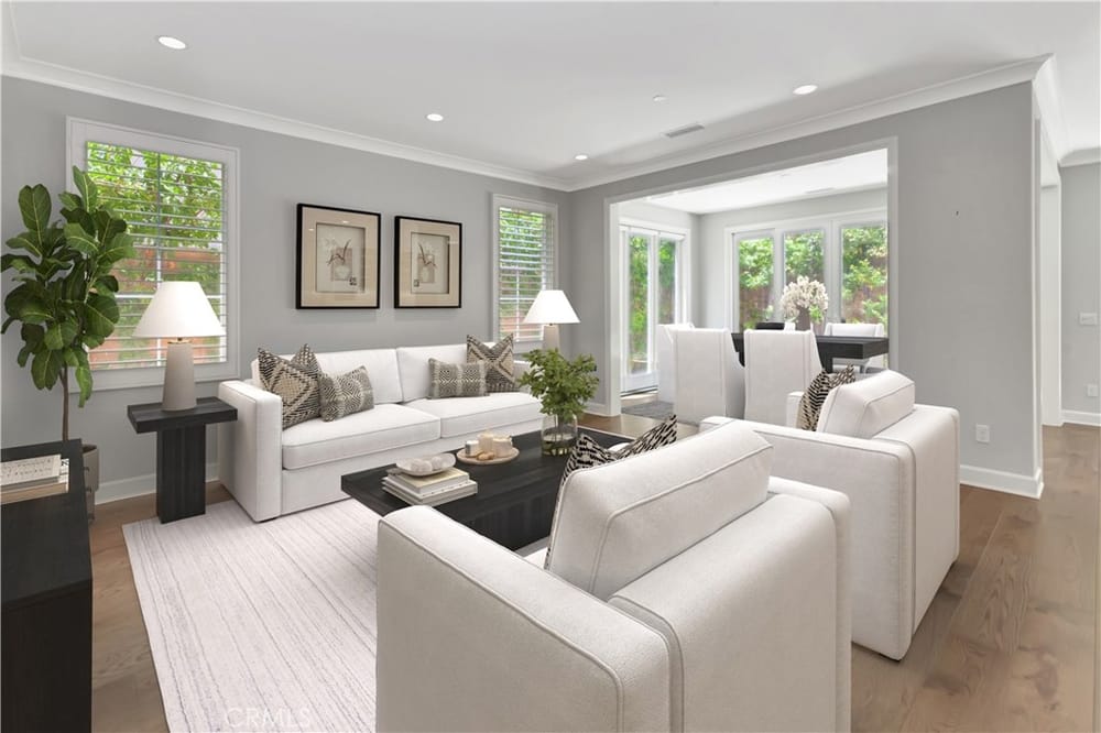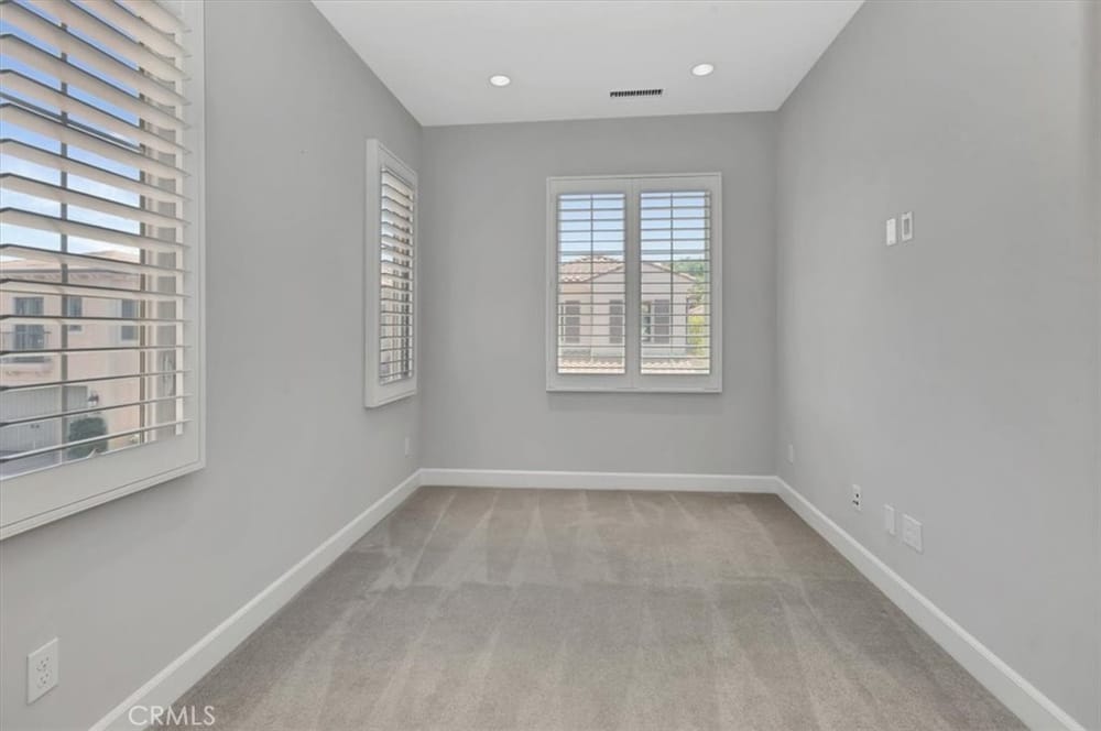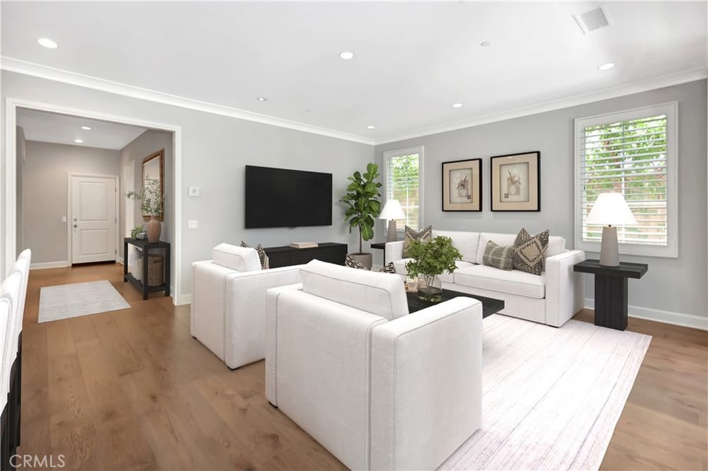Experience the pinnacle of elegance and comfort in this fully upgraded turnkey home, located in the prestigious Orchard Hills community. This rare floor plan creates an unparalleled living experience. Enter through a secure door into a charming courtyard that opens to a spacious great room, kitchen, and dining area, fully upgraded with hardwood floors, crown molding, custom automated roll-down sha...des, and designer finishes. The main floor boasts a sought-after bedroom with a stunning full bath. The second floor offers a loft, a master suite with a tray ceiling, dual vanities, a soaking tub, a separate frameless glass shower, upgraded countertops, backsplash, tile, and an oversized walk-in closet. Two additional bedrooms with ensuite bathrooms, a den, abundant storage, and a laundry room complete the upper level. The open-concept kitchen features a custom upgraded center island, quartz countertops, upgraded stone tile backsplash, custom white cabinetry with built-ins, a spacious walk-in pantry, and a 6-burner commercial-grade KitchenAid stove and oven, making this kitchen a chef's delight. Sliding doors open to the designer limestone patio. Additional upgrades include a soft water system, purified water system, and an energy-efficient hot water circulator. Enjoy the attached 2-car garage with an extra storage area, in addition to ample guest parking. The property is located within an award-winning, highly distinguished school district. Neighborhood amenities include parks, resort-style swimming pools, spas, barbecue areas, tennis and basketball courts. Conveniently located near Irvine Spectrum, South Coast Plaza, UCI, Orange County Airport, and Laguna Beach, with easy access to the 5, 405, 133, and 241 freeways. Priced to sell.