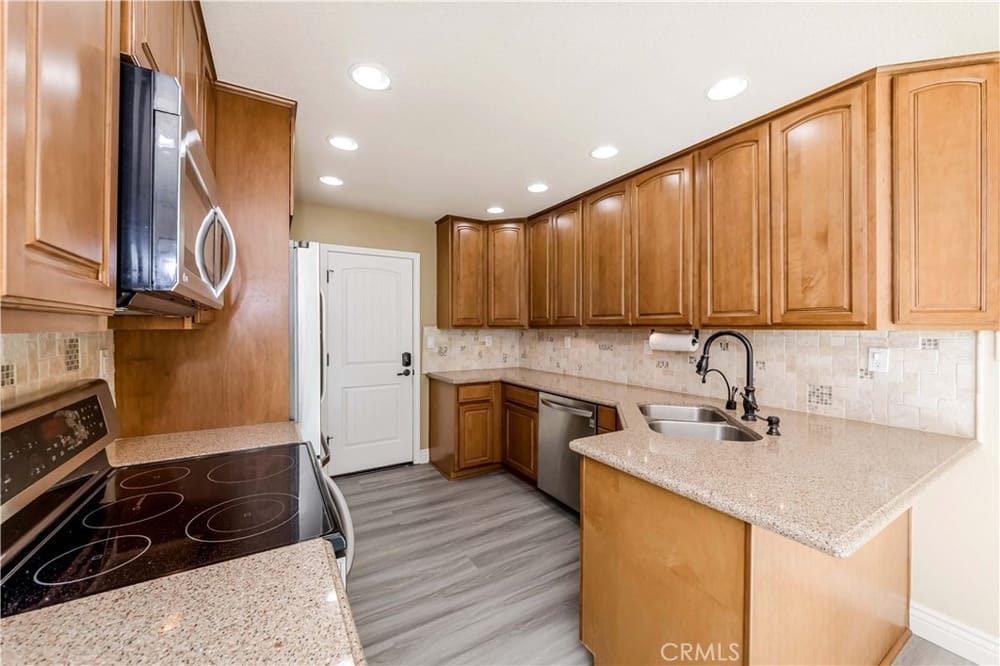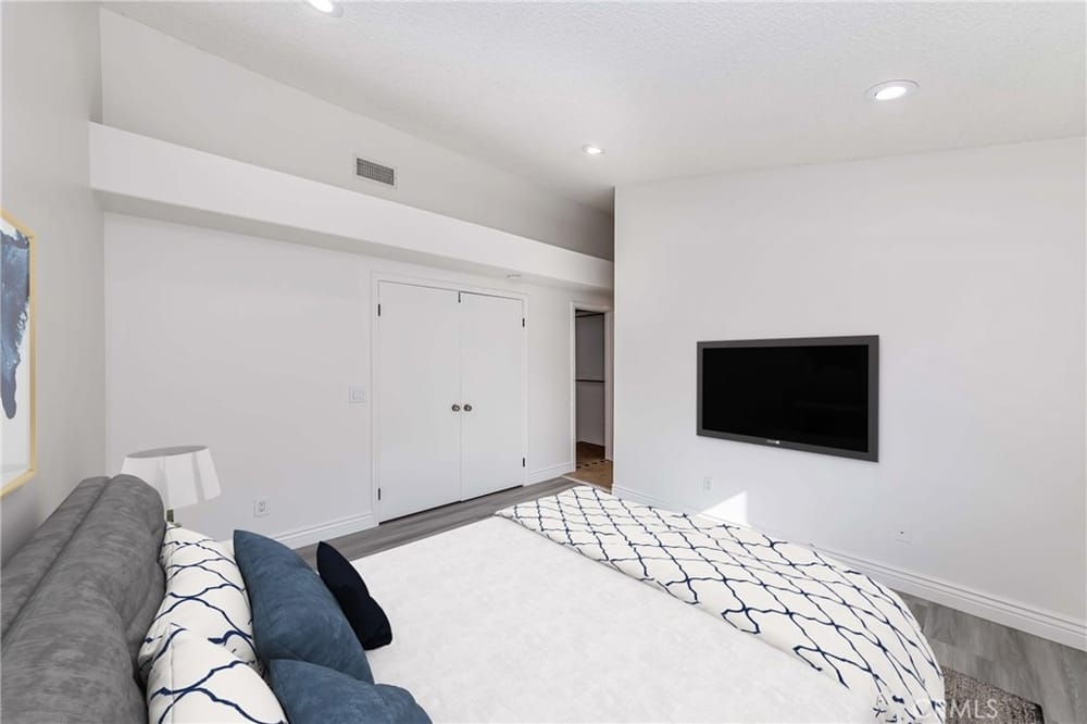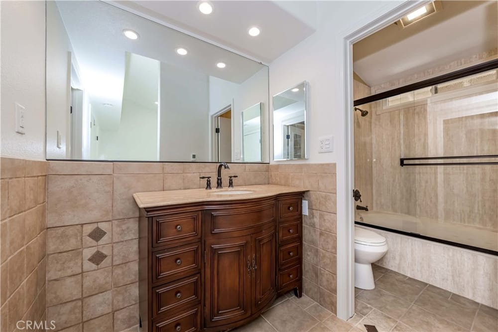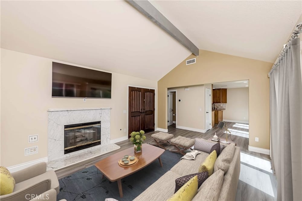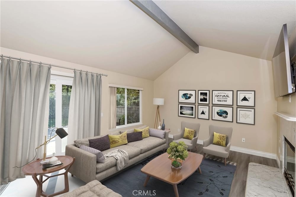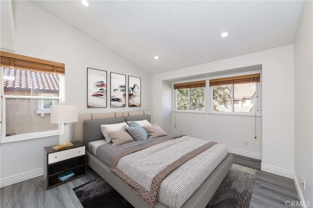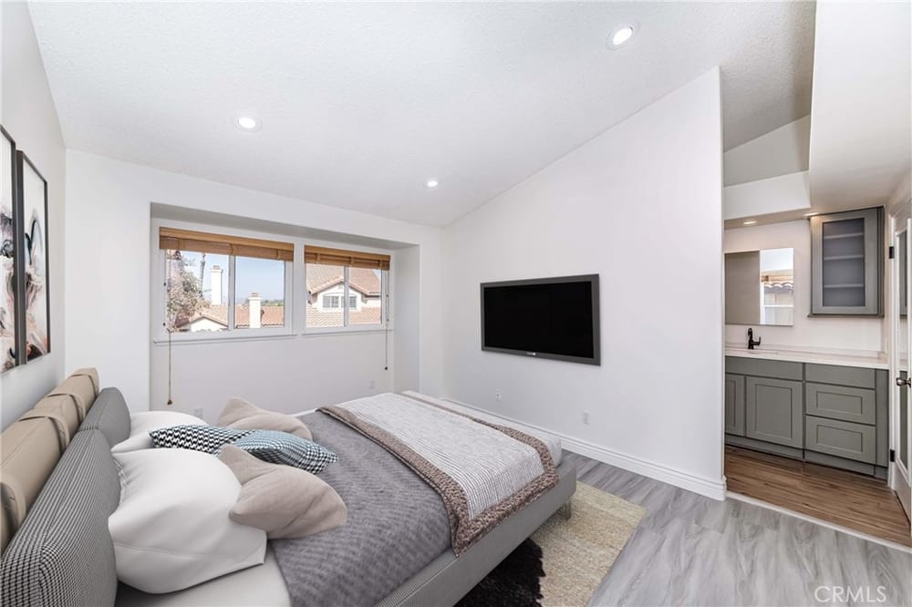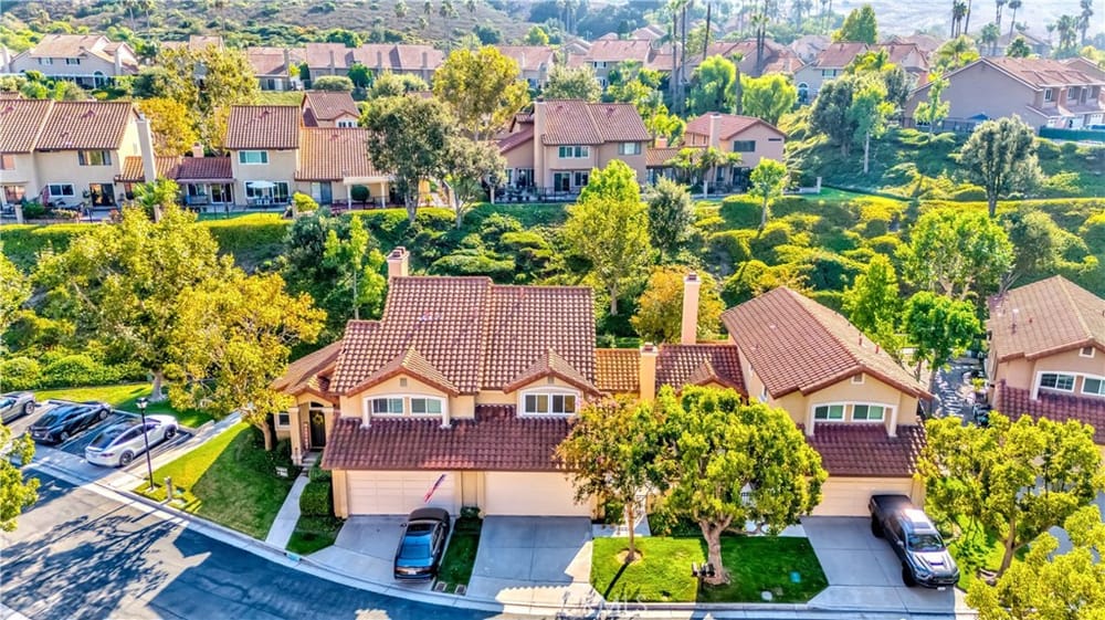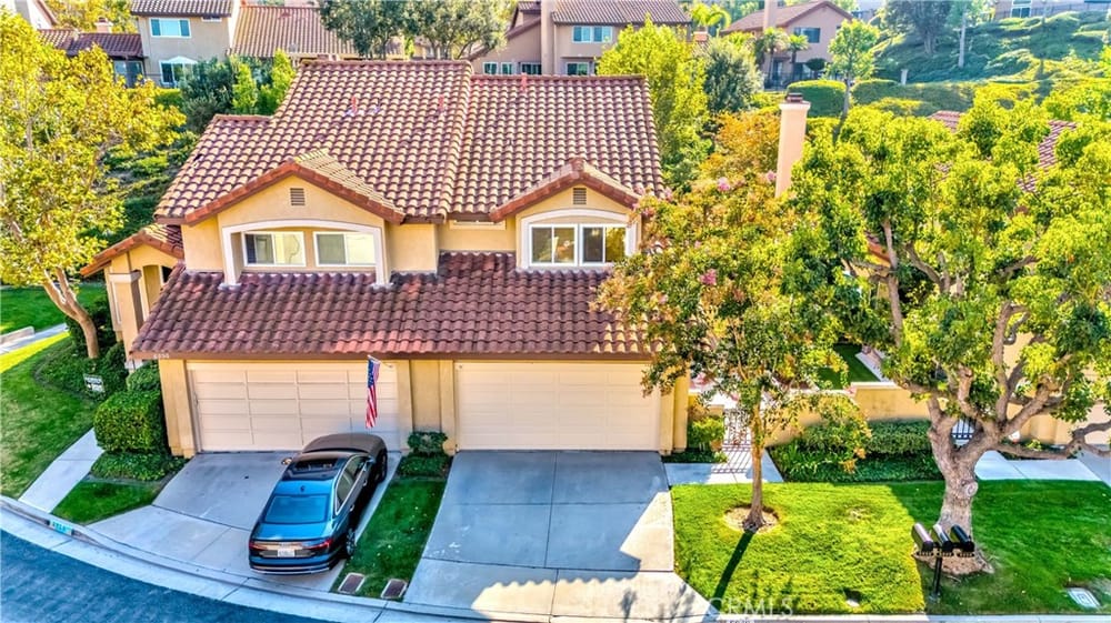 Welcome Home to 6040 E Ladera Lane in Anaheim Hills! This stunning residence is situated in a highly sought-after cul-de-sac within the desirable Camino Grande community. Boasting a well-designed 2-bedroom, 2.5-bath floor plan w/ approximately 1,303 sq ft of spacious living, this home truly has it all. As you approach, you’ll be greeted by an inviting front porch. Enter through the elegant double ...doors into a generous open floor plan featuring soaring vaulted ceilings, exquisite new laminate flooring w/ wide baseboards, recessed LED lighting, & an abundance of natural light. The expansive living room is enhanced by a cozy marble fireplace & a custom audio outlet for your entertainment system. Sliding doors provide seamless access to the beautifully landscaped, drought-resistant yard, offering serene views of the lush hills. The remodeled chef's kitchen is a highlight, featuring granite countertops, a designer backsplash, custom cabinetry w/ accent underlighting, upgraded electrical outlets w/ USB ports, high-end appliances, & a breakfast bar. The kitchen flows effortlessly into the formal dining area & family room, also equipped w/ sliding doors that lead to the stunning backyard, perfect for indoor/outdoor entertaining. On the main level, you’ll find a convenient half bath for guests. Ascend to the upper level, where you’ll discover the expansive master suite, complete w/ a vaulted ceiling, an additional accent shelf w/ a private outlet, a walk-in closet, & a fully remodeled en-suite bath featuring heated flooring. Additionally, there is a secondary primary suite that boasts a vaulted ceiling, walk-in closet, & a fully remodeled en-suite bath. The home includes a two-car garage w/ direct access & laundry hookups. The spacious backyard provides tranquil views of the hills, creating a serene environment for relaxation & gatherings—watch for the occasional deer visit! In spring & summer, the hill blooms w/ vibrant flowers. Bonus features include: new interior paint, new flooring, LED recessed lighting, remodeled kitchen & bathrooms, upgraded outlets, dual-pane windows, new blinds, & so much more. Centrally located near excellent schools, shopping, dining, parks, entertainment options, Anaheim Hills Golf Course, a fire station, & easy access to the 91 Freeway. The HOA covers roof maintenance, exterior painting, ample guest parking, & beautifully maintained greenbelts. Don’t miss this once-in-a-lifetime opportunity!