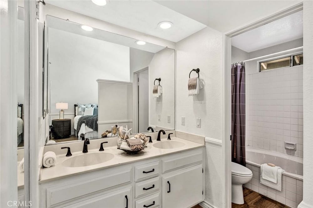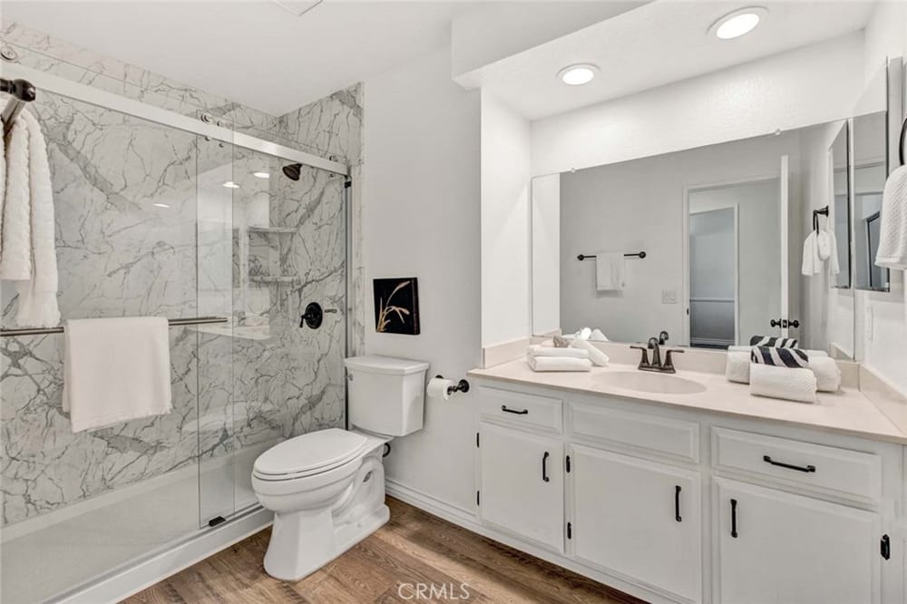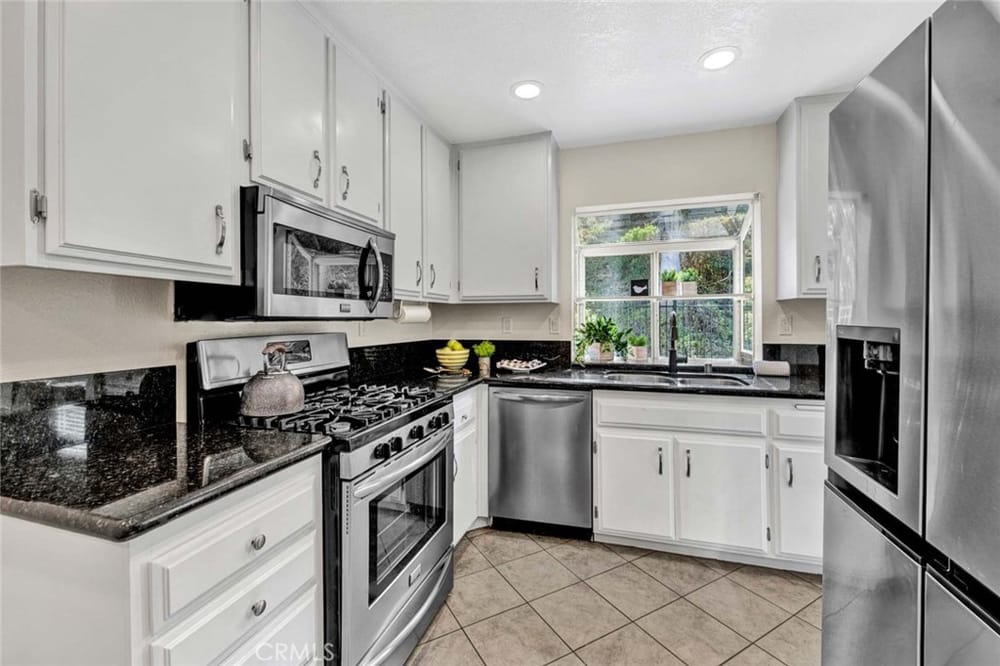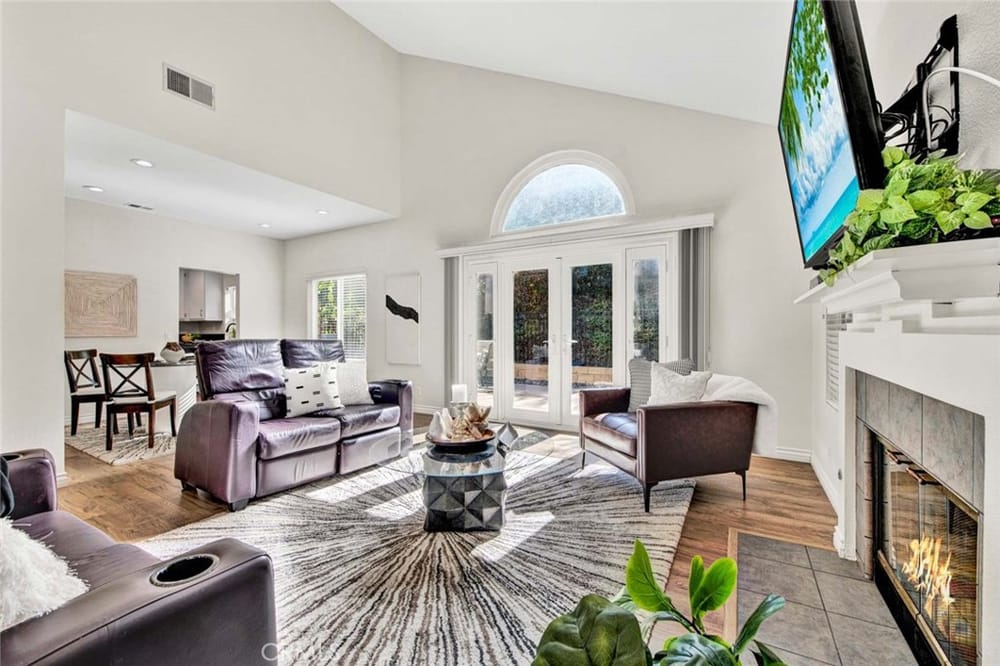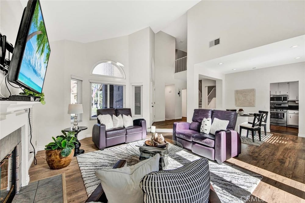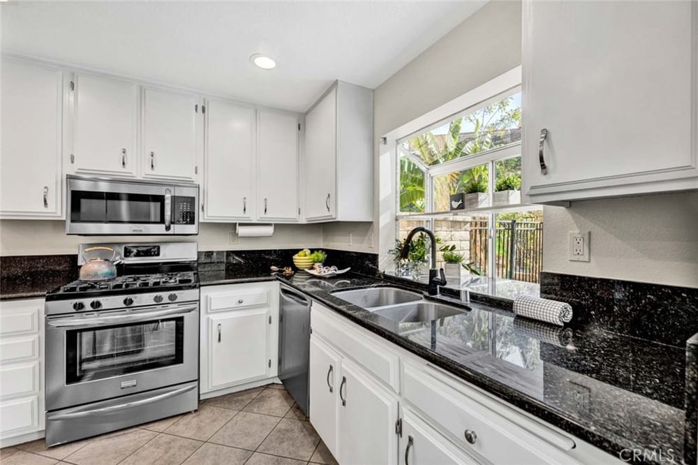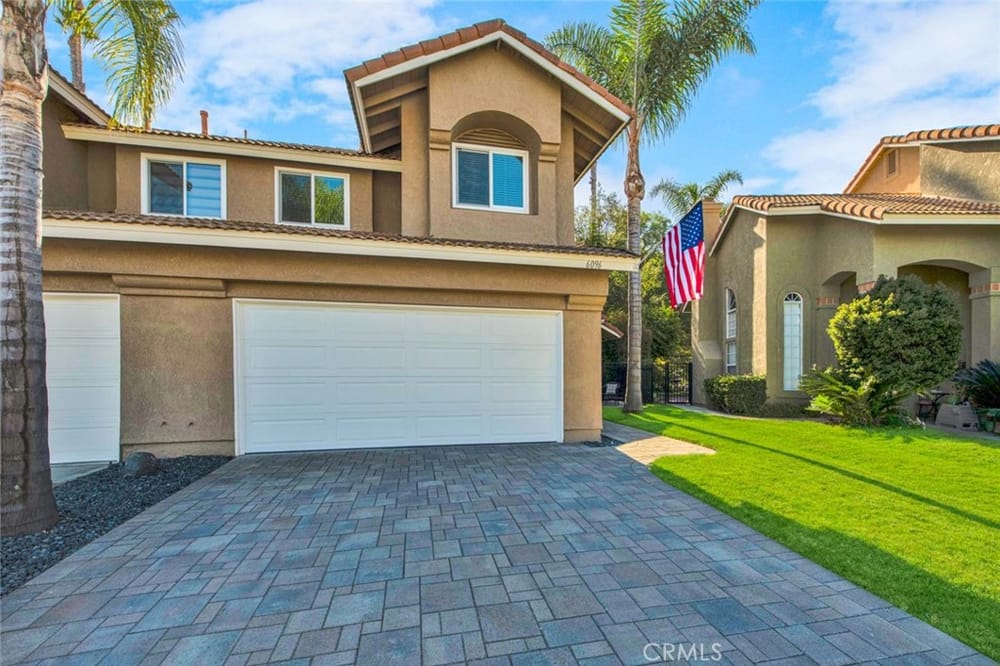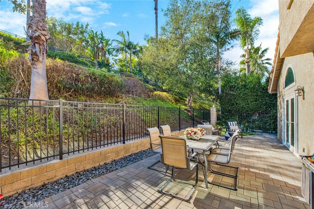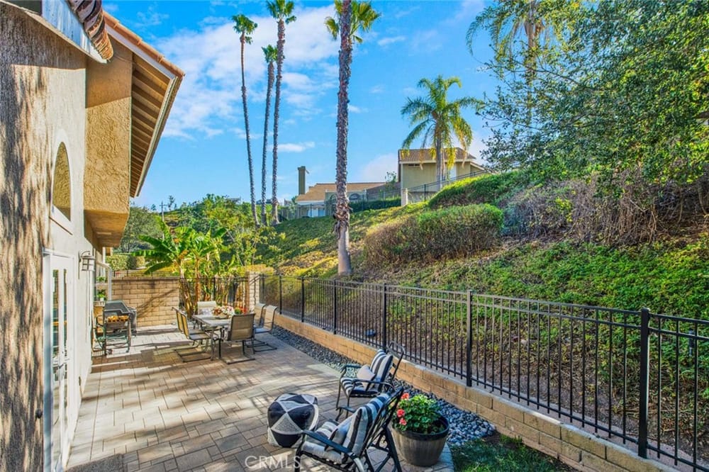 Beautiful 3-bedroom, 2.5-bath single-family home located at the top of Anaheim Hills in the highly desirable Palms community. This home showcases high-end laminate flooring throughout, with tile flooring in the kitchen and breakfast nook. Recent updates include newer windows and a thoughtfully designed paver stone driveway, walkway, and rear patio, adding both curb appeal and outdoor functionality.... The updated kitchen features a cozy breakfast nook with a bay window, recessed lighting, and stainless steel appliances. The spacious living room boasts vaulted ceilings and a fireplace, perfect for relaxing, while the adjacent dining room provides a wonderful space for entertaining. The rear patio is enclosed with block and wrought iron fencing and highlighted with paver stones, offering a private outdoor retreat. A convenient guest bathroom is located downstairs. Upstairs, the home features three bedrooms, including a private primary suite thoughtfully separated from the guest bedrooms. The primary bathroom includes a soaking tub and shower combo, along with a walk-in closet. The remodeled guest bathroom features a walk-in shower and quartz vanity. Additional highlights include a two-car garage, with a new door and opener, and a dedicated laundry area. Located near hiking trails, Anaheim Hills Golf Course, top-rated schools, and shopping, this home offers a perfect blend of convenience and tranquility. Don’t miss this incredible opportunity to call Anaheim Hills home! Schedule your showing today!
