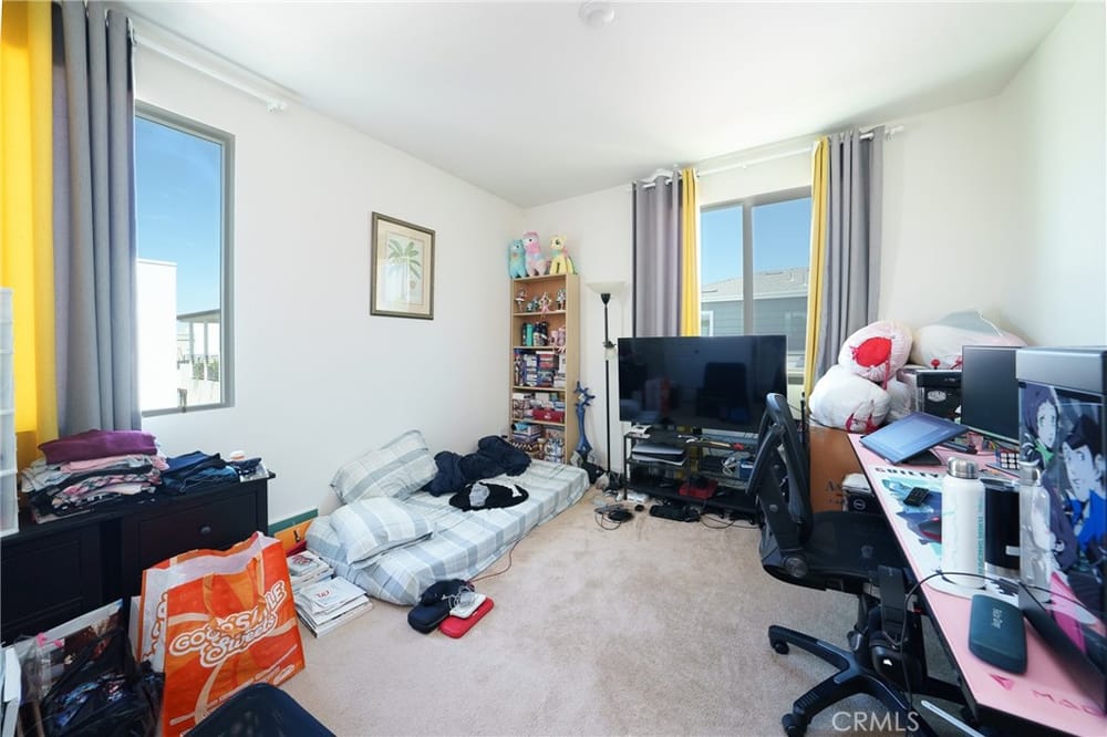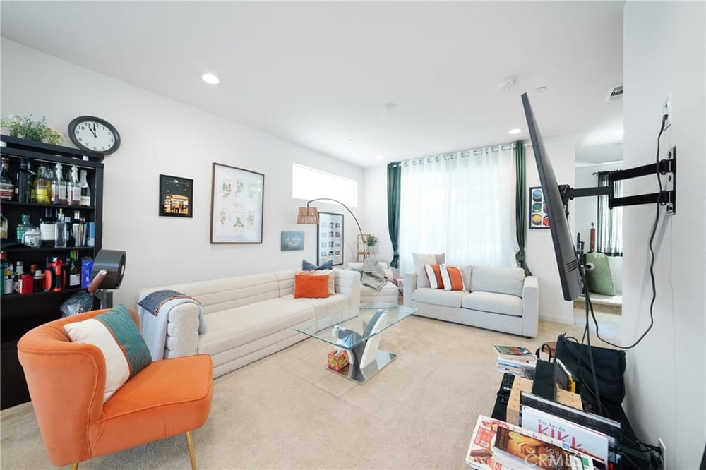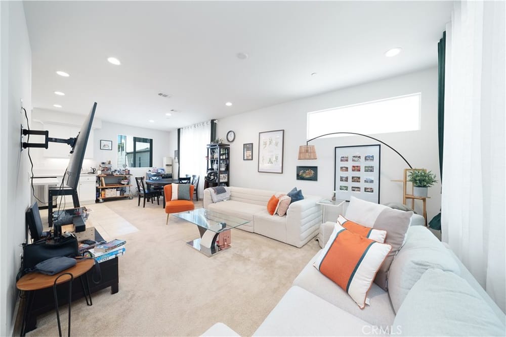 Discover this charming 3-bedroom, 3.3-bathroom detached condo nestled in Great Park. Featuring a main-floor bedroom with an en-suite bathroom, it offers flexibility for guests, in-laws, or as a convenient office space. The living room, family room, kitchen, and extended balcony are situated on the second floor, ideal for entertaining. The top floor boasts a primary bedroom with an en-suite bathroo...m featuring dual sinks and a walk-in closet, along with a guest bedroom with its own en-suite bathroom and an individual laundry room.This home features high ceilings and an open floor plan that floods with ample sunlight. The eat-in kitchen is equipped with spacious water-resistant quartz countertops, a kitchen island for additional workspace, and stainless steel appliances throughout. It comes fully furnished, including a washer, dryer, and refrigerator.Conveniently located near parks and acclaimed Irvine Unified new schools, this property offers both comfort and style.