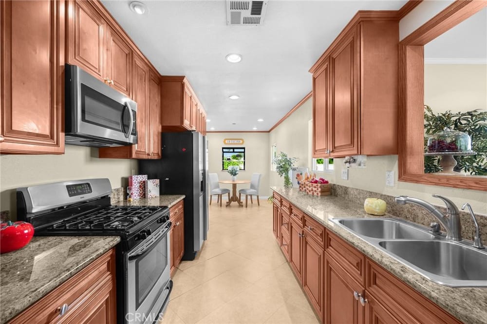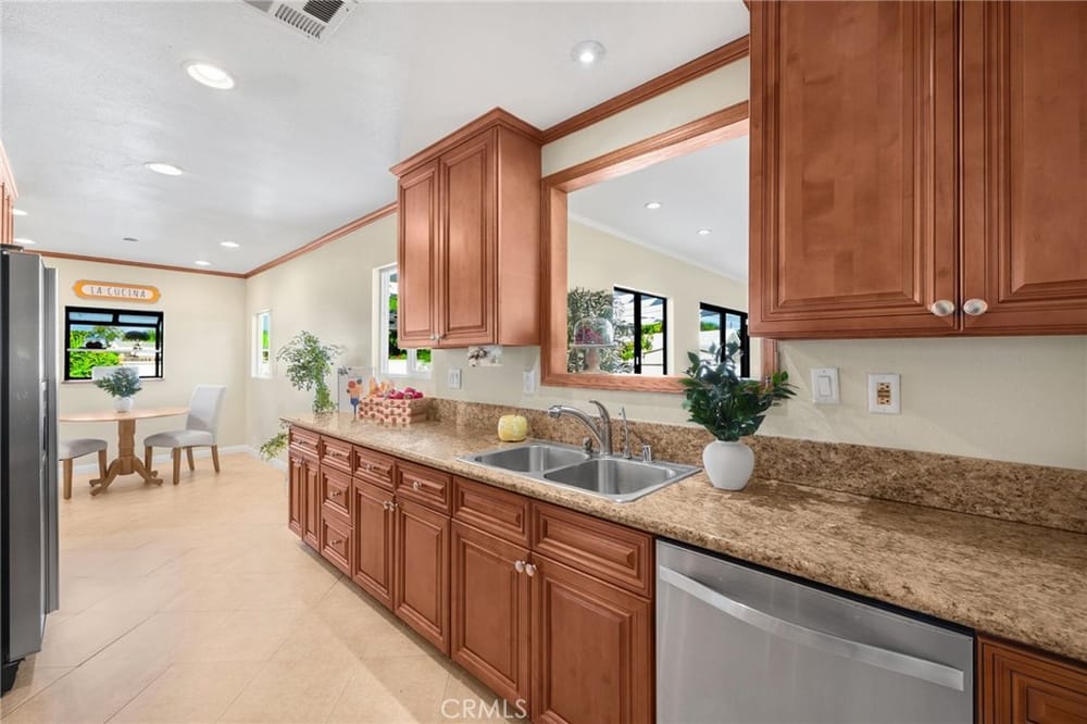 Ngôi nhà ĐẸP, MỘT TẦNG trong một khu phố yên tĩnh ở Fullerton! Ngôi nhà này có mặt bằng sáng sủa và thoáng đãng với 3 phòng ngủ và 2,5 phòng tắm với diện tích sinh hoạt rộng rãi là 1.963 feet vuông. Bạn được chào đón ngay từ lối vào phòng khách rộng rãi có lò sưởi đẹp với tủ sách âm tường tùy chỉnh, đèn âm tường và nhiều ánh sáng tự nhiên. Nhà bếp được thiết kế đẹp mắt có nhiều tủ để đồ, mặt bàn bằng đá granit, đồ dùng bằng thép không gỉ, bếp gas có lò vi sóng trên cao, khu vực ăn sáng và mở ra phòng sinh hoạt chung, rất lý tưởng để giải trí. Phòng sinh hoạt chung LỚN với lò sưởi bằng gạch ấm cúng, nhiều ánh sáng tự nhiên và tầm nhìn tuyệt đẹp ra sân sau. Phòng ngủ chính bao gồm khu vực phòng ngủ LỚN, tủ quần áo đi bộ và phòng tắm đẹp với bồn rửa mặt lớn có tủ để đồ và vòi sen kính. Các phòng ngủ bổ sung và phòng tắm đầy đủ tiện nghi tuyệt đẹp ở cuối hành lang. Sân sau riêng có khu vực hiên lớn với HAI đảo nướng, bãi cỏ, cảnh quan xanh tươi và nhà kho. Các tính năng bổ sung của ngôi nhà bao gồm gara để 2 xe, sàn gỗ đẹp khắp nhà, máy nước nóng không cần bình chứa và KHÔNG CÓ HOA. Ngôi nhà này nằm ở vị trí trung tâm và gần các nhà hàng, khu mua sắm, giải trí và chỉ cách Cal State Fullerton, Fullerton College và trung tâm thành phố Fullerton một quãng đường ngắn. Hãy đến xem ngôi nhà xinh đẹp này và biến nó thành của bạn ngay hôm nay!